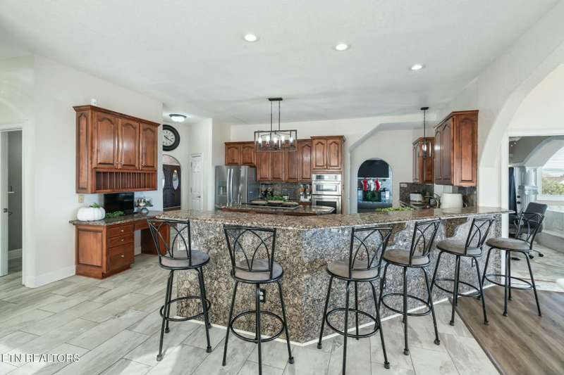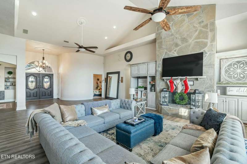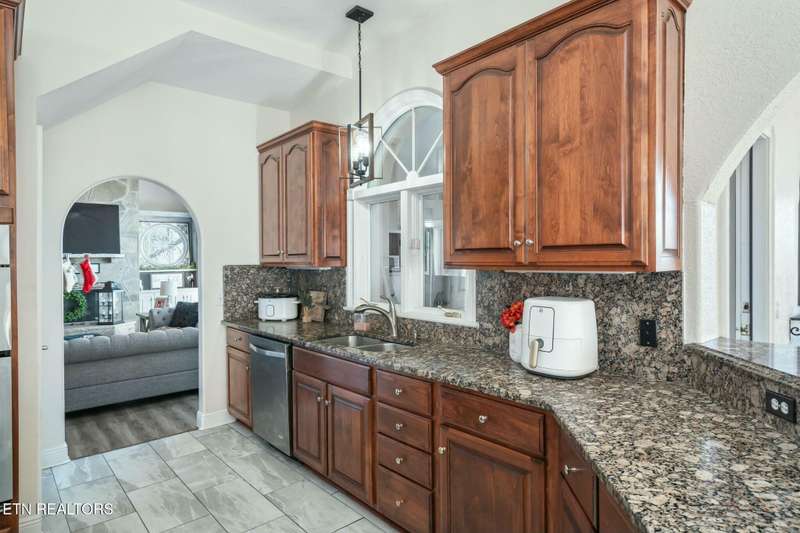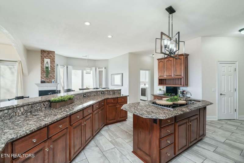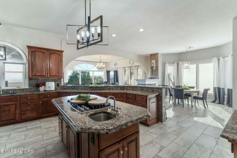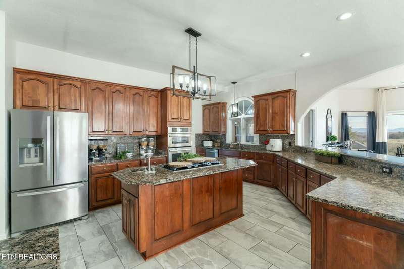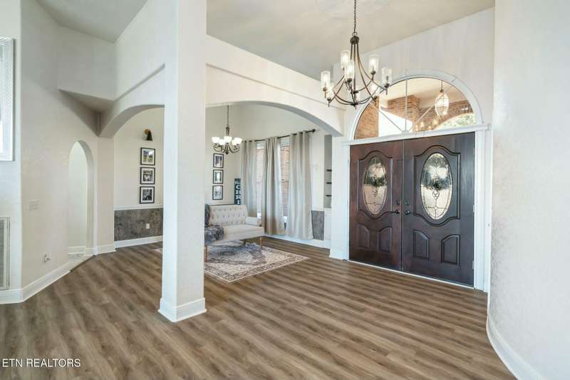 Welcome to this spacious and light-filled 2-story basement home overlooking the smoky mountains. A true gem nestled in the sought-after Maryville neighborhood of Royal Oaks. This all-brick home boasts 5 bedrooms, 5.5 bathrooms, zero entry and primary suite on the main level, 2 fireplaces, and completely separate living quarters downstairs. The basement suite is complete with it's own private entrance, 2 full baths, kitchen, and 3 spacious rooms that can be used as a living area, bedroom, and rec room/gym. Offering both comfort and modern elegance at every turn, the chef's kitchen on the main level features a gas cooktop, Jen Air microwave/oven and cherry cabinets. Enjoy a cozy fire by the stone fireplace! The primary suite on the main level has a spacious en suite with walk-in shower, jetted tub and walk-in closet. Many recent updates including new LVP installed on the main floor and basement! Maryville City schools and convenient to McGhee Tyson Airport and downtown Maryville. Enjoy the sunsets on your deck and covered patio!