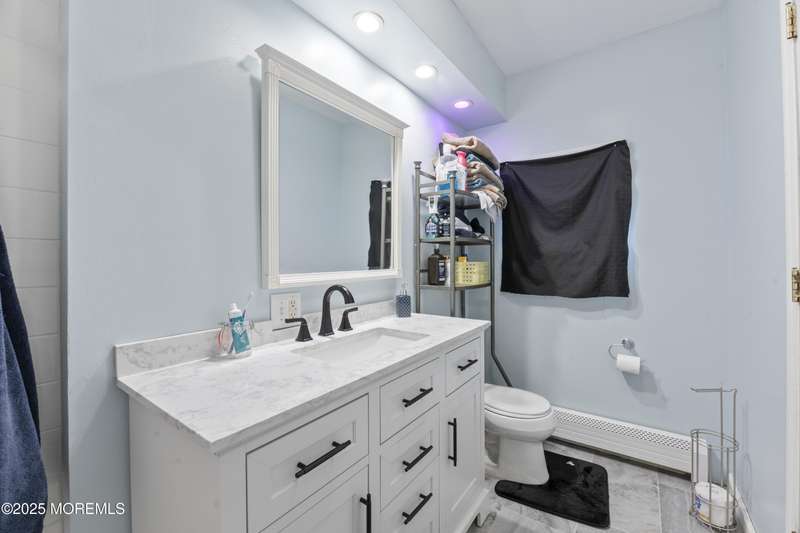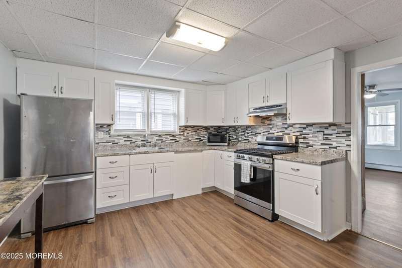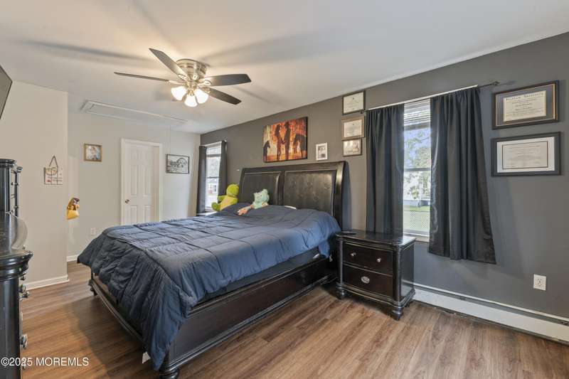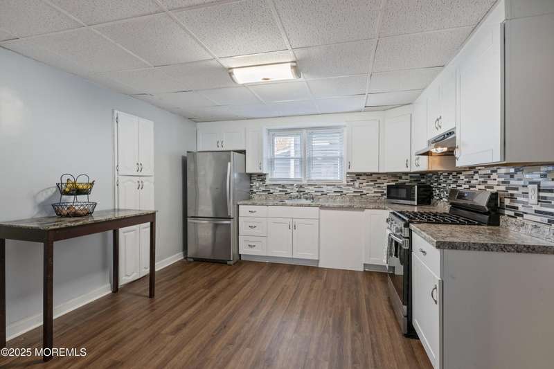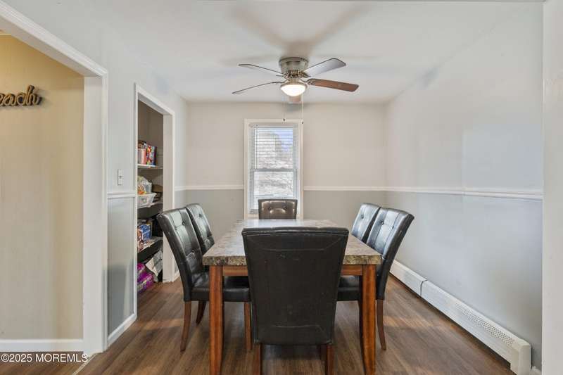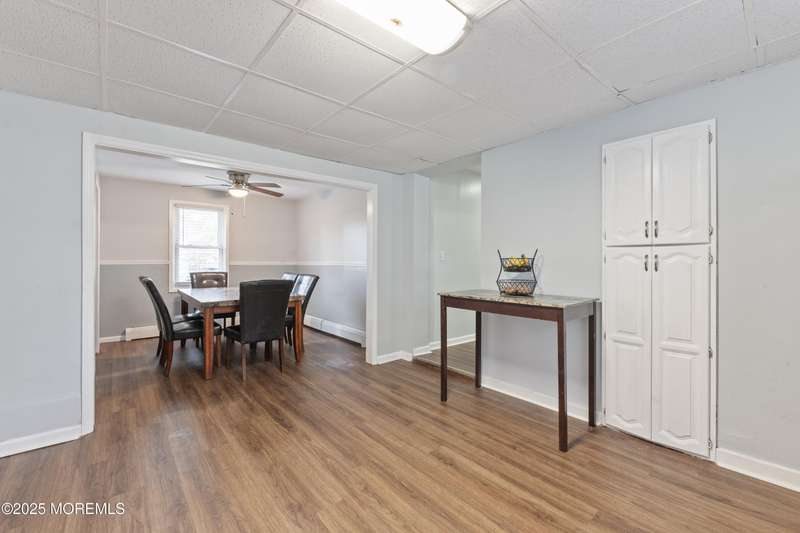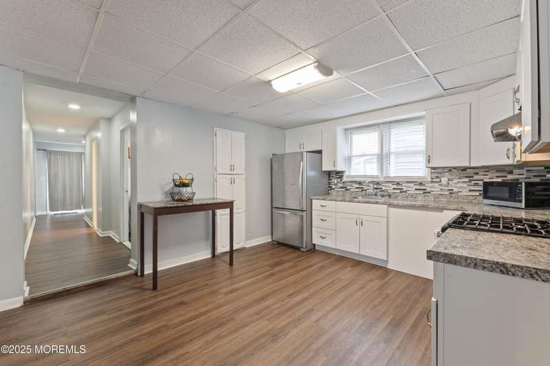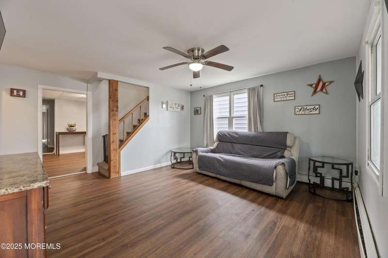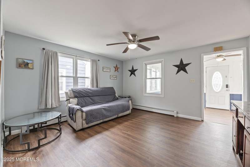 This is a Coming Soon listing and cannot be shown until 11/6. Welcome to this well maintained Cape in the West Keansburg section of Hazlet offering approximately 1,920 square feet of living space. The home features a spacious first floor primary bedroom with an updated full bath finished with marble tile and countertop. The living and dining rooms include updated vinyl/laminate flooring. The kitchen presents stainless steel appliances, a tile backsplash, and abundant cabinet storage. The enclosed and heated front porch provides a useful mud room entry. A convenient laundry room, excellent closet storage throughout, and a total of two full baths and one half bath support everyday functionality. The second floor includes a very generous bedroom measuring approximately 25 feet in length. Recent upgrades include a newer roof and a hot water heater approximately three years old. The exterior offers a level yard with fenced area and ample driveway parking. Heating is hot water baseboard with multi-unit window cooling. Located near Route 36, schools, shopping, area beaches, and multiple commuter options including NJ Transit bus service and the NYC ferry, this home delivers both convenience and comfort.