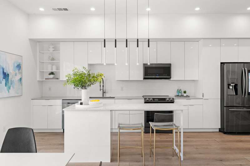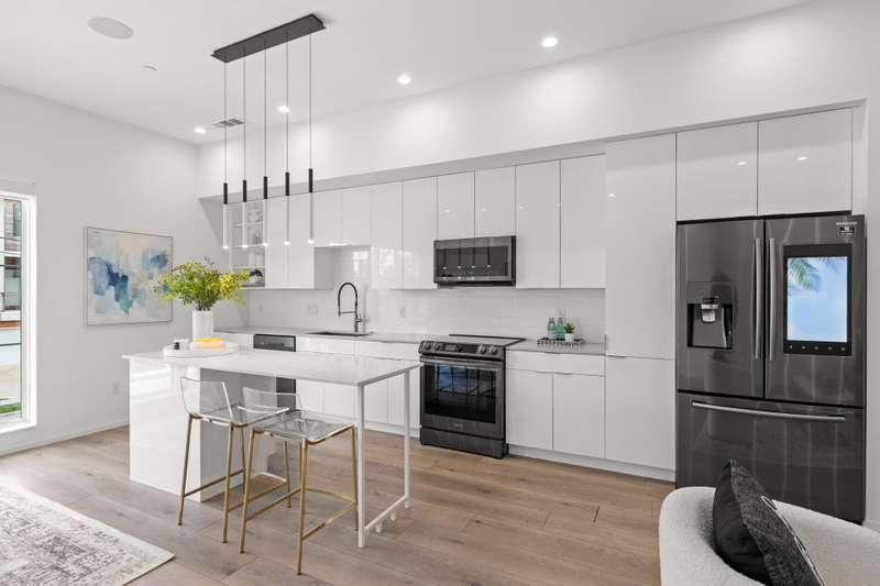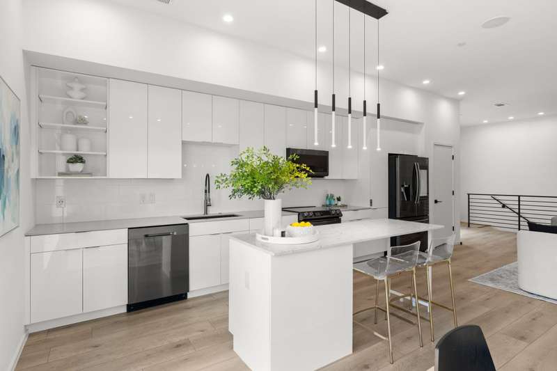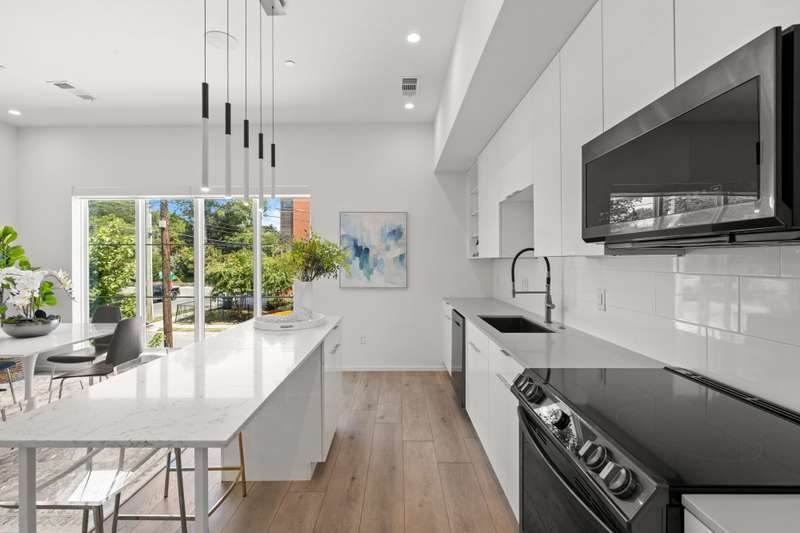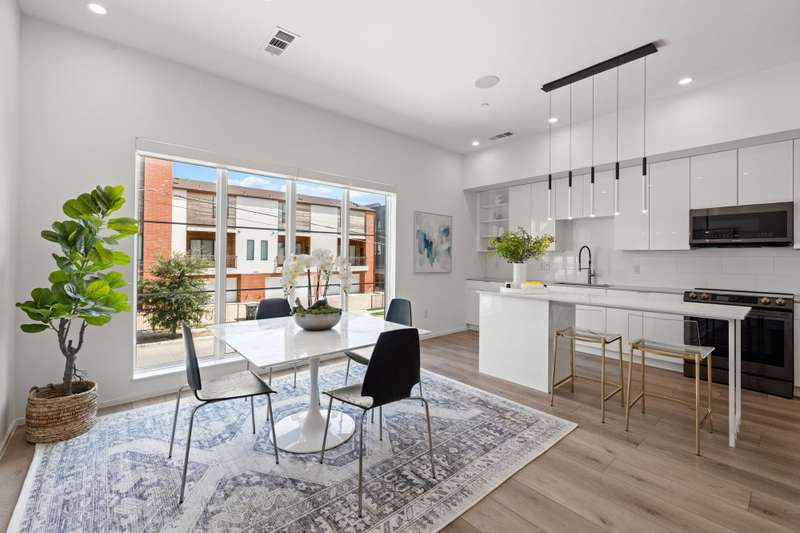 Just steps from Knox Hendersons vibrant shopping and dining scene, this modern townhome blends style, comfort, and convenience in one of East Dallass most desirable neighborhoods. Built in 2020, it welcomes you with contemporary design and a thoughtful layout. The open-concept living, dining, and kitchen space is situated on the second floor and is ideal for entertaining. The sleek kitchen features stainless steel appliancesincluding a built-in microwavequartz countertops, and a spacious island perfect for meal prep or casual dining. Large windows and a skylight fill the home with natural light, while wood-look floors extend throughout, adding warmth and easy maintenance. Upstairs, both bedrooms include ensuite baths for privacy and comfort. Additional features include recessed lighting throughout and smart features such as the built in speakers, Ecobee smart thermostats with Alexa voice control and smart home myQ garage for efficiency and modern ease. A private balcony with a sitting area off the living room is perfect for morning coffee or evening relaxation. The attached two-car garage offers epoxy flooring and mounted shelving for organized storage, and this unit is the only one in the community with a private driveway. With a low HOA and an unbeatable location near new retail, dining, and the Katy Trail, this is urban living at its finest.