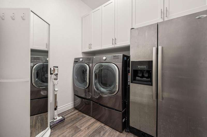 Step outside to your personal oasis. The covered patio with built-in gas grill overlooks a striking linear pool with soothing water features. A private cabana with built-in refrigerator offers the ultimate space for hosting guests or relaxing poolside. You will find spacious side yards providing excellent outdoor space for pets or lawn games.
