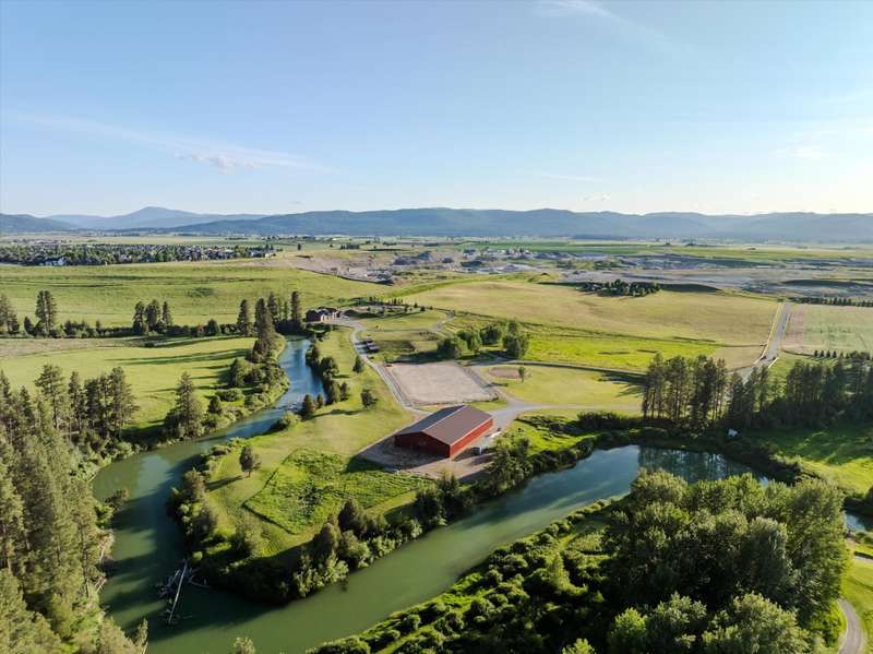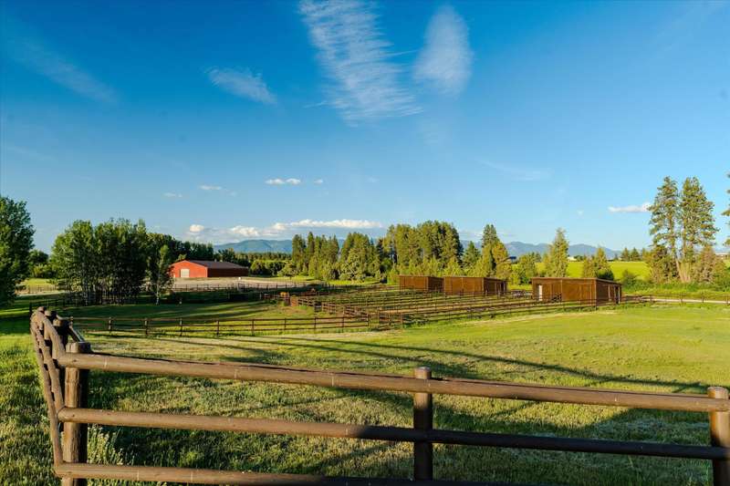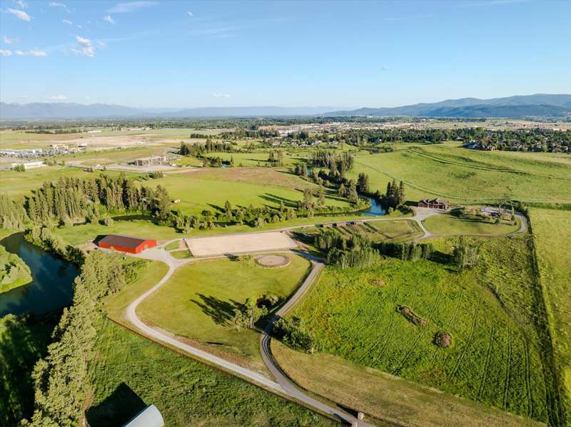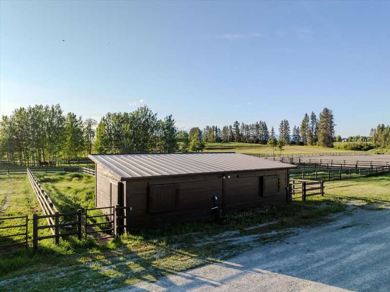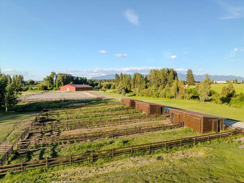 Don't miss your chance to own this one-of-a-kind horse property. Nestled on 28+ acres, this superb location overlooks Northern Pines Golf Course, with Glacier Park views in the backdrop, and the Stillwater River meandering along the east edge of the property. Located at the end of a private paved road, with a gated entrance and perimeter fencing, you will feel like you're away from it all, yet you're only minutes from town. The ideal equestrian set up includes 6 enclosed paddocks with heat and self-waterers, individually fenced pens, a huge outdoor arena, a round pen, and an indoor arena. Take an evening paddle on the gently flowing Stillwater River and enjoy a variety of wildlife. There is a 3-bed, 3-bath living quarters above the fully finished 5-bay shop. This 85x50 dream shop is complete with radiant floor heat, a bathroom, 220 V outlets, and floor drains. Call the living quarters home, or live there while you build.