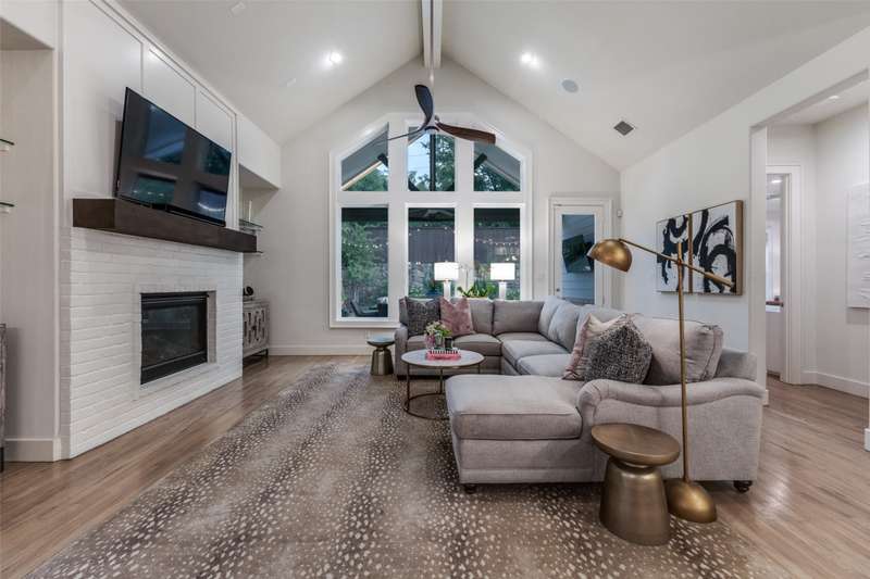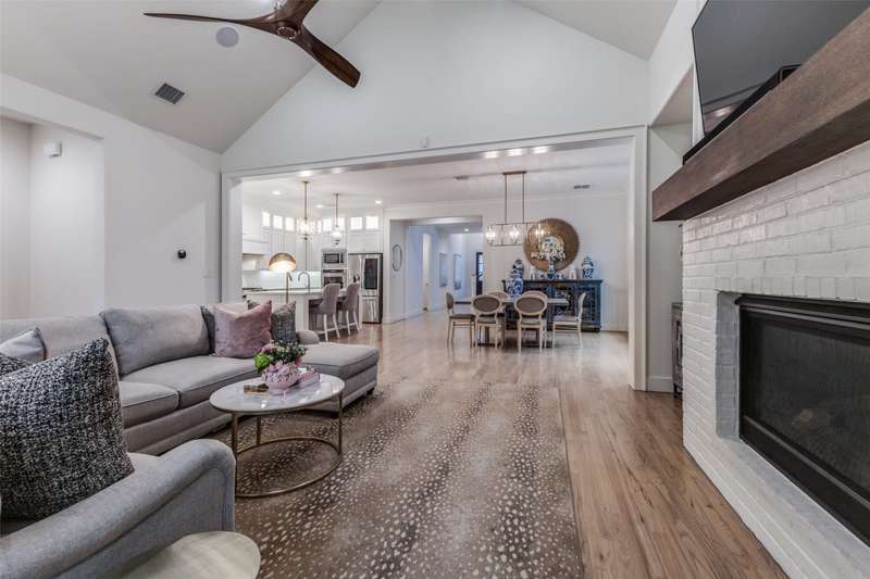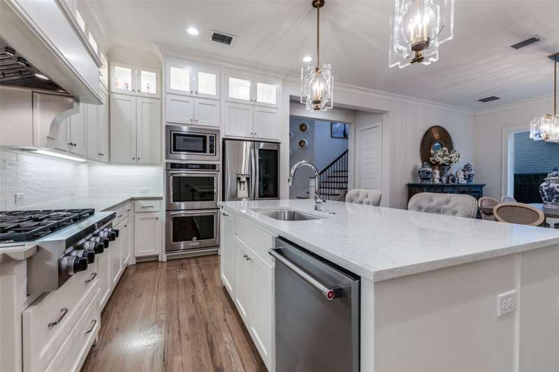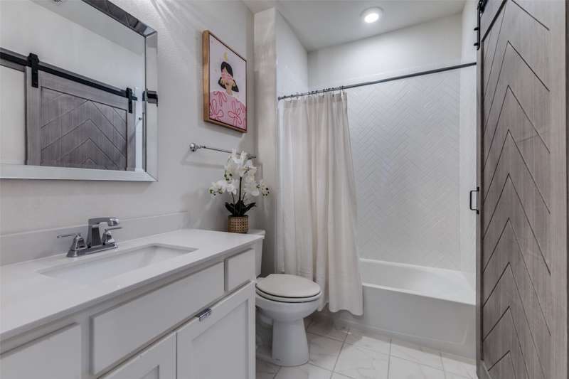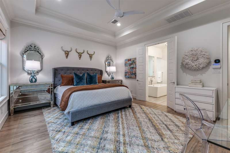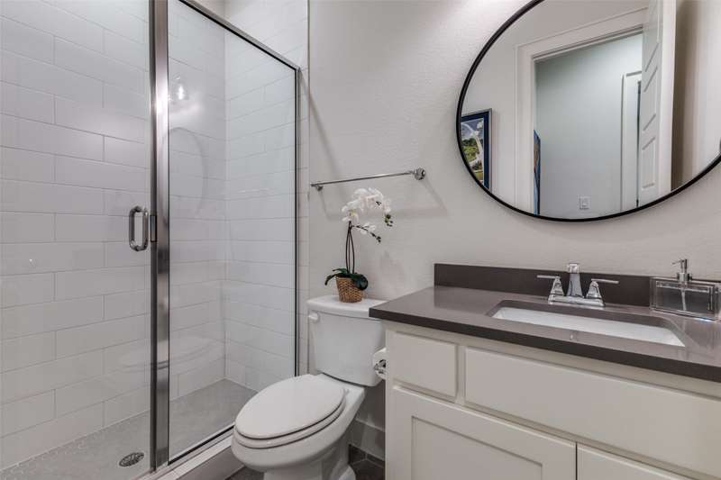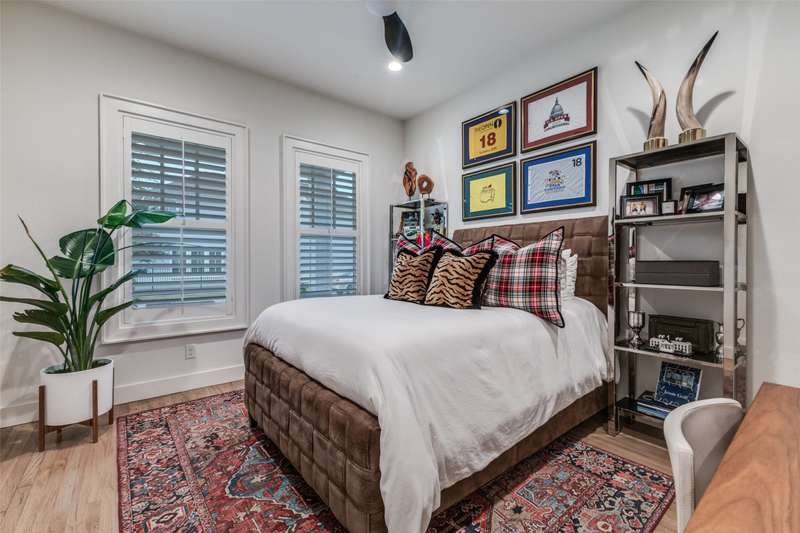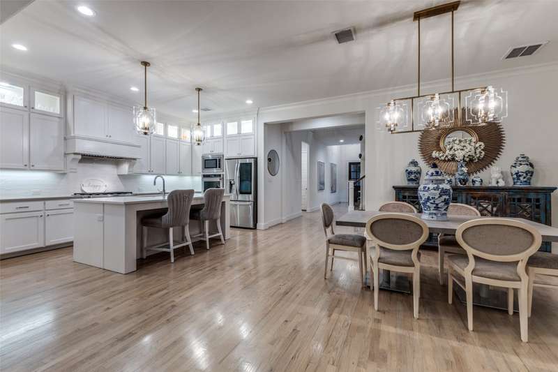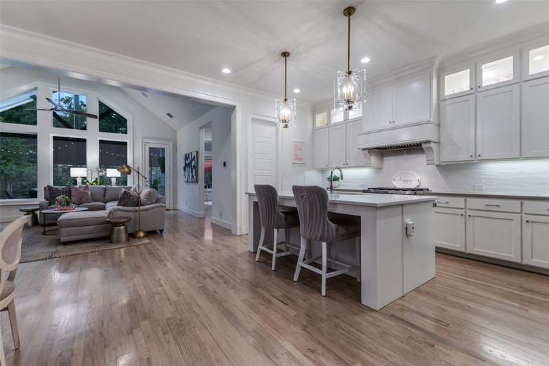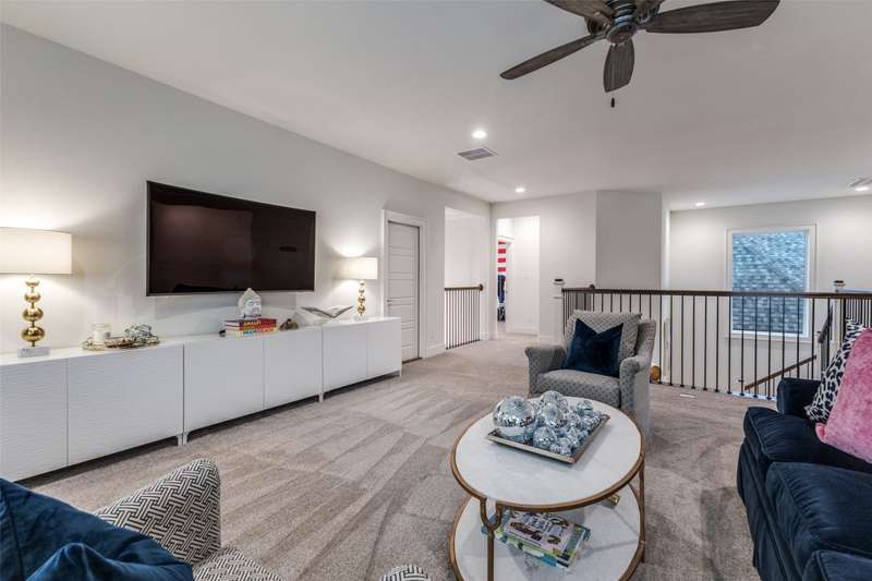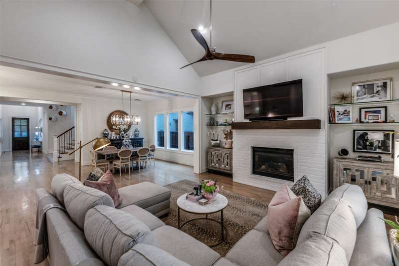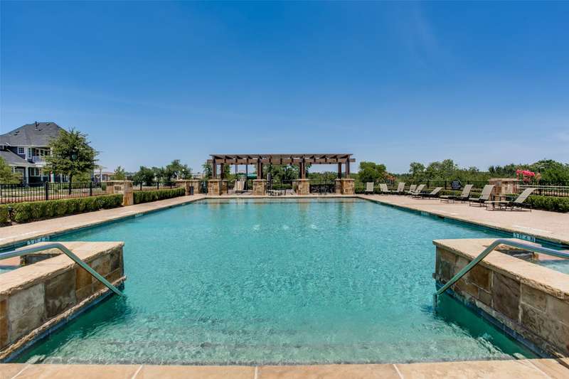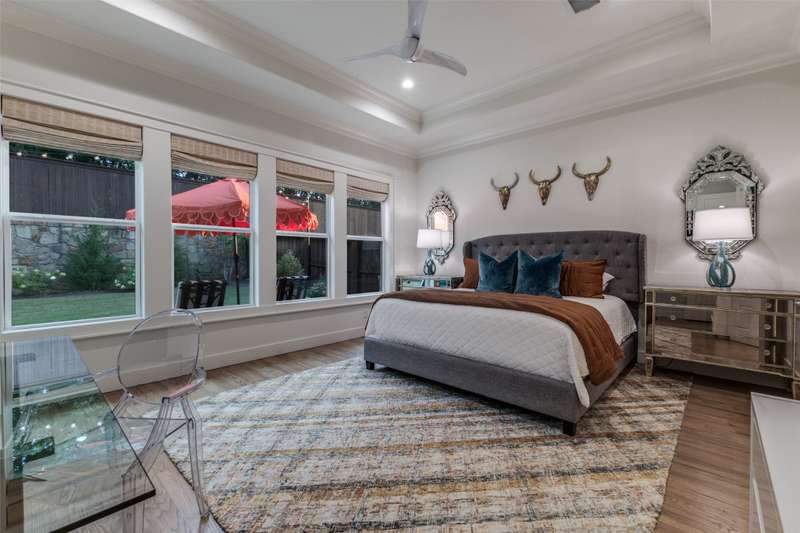 Backing to a canopy of mature trees, this stunning move-in ready, meticulously maintained Southgate custom home in the coveted Austin Waters community seamlessly combines nature, privacy, and sophistication. Walls of windows showcase the lush backyard, bringing the outdoors in with natural light and views. Welcoming two-story foyer leads to light-filled interiors with oak hardwood floors, designer lighting, and flexible, open floor plan. At the heart of the home, the gourmet kitchen features a seated island, quartz countertops, ceiling-height cabinetry, stainless steel appliancesincluding 6-burner gas cooktop with custom vent hood and convection double ovensand opens to the dining and family room with cathedral ceiling and cozy gas fireplace. Luxe primary suite offers a private retreat with sitting area, spa-inspired bath with vaulted ceiling, dual vanities, quartz countertops, freestanding soaker tub, oversized, seamless glass, walk-through shower, and custom closet complete with chandeliers. First-floor bedroom suite is ideal for guests, private study, or multigenerational living. Upstairs are two additional bedrooms each with full baths (one ensuite), a spacious game room, media room pre-wired for surround sound, and walk-in attic storage. The very private outdoor living is equally impressive, with a pool-sized backyard featuring an expanded Oklahoma flagstone patio, board-on-board fence, lush landscaping, and plenty of grassy area for play and pets. Additional highlights include first floor powder room, 3-car garage, extensive storage throughout, and access to community pool and playground. Minutes from DNT, 121, Grandscape, Legacy West, Toyota HQ, Stonebriar Country Club, The Clubs of Prestonwood Hills, Prestonwood Christian Academy, Arbor Hills Nature Preserve, and world-class shopping, dining, and entertainment. Home is North facing.