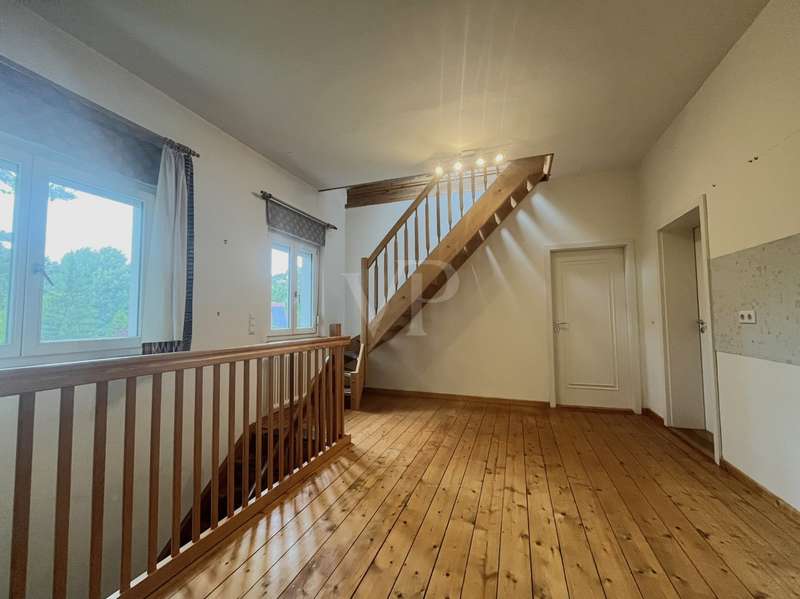 Nowadays, building is increasingly demanding - whether in terms of time, costs or nerves. This makes a home that is already ready all the more valuable: This spacious detached house is located in a quiet residential street and offers plenty of space on four levels for the life you want. As soon as you enter, you are greeted by a bright vestibule that flows seamlessly into the spacious entrance hall. From here, you can access the entire first floor: an open-plan living and dining area creates space for spending time together, while a neat fireplace provides cozy warmth on cooler days. The adjoining kitchen is functional and offers plenty of work space - perfect for families or culinary enthusiasts. A highlight is the sunny conservatory, which is ideal as a breakfast spot or quiet retreat. The large, covered terrace with vertical awning provides access to the garden, which is currently still in its natural state but can be transformed into a real oasis of well-being with a little design flair. A pavilion already invites you to linger, while a private well ensures sustainable garden irrigation. The upper floor has four bedrooms, two bathrooms - one of which is an en suite bathroom with a corner whirlpool bath, shower, WC and bidet - and a dressing room. This floor therefore offers plenty of space for family members or guests as well as a pleasant retreat. There is also the option of installing a further kitchen on this level to create a separate granny apartment - the necessary connections have already been prepared. A converted attic studio extends the available space and is ideal as a study, studio or play area. The house, which has a full basement, also boasts spacious storage and utility rooms as well as a heating/utility room - functional and well thought-out. Technically, the house is of a good standard: all utilities such as electricity, gas, drinking water, sewage and telecommunications are connected, and the windows on the first floor are lockable and fitted with blinds. An intercom system provides additional security. The garden is currently still showing its wild side - but this is precisely its special charm: with a little design love, a green refuge can be created here that brings a sense of nature and tranquillity into everyday life. This house offers plenty of potential for families or people who need space - whether for working, living or being creative. With a little love for design, this property can become a real place of the heart. Be inspired by this property during a viewing - and discover the opportunity to realize your dream home in an idyllic location.