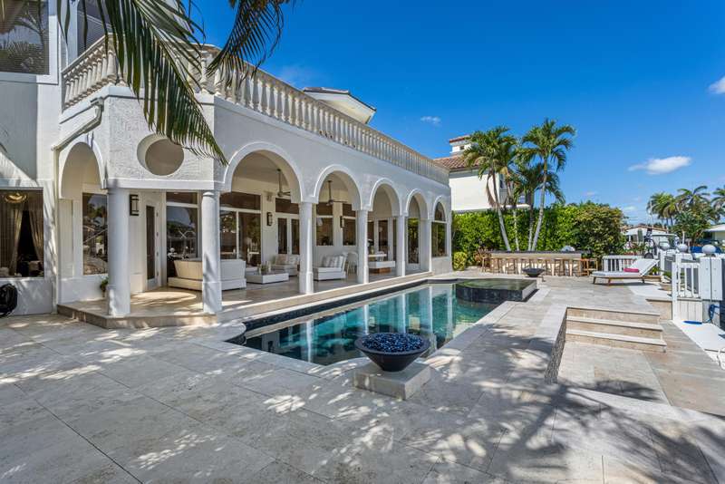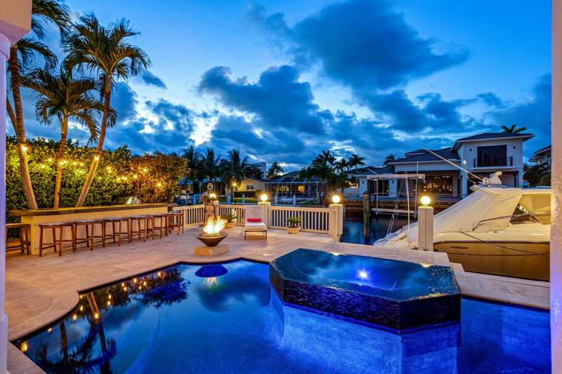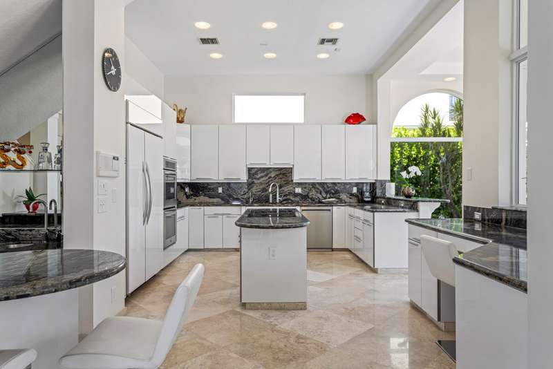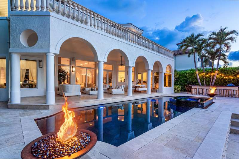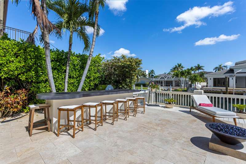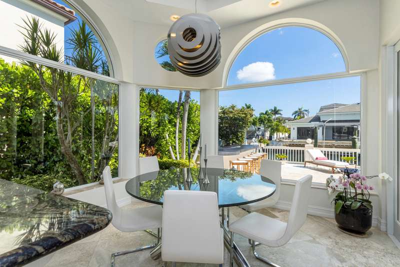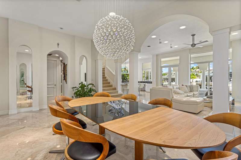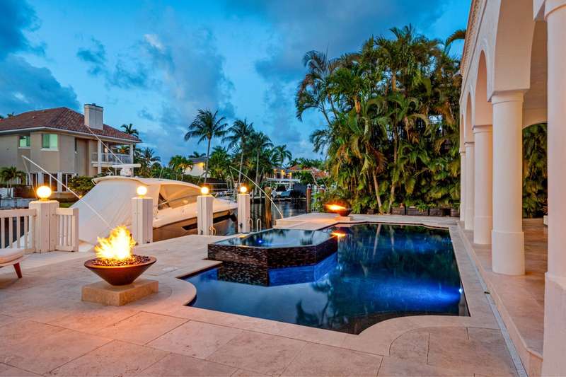 Luxe Boca Raton deepwater estate in the desirable Lake Rogers community fronts 80 feet on a deep-water canal with a dock offering easy ocean access, desirable for boaters. Interiors are peerlessly defined by grand architectural adornments, and the magnificent outdoor entertaining area centers on a sun-splashed pool with a spill-over spa bounded by an expansive patio with a wet bar and barbeque area.