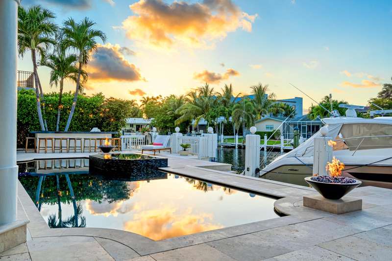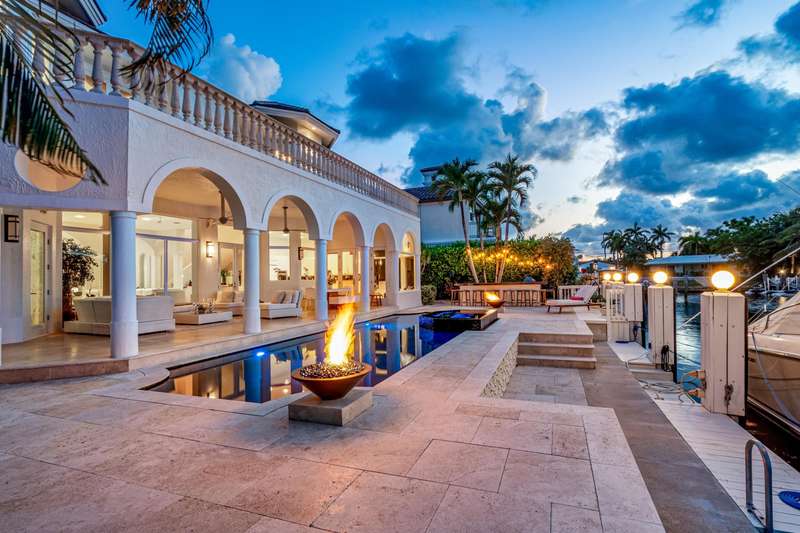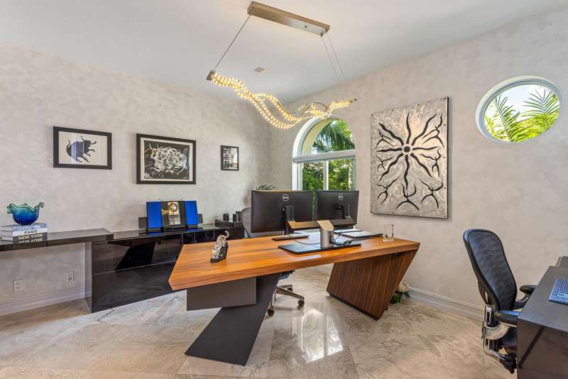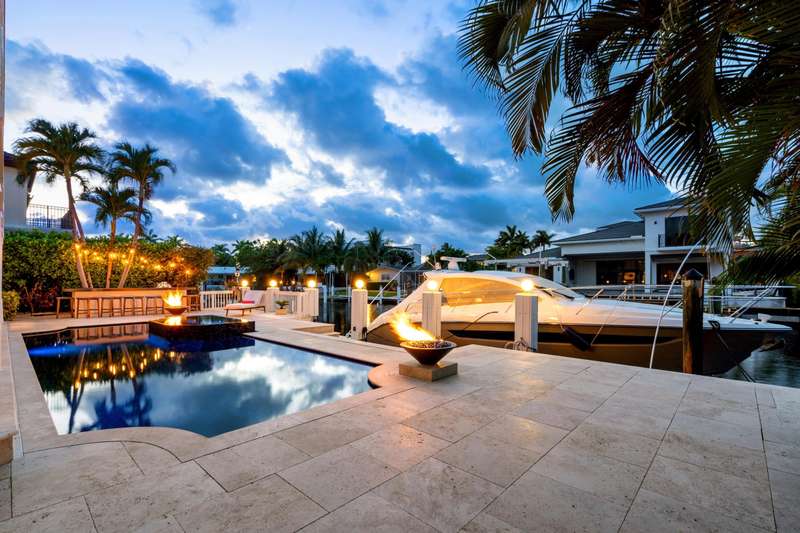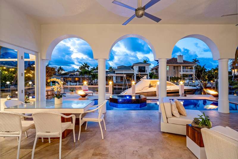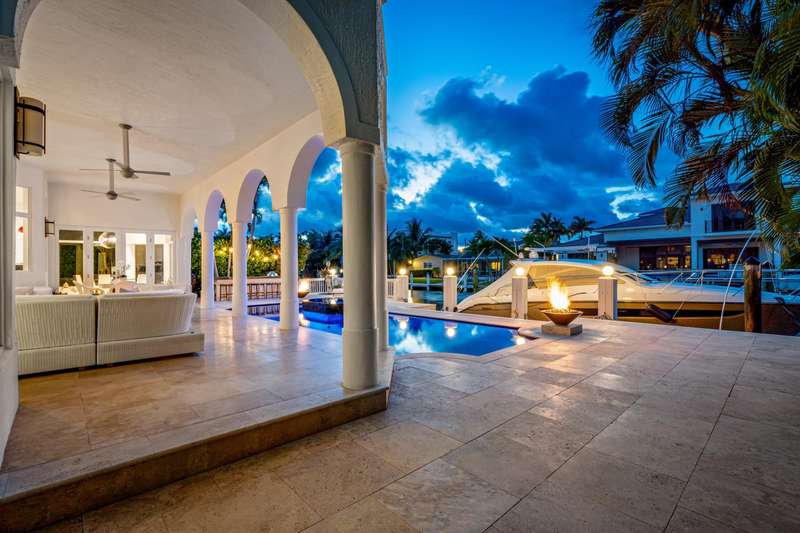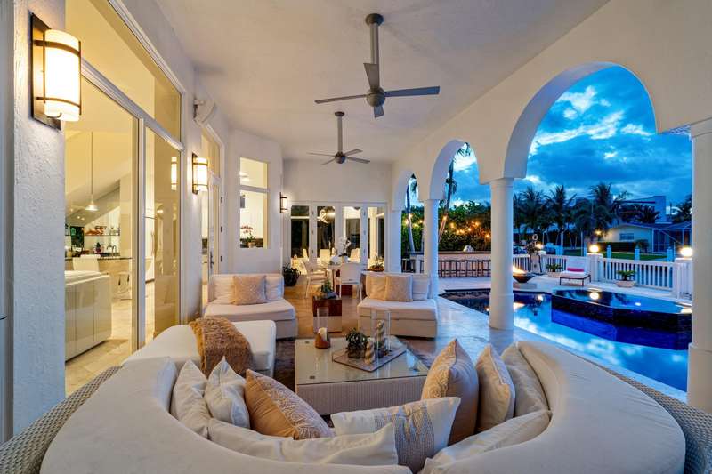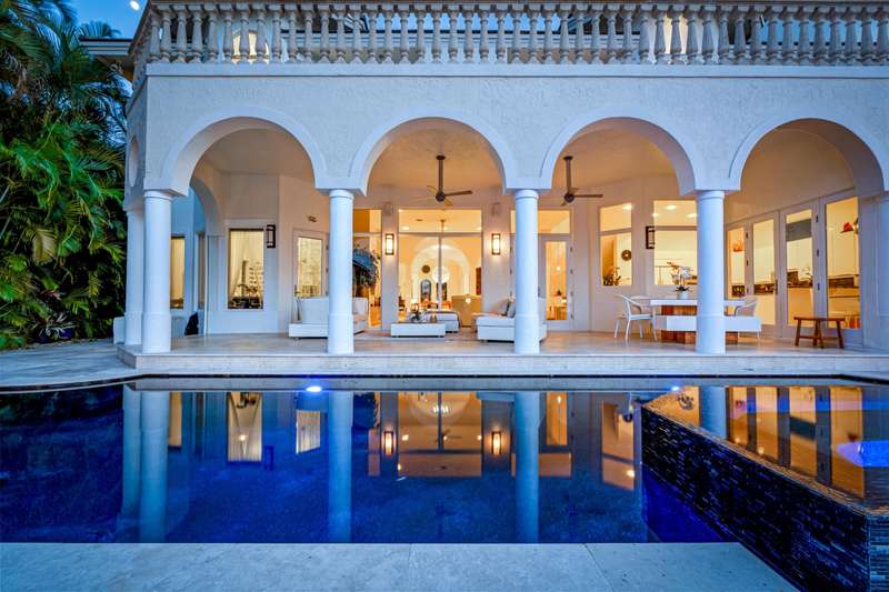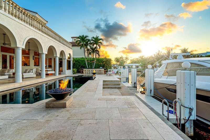 Luxe Boca Raton deepwater estate in the desirable Lake Rogers community fronts 80 feet on a deep-water canal with a dock offering easy ocean access, desirable for boaters. Interiors are peerlessly defined by grand architectural adornments, and the magnificent outdoor entertaining area centers on a sun-splashed pool with a spill-over spa bounded by an expansive patio with a wet bar and barbeque area.
