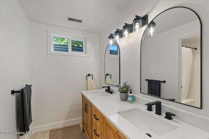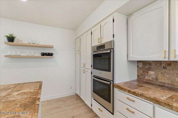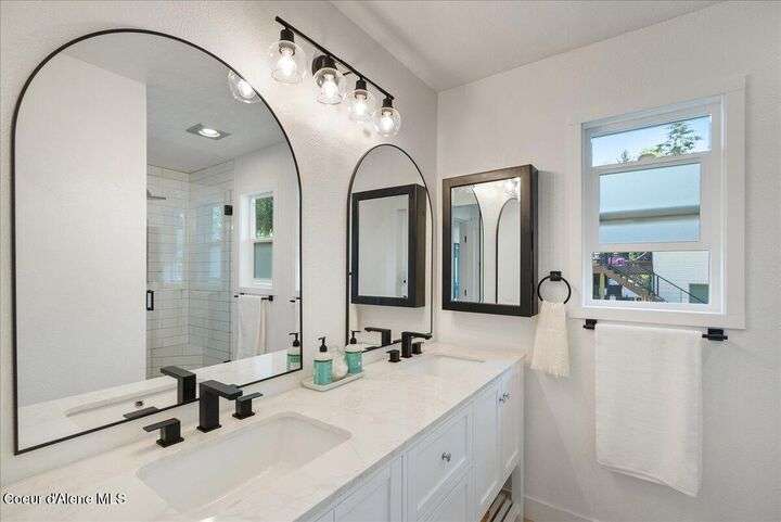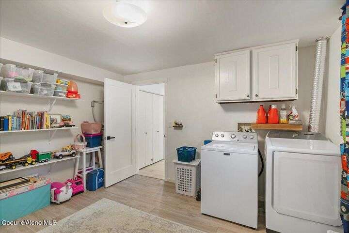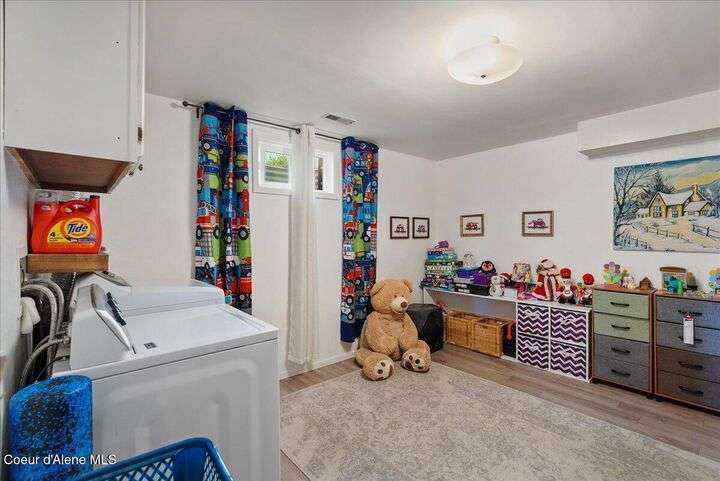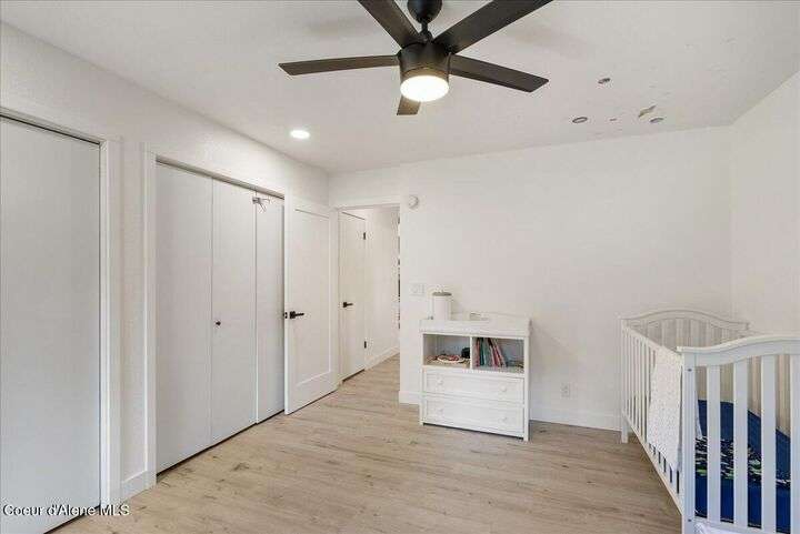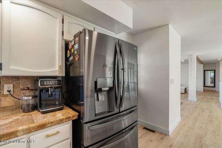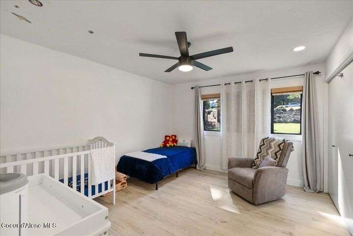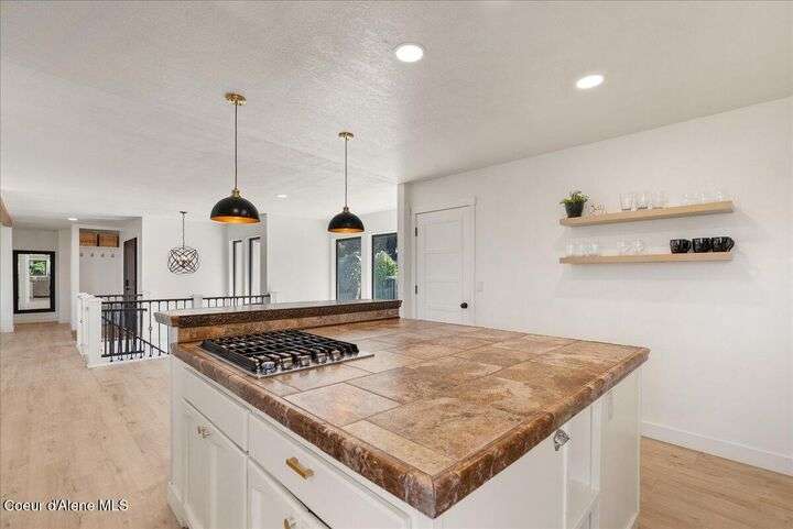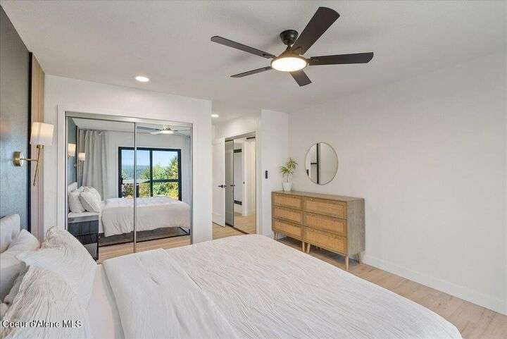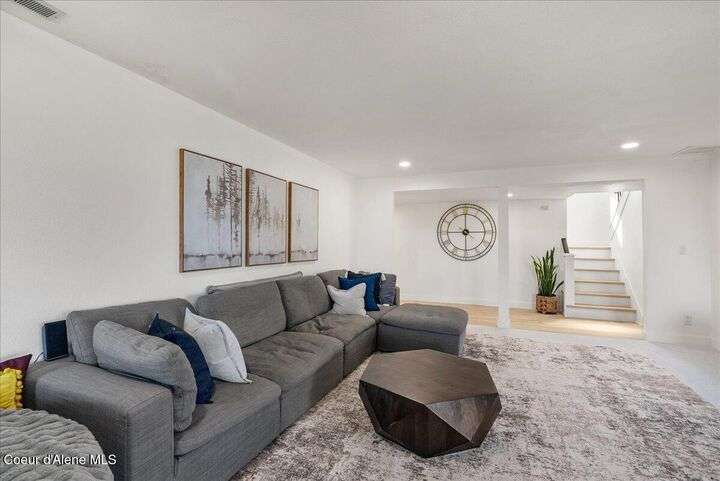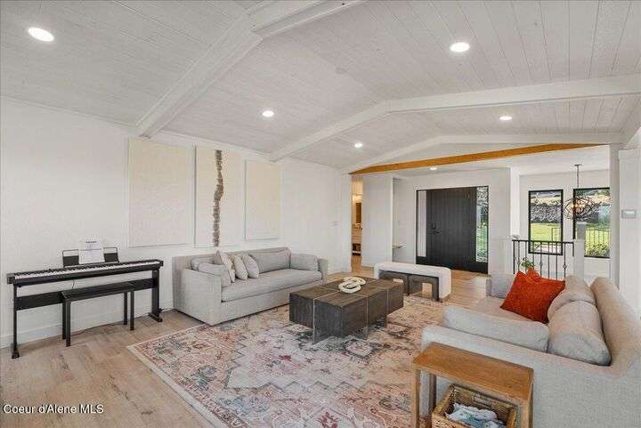 Mid-century modern home offers filtered views of Hayden Lake & surrounding mountains. Just minutes from downtown CDA, Hayden Marina, Honeysuckle Beach, golf courses, shopping & schools. The open-concept design recently updated boasts new LVP, carpet, and vinyl windows to maximize natural light & views. The kitchen opens to an 800 sq ft wraparound deck—perfect for entertaining, 4th of July fireworks, or backyard fun around the firepit & sledding hill. Features include a main floor master, 2 water heaters, a spacious laundry/utility room, 2 wood-burning fireplaces & bedrooms w/dual closets. Outdoors enjoy RV parking, a level backyard with potential for a shop, fruit trees, garden, play structure, hot tub pad & French drains. A rare find combining modern updates, comfort & functionality in a sought-after location.