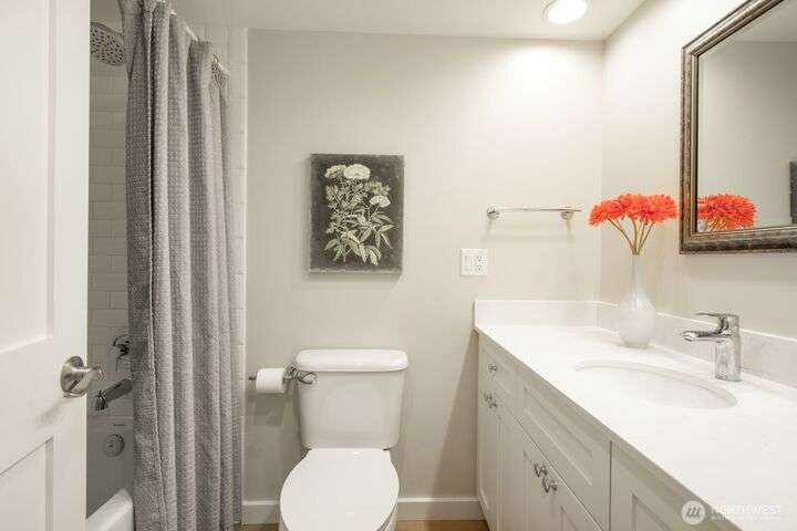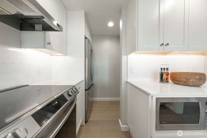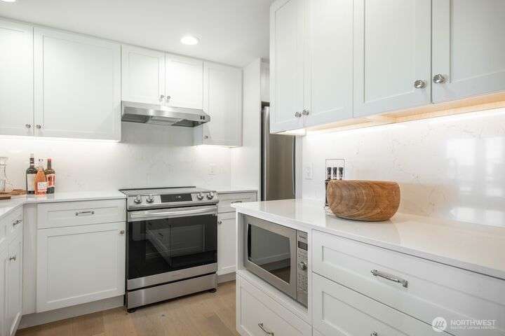 Top-floor waterfront living with unmatched views! Soak in sweeping vistas of Lake Washington and the Cascade Mountains from this fully renovated top-floor unit in the coveted Lake House Condos. The beautifully updated kitchen features new quartz slab countertops and backsplash, new cabinets, and a spacious pantry for added storage. Enjoy hardwood floors throughout, dining room w/access to a covered deck. The primary suite offers a walk-in closet & elegant en-suite bath, while a versatile den can easily serve as a 2nd bdrm or office. In-unit laundry, secure garage parking, and a lakefront pool & day-use dock. Ideally located next to a beach park and just steps from Madison Park’s shops & restaurants - easy access to SR-520! Don't miss this!