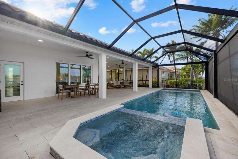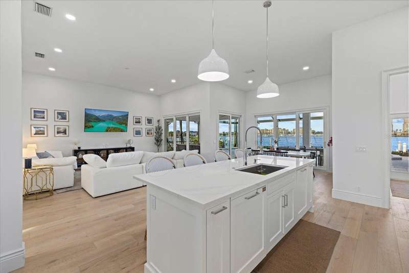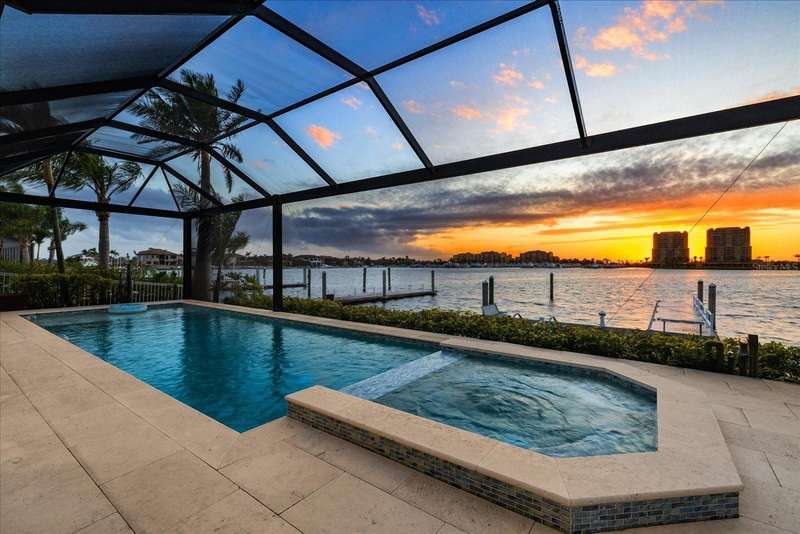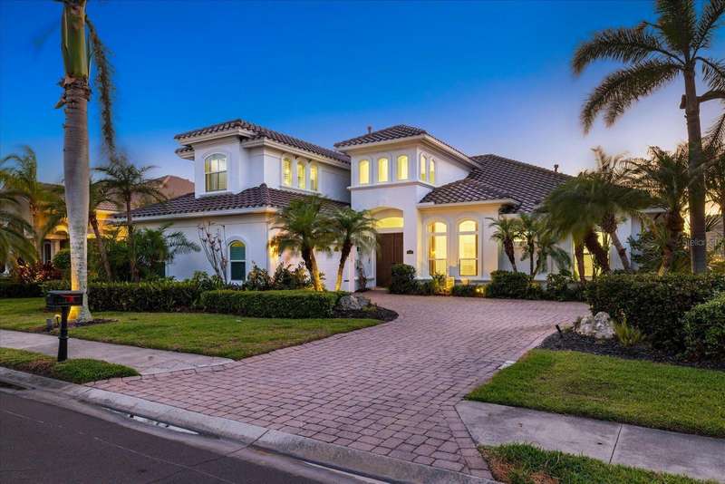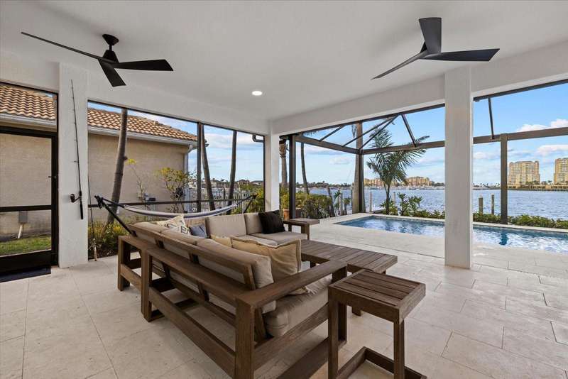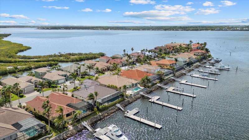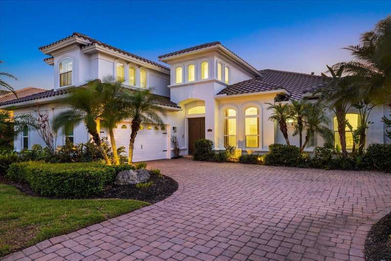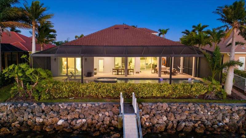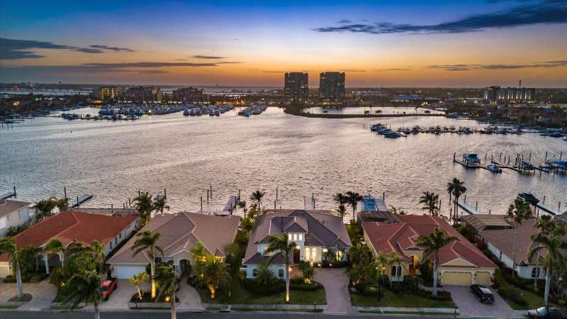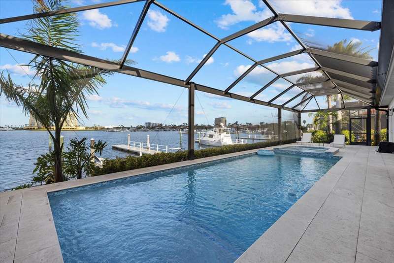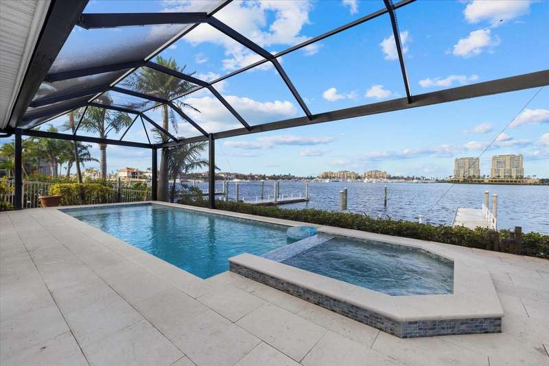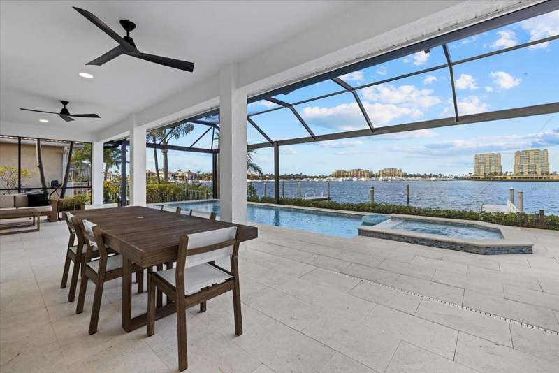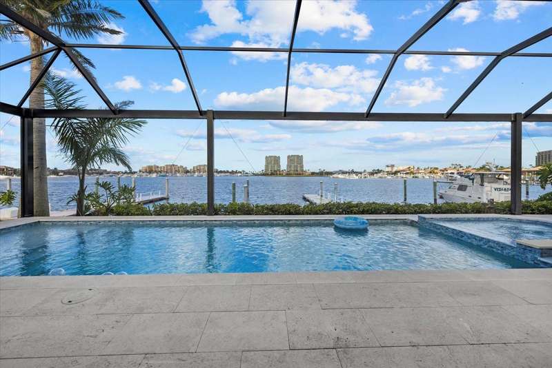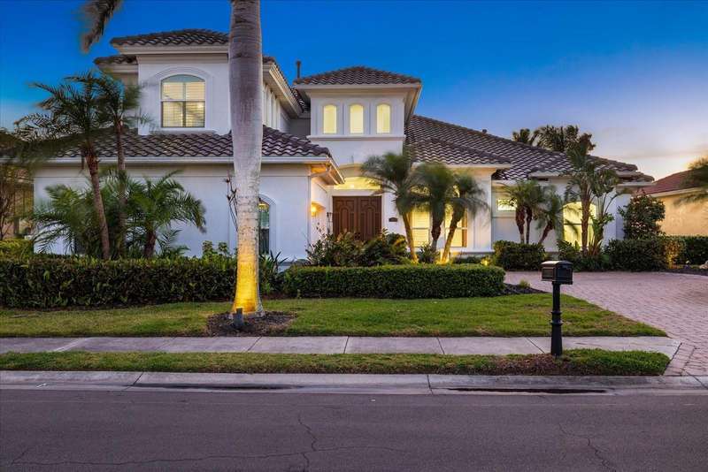 Under contract-accepting backup offers. Welcome to Riviera Dunes, an exclusive gated waterfront enclave known for its luxury lifestyle and ideal location. Tucked within this private community lies a beautifully modernized residence, fully reimagined in 2022 to offer the perfect blend of comfort, and coastal elegance. From the moment you step through the front door, soaring ceilings and a light-filled two-story foyer set the stage for refined design and exceptional craftsmanship. European white oak flooring flows throughout, complementing designer-selected tilework in the spa-like baths. The chef’s kitchen is a incredible, featuring custom cabinetry with pull-outs, smart storage solutions, and top-tier appliances—including a Sub-Zero refrigerator and a natural gas Wolf range. A butler’s pantry with a wine cooler, second dishwasher, and additional storage adds function, making entertaining effortless. Walls of impact-rated sliding doors invite natural light and open to a limestone pool deck, where a spacious covered lanai with pool and spa offers the ideal backdrop for relaxing or entertaining as the sun sets over the water. The primary suite is a serene retreat with expansive water views, a luxurious bathroom featuring dual vanities, a zero-entry shower, and a soaking tub, and generous walk-in closet space. A bright home office or den offers a peaceful and bright space to work or unwind. For the boating enthusiast is the private 60' dock located in the protected harbor of Riviera Dunes—widely regarded as one of the safest harbors on Florida’s southwest coast. Every element of this home has been meticulously updated, including a new tile roof in 2023, making it truly move-in ready. Reach out today or your private tour!