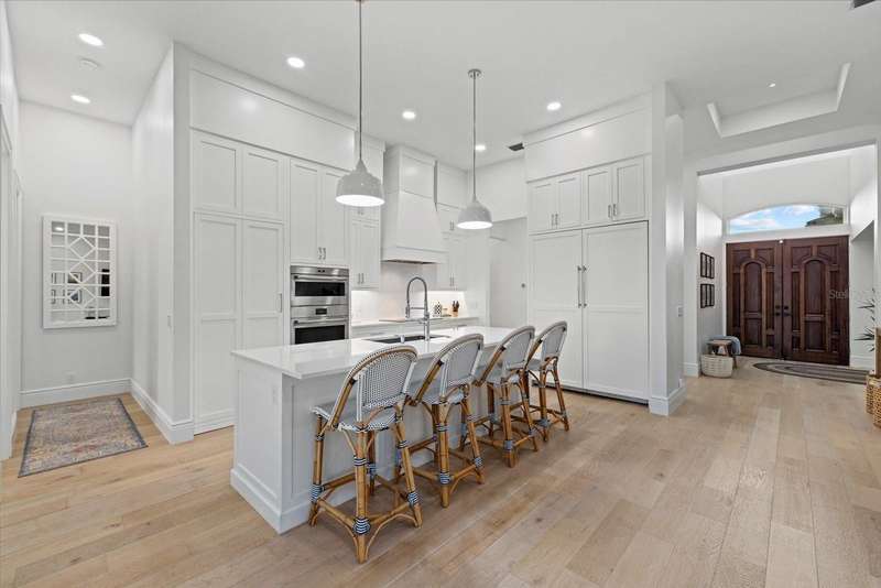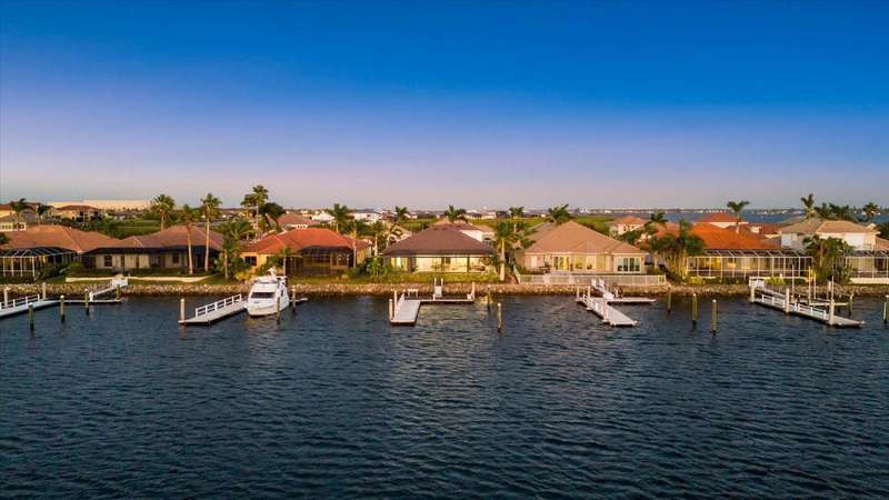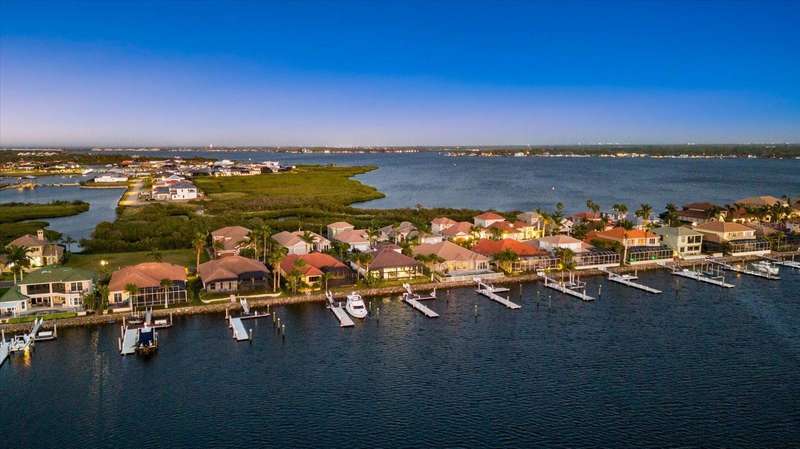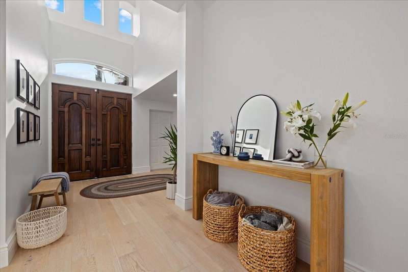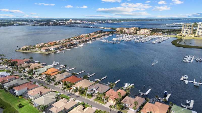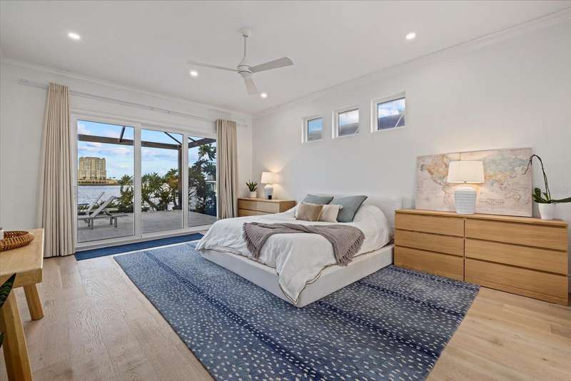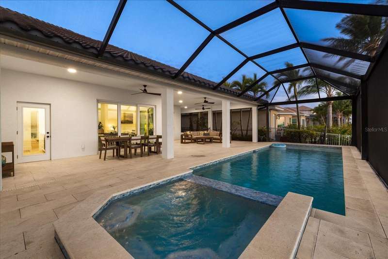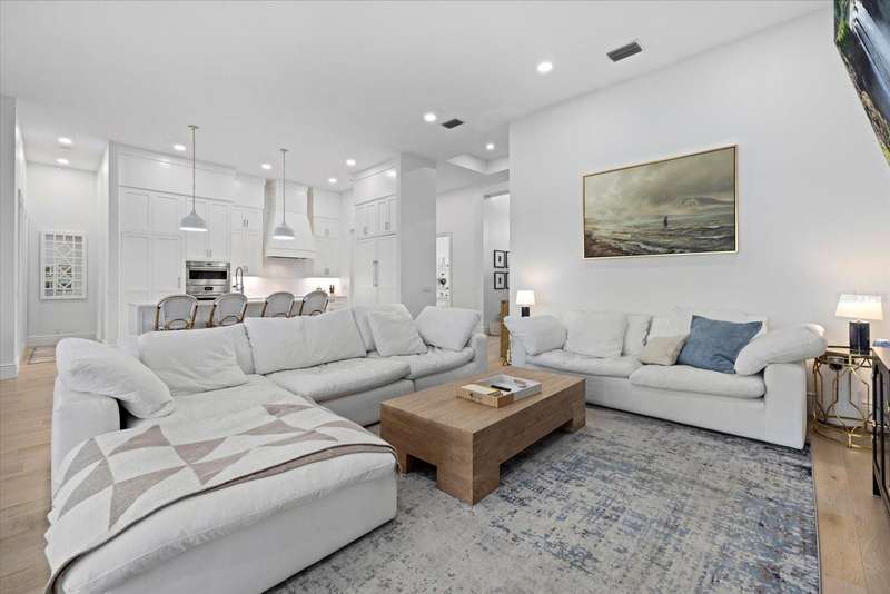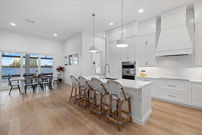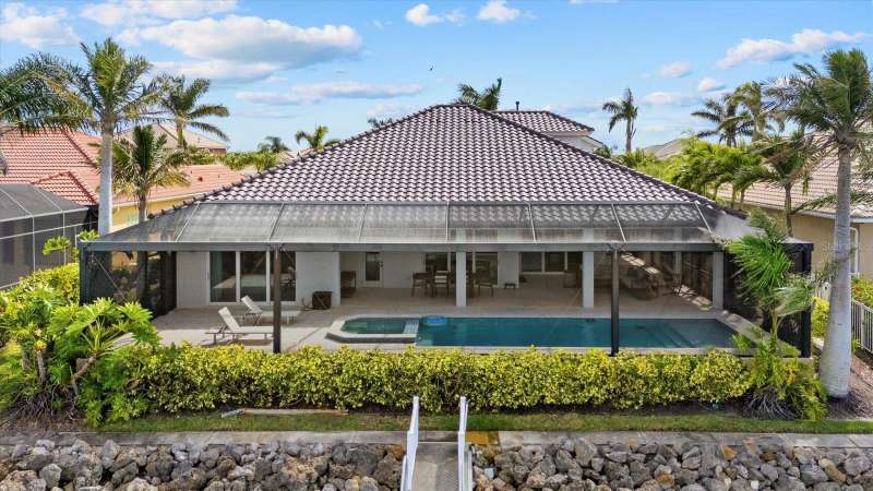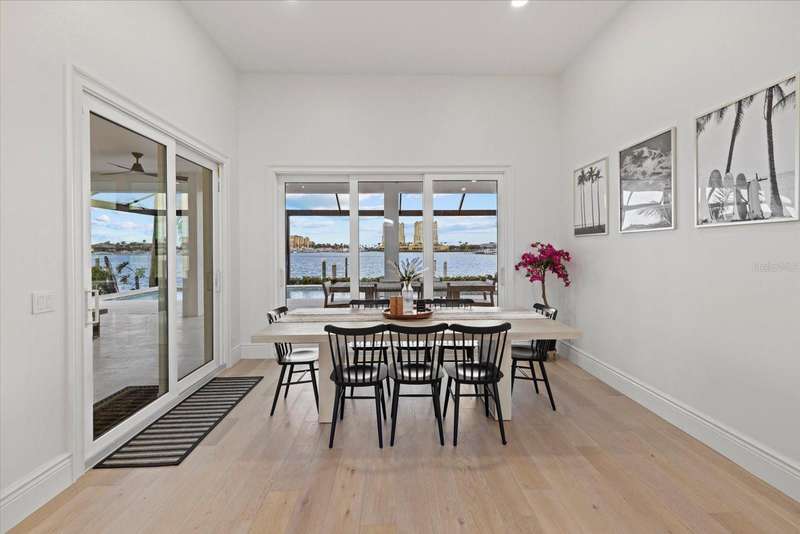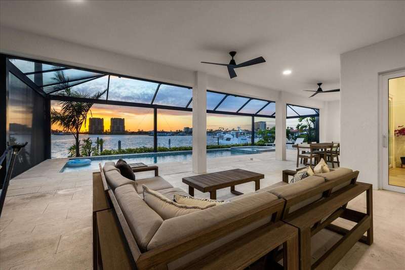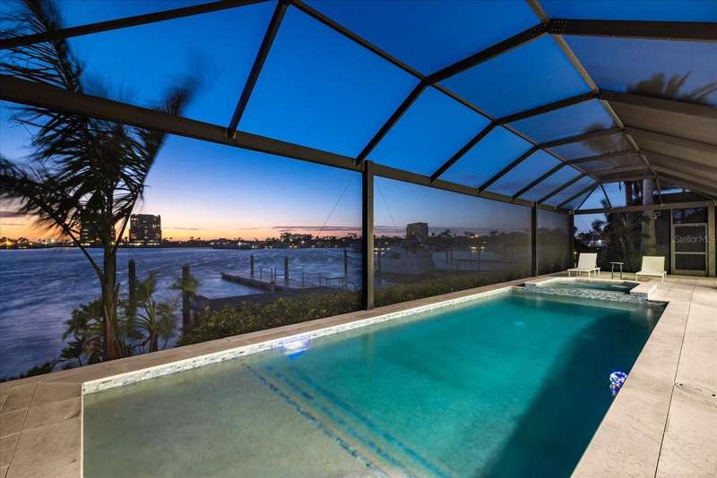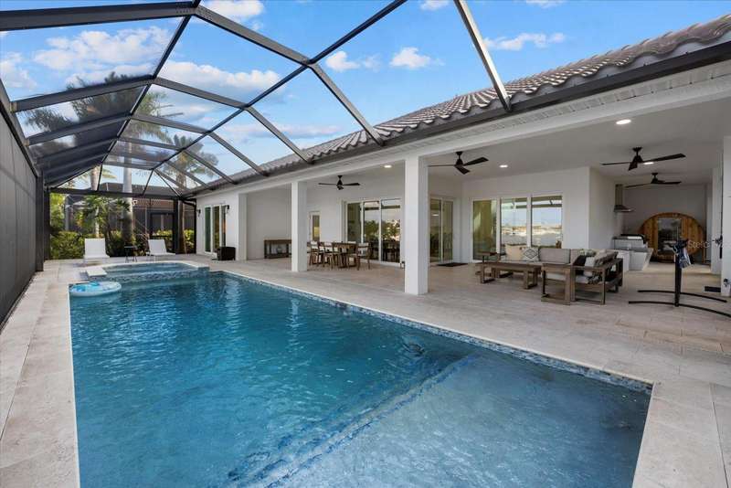 Under contract-accepting backup offers. Welcome to Riviera Dunes, an exclusive gated waterfront enclave known for its luxury lifestyle and ideal location. Tucked within this private community lies a beautifully modernized residence, fully reimagined in 2022 to offer the perfect blend of comfort, and coastal elegance. From the moment you step through the front door, soaring ceilings and a light-filled two-story foyer set the stage for refined design and exceptional craftsmanship. European white oak flooring flows throughout, complementing designer-selected tilework in the spa-like baths. The chef’s kitchen is a incredible, featuring custom cabinetry with pull-outs, smart storage solutions, and top-tier appliances—including a Sub-Zero refrigerator and a natural gas Wolf range. A butler’s pantry with a wine cooler, second dishwasher, and additional storage adds function, making entertaining effortless. Walls of impact-rated sliding doors invite natural light and open to a limestone pool deck, where a spacious covered lanai with pool and spa offers the ideal backdrop for relaxing or entertaining as the sun sets over the water. The primary suite is a serene retreat with expansive water views, a luxurious bathroom featuring dual vanities, a zero-entry shower, and a soaking tub, and generous walk-in closet space. A bright home office or den offers a peaceful and bright space to work or unwind. For the boating enthusiast is the private 60' dock located in the protected harbor of Riviera Dunes—widely regarded as one of the safest harbors on Florida’s southwest coast. Every element of this home has been meticulously updated, including a new tile roof in 2023, making it truly move-in ready. Reach out today or your private tour!