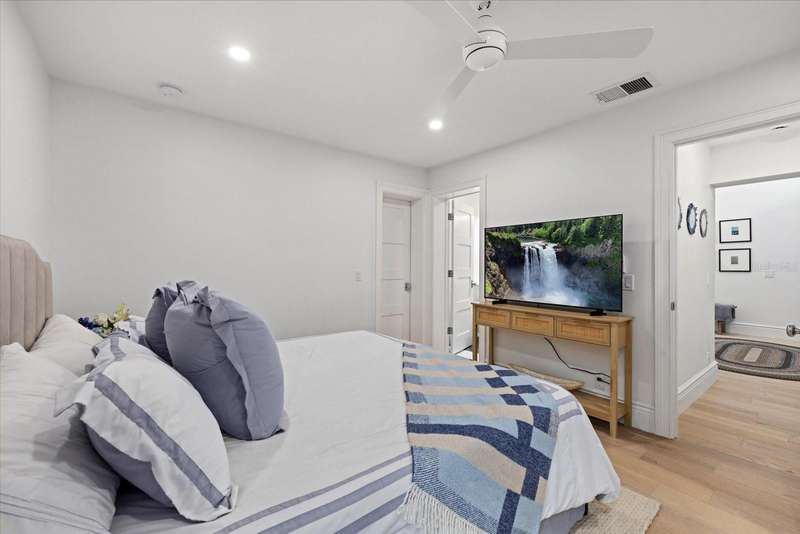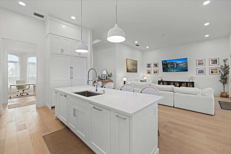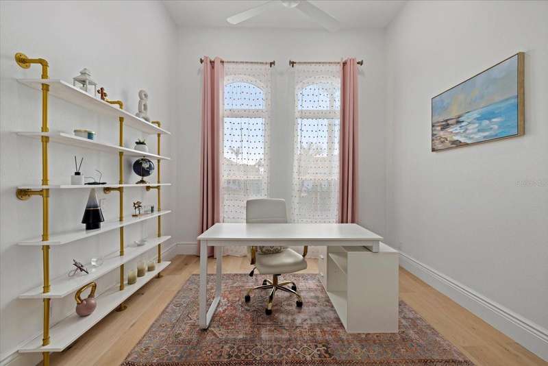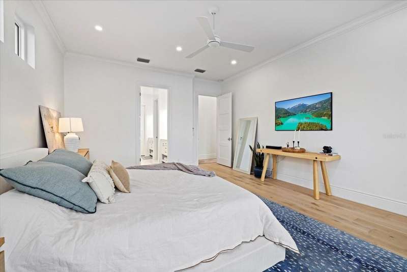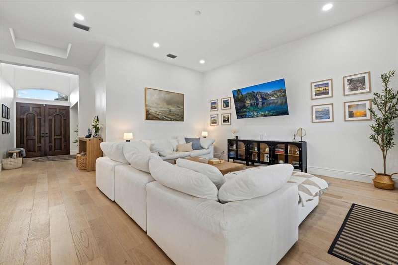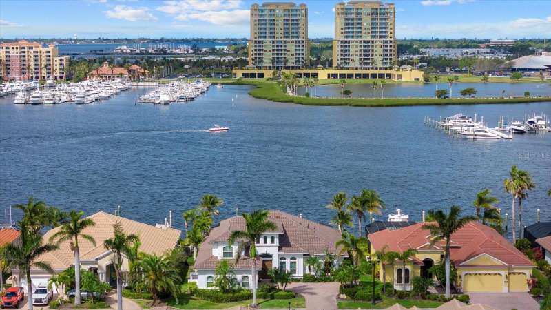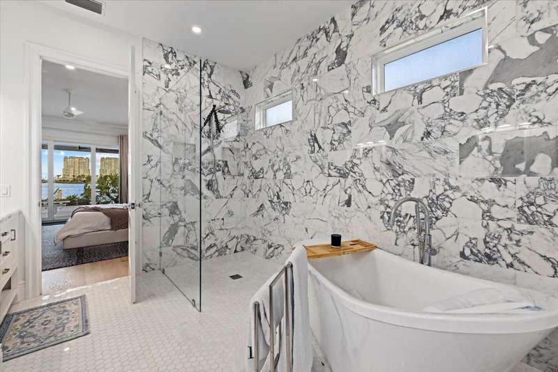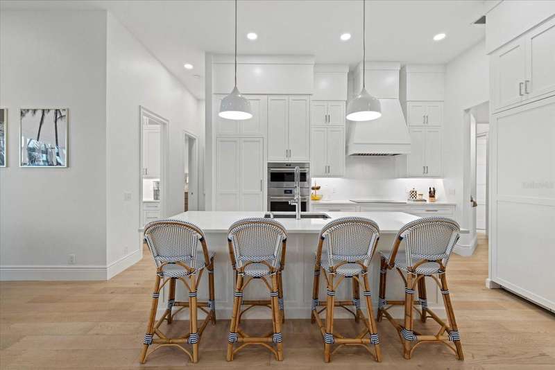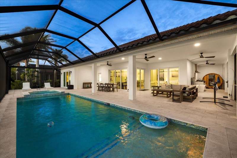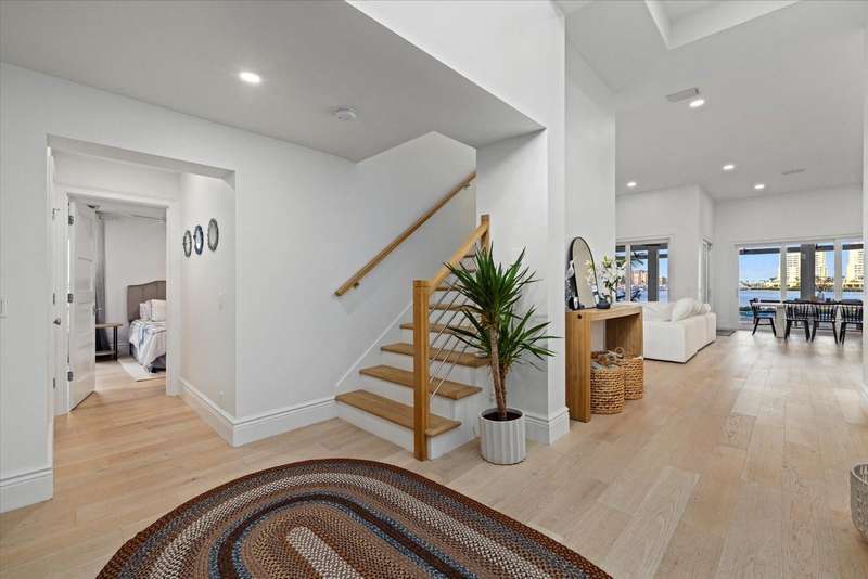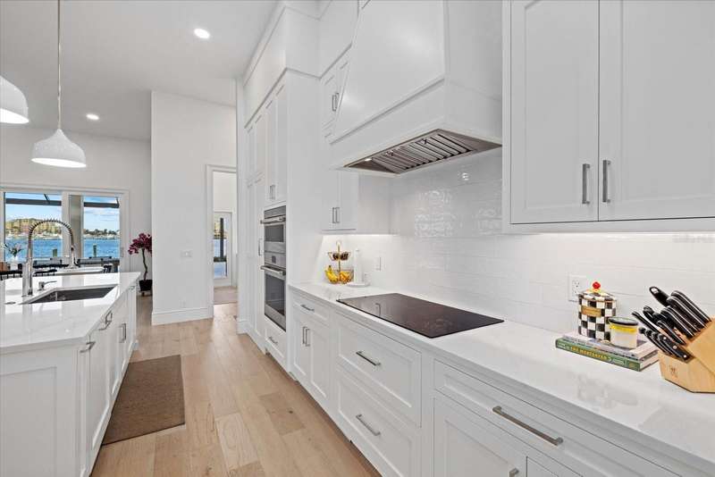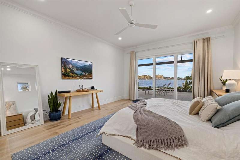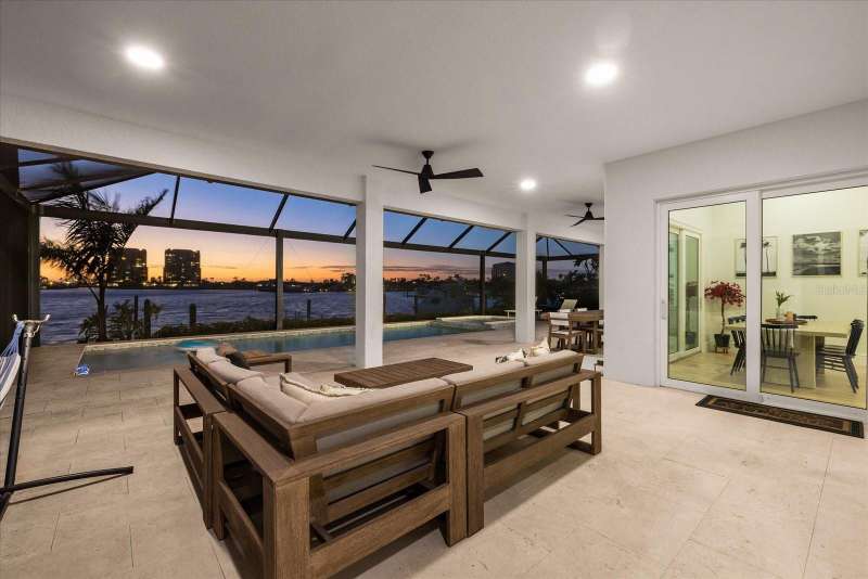 Under contract-accepting backup offers. Welcome to Riviera Dunes, an exclusive gated waterfront enclave known for its luxury lifestyle and ideal location. Tucked within this private community lies a beautifully modernized residence, fully reimagined in 2022 to offer the perfect blend of comfort, and coastal elegance. From the moment you step through the front door, soaring ceilings and a light-filled two-story foyer set the stage for refined design and exceptional craftsmanship. European white oak flooring flows throughout, complementing designer-selected tilework in the spa-like baths. The chef’s kitchen is a incredible, featuring custom cabinetry with pull-outs, smart storage solutions, and top-tier appliances—including a Sub-Zero refrigerator and a natural gas Wolf range. A butler’s pantry with a wine cooler, second dishwasher, and additional storage adds function, making entertaining effortless. Walls of impact-rated sliding doors invite natural light and open to a limestone pool deck, where a spacious covered lanai with pool and spa offers the ideal backdrop for relaxing or entertaining as the sun sets over the water. The primary suite is a serene retreat with expansive water views, a luxurious bathroom featuring dual vanities, a zero-entry shower, and a soaking tub, and generous walk-in closet space. A bright home office or den offers a peaceful and bright space to work or unwind. For the boating enthusiast is the private 60' dock located in the protected harbor of Riviera Dunes—widely regarded as one of the safest harbors on Florida’s southwest coast. Every element of this home has been meticulously updated, including a new tile roof in 2023, making it truly move-in ready. Reach out today or your private tour!