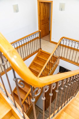 The second floor offers three additional bedrooms, one with an en-suite shower room, complemented by a bathroom and separate toilet. The generous volumes, noble materials, and natural light give this interior comfort and elegance.