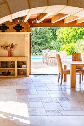 The outbuilding, a partially renovated former sheepfold, already offers more than 150 sqm of heated living space. It notably includes a 50 sqm games room and a vast 70 sqm reception room opening onto a terrace and the swimming pool. Its open spaces allow for multiple projects: a gite, professional space, or artist's studio.
