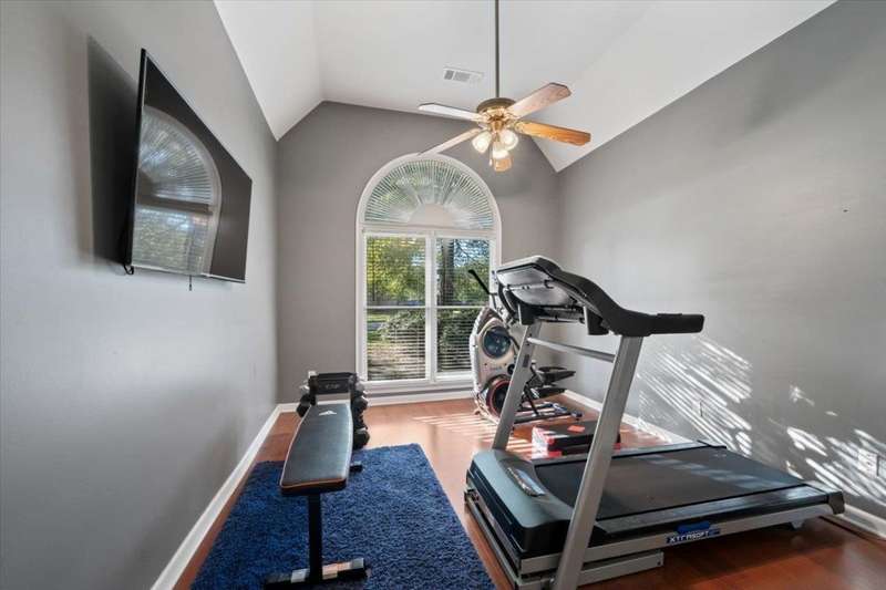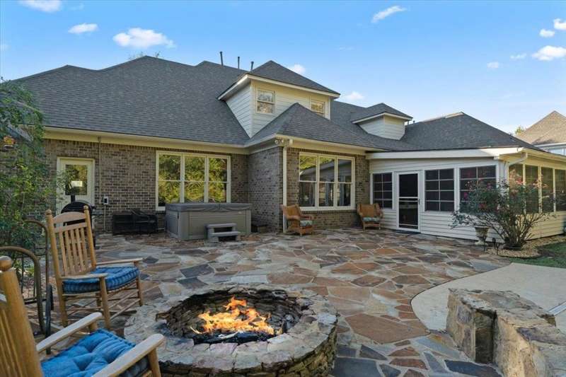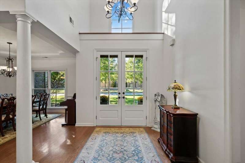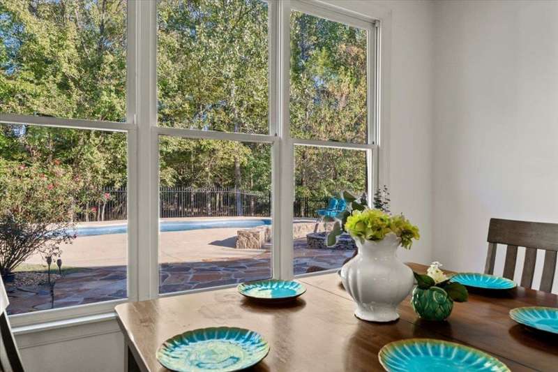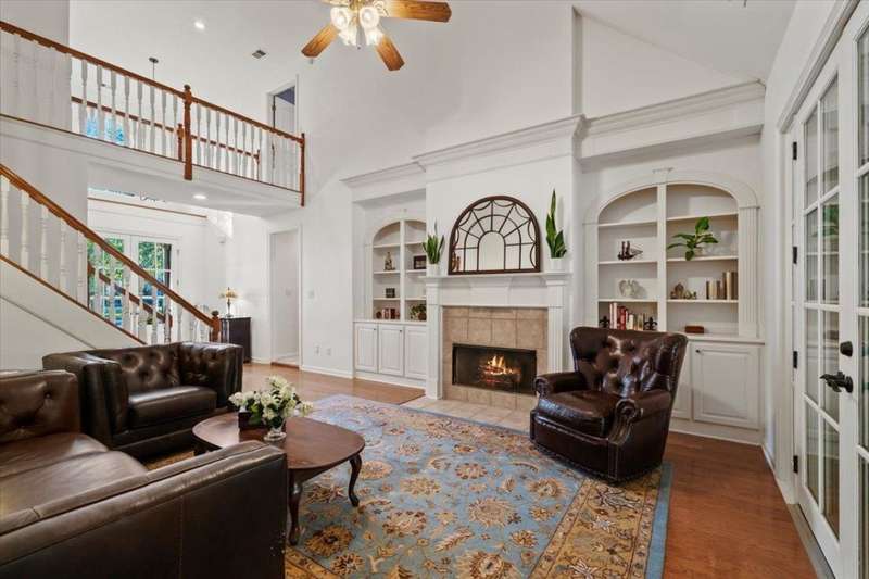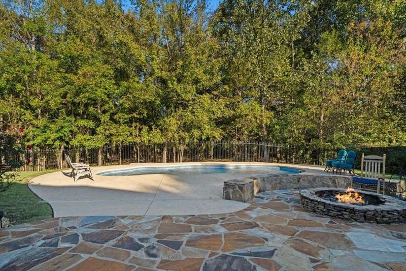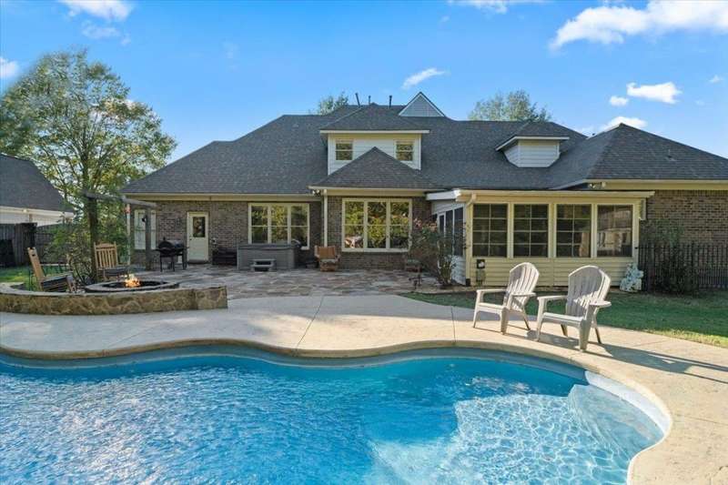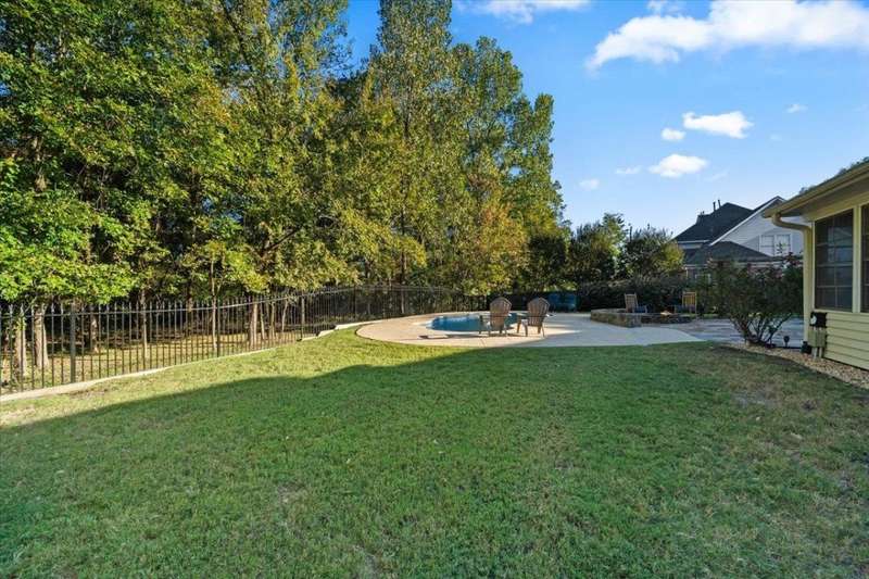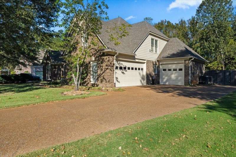 New Price for this unique set up in Collierville. The premium lot's natural wooded backdrop offers privacy, serene views, heated pool and hot tub, flag stone patio & firepit, sunroom and heated & cooled detached workshop! 5 bedrooms 4.1 ba + bonus. Roof & new exterior paint in 2023, all new interior paint and carpet 2025 makes this one even more special! This home lives large! 2 bedrooms downstairs, two-story entry & living room boasts hardwood floors, built-ins, and dramatic fireplace, open kitchen & hearth room with 2nd fireplace flow seamlessly into the sunroom and outdoor living. 3-car garage. You won't find more for your money in Collierville!