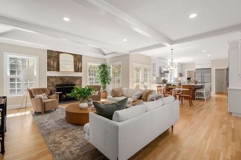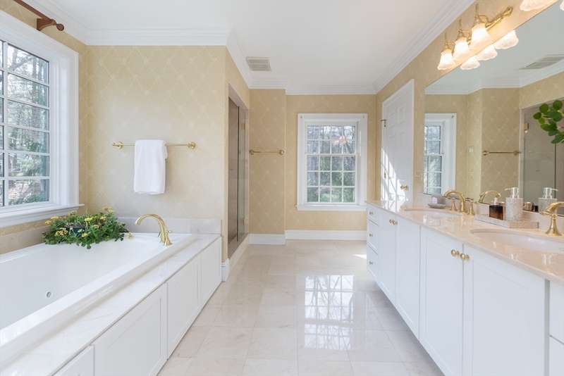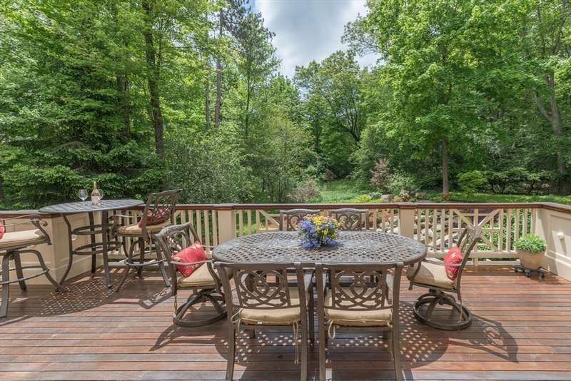 Meticulously maintained & updated home combines grand living, timeless design & quality construction. Commuter's dream w/ easy highway access tucked into a 1.94 acre suburban oasis. The layout allows for spacious living, entertaining, & room for generations of family. Main floor features open concept family room & state-of-the-art kitchen w/ Viking appliances, ample cabinetry, & coveted butlers pantry connected to formal dining. French doors off kitchen lead to expansive deck for outdoor entertaining, views of wooded acreage, water fall & professional landscaping. Off the family room, the secondary entrance, laundry room, 3 car garage & access to in-law suite. An office, den/living room & 2 half baths complete main level. Upstairs you will find the primary suite w/ vaulted ceilings, 5-piece bathroom & enormous walk-in closet. 2nd floor is completed by 2 additional bedrooms each w/ their own bathrooms. Finished basement w/ gym, media room & guests suite plus access to hot tub & patio.