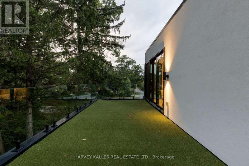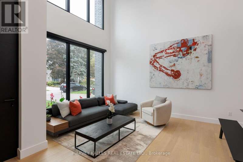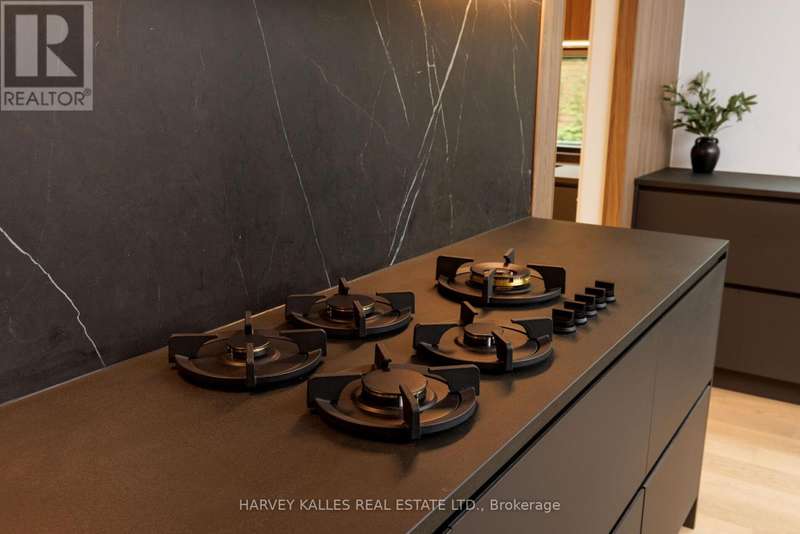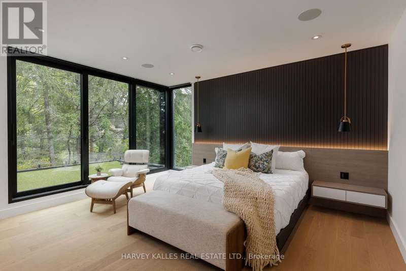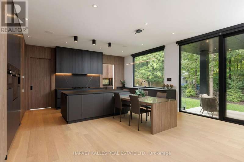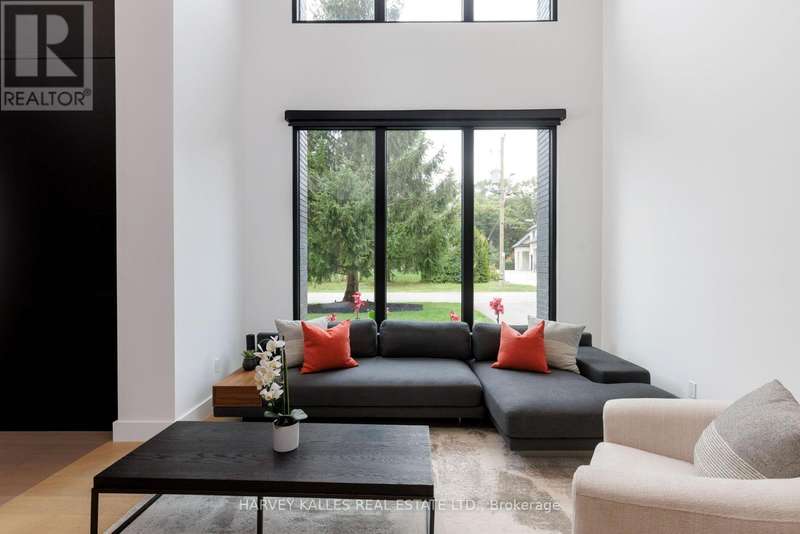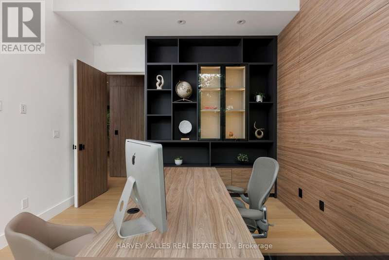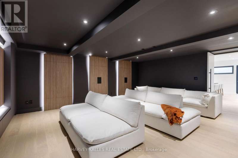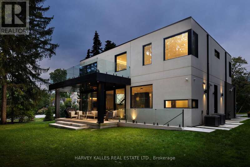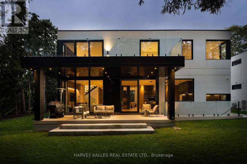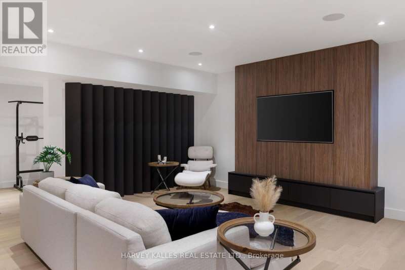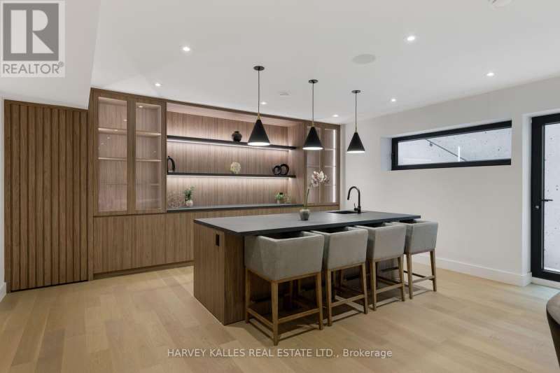 Exceptional custom residence with a masterful fusion of contemporary design with serene zen influences. 6600+ sq. ft. of finished living space, carefully crafted over four years. Dramatic 20-foot foyer with its illuminated glass pivot door, with expansive light-filled spaces highlighted by a floating staircase, architectural feature panel walls, and warm custom millwork. On the main level, a modern family room with a striking two-sided linear fireplace provides both comfort and sophistication, while the bespoke executive office offers custom millwork and gorgeous treetop views. The chefs kitchen is a true showpiece, featuring Miele appliances, a PITT gas counter range, and a separate catering kitchen. A stylish powder room, skylights, heated floors, and refined cabinetry complete the main level.The primary suite is your private retreat with a spa-inspired ensuite, custom walnut and glass walk-in closets, and a cozy lounge complete with 3-sided fireplace ambiance. Additional bedrooms feature en-suite baths and built-in cabinetry, with a flexible fourth bedroom suite that provides versatility. Your laundry room with full custom millwork completes the upper level. The lower level is an entertainment and wellness oasis ... 15-seat soundproof theatre, glass-walled temperature-controlled wine cantina, open-concept gym, and a sleek wet bar create the ultimate space for relaxation and hosting. A nanny or guest suite with a spa-like ensuite and direct walkout to the landscaped grounds ensures comfort and privacy for extended stays. The exterior showcases modern brick and aluminum cladding, beautifully landscaped grounds with irrigation, and sleek architectural lighting. Technology is seamlessly integrated with a Control4 smart home automation system, delivering comfort, convenience, and efficiency at your fingertips.This is more than a home it is a contemporary zen oasis, where design, technology, and tranquility converge to create a sanctuary for modern living. (id:6370)