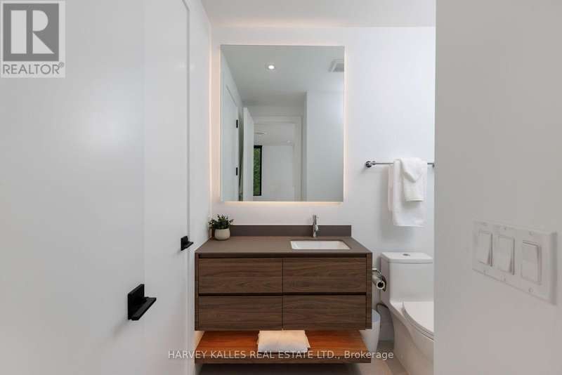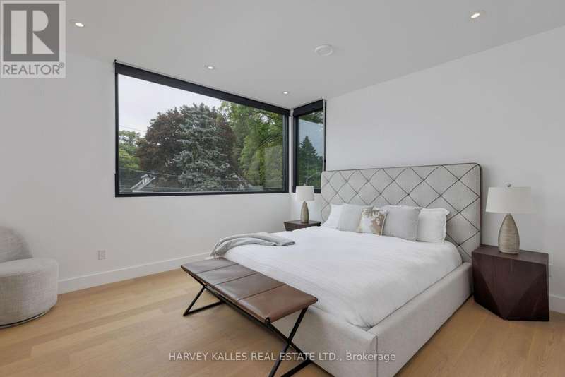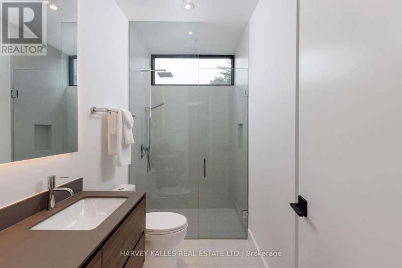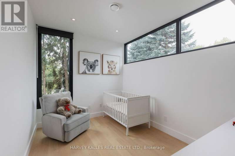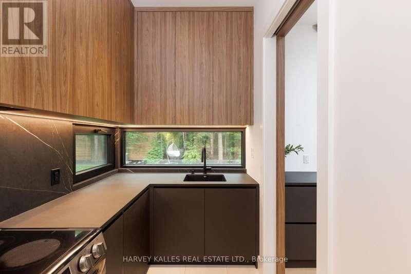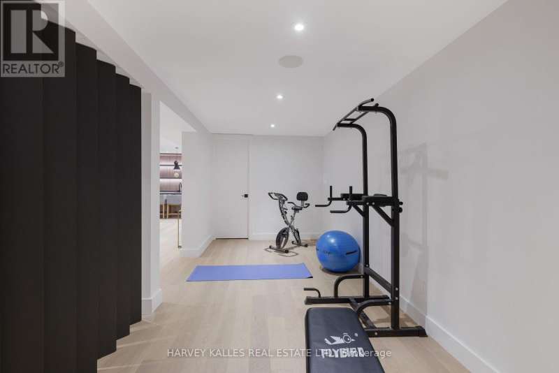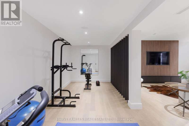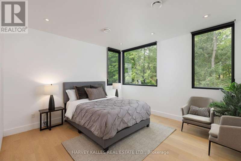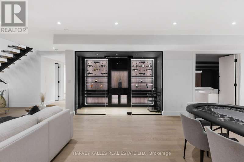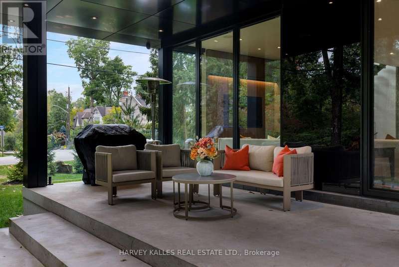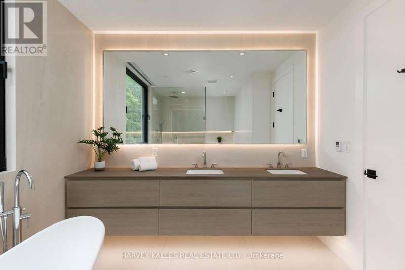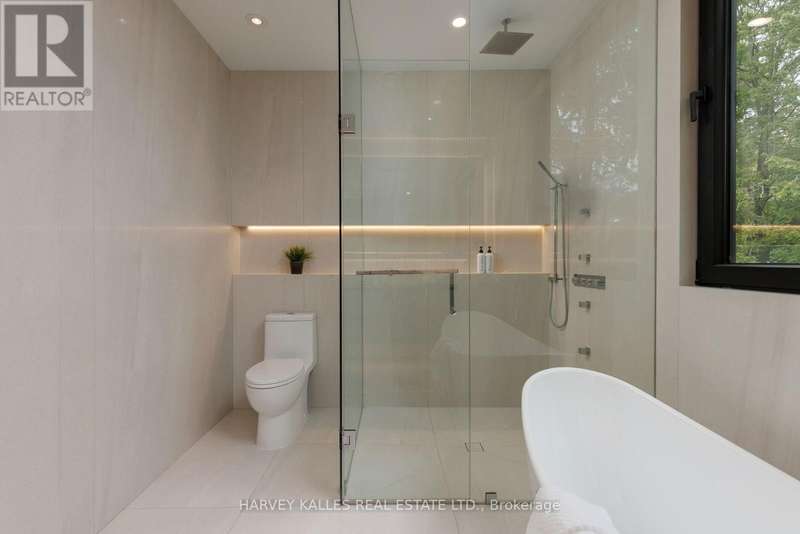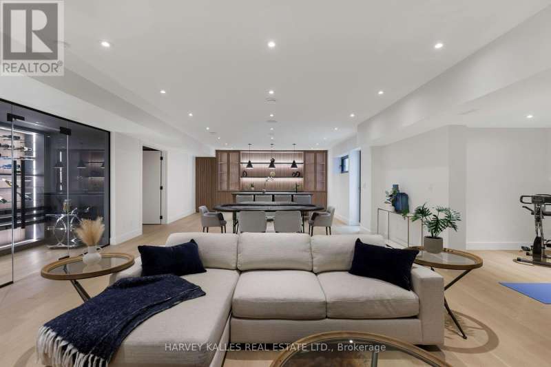 Exceptional custom residence with a masterful fusion of contemporary design with serene zen influences. 6600+ sq. ft. of finished living space, carefully crafted over four years. Dramatic 20-foot foyer with its illuminated glass pivot door, with expansive light-filled spaces highlighted by a floating staircase, architectural feature panel walls, and warm custom millwork. On the main level, a modern family room with a striking two-sided linear fireplace provides both comfort and sophistication, while the bespoke executive office offers custom millwork and gorgeous treetop views. The chefs kitchen is a true showpiece, featuring Miele appliances, a PITT gas counter range, and a separate catering kitchen. A stylish powder room, skylights, heated floors, and refined cabinetry complete the main level.The primary suite is your private retreat with a spa-inspired ensuite, custom walnut and glass walk-in closets, and a cozy lounge complete with 3-sided fireplace ambiance. Additional bedrooms feature en-suite baths and built-in cabinetry, with a flexible fourth bedroom suite that provides versatility. Your laundry room with full custom millwork completes the upper level. The lower level is an entertainment and wellness oasis ... 15-seat soundproof theatre, glass-walled temperature-controlled wine cantina, open-concept gym, and a sleek wet bar create the ultimate space for relaxation and hosting. A nanny or guest suite with a spa-like ensuite and direct walkout to the landscaped grounds ensures comfort and privacy for extended stays. The exterior showcases modern brick and aluminum cladding, beautifully landscaped grounds with irrigation, and sleek architectural lighting. Technology is seamlessly integrated with a Control4 smart home automation system, delivering comfort, convenience, and efficiency at your fingertips.This is more than a home it is a contemporary zen oasis, where design, technology, and tranquility converge to create a sanctuary for modern living. (id:6370)