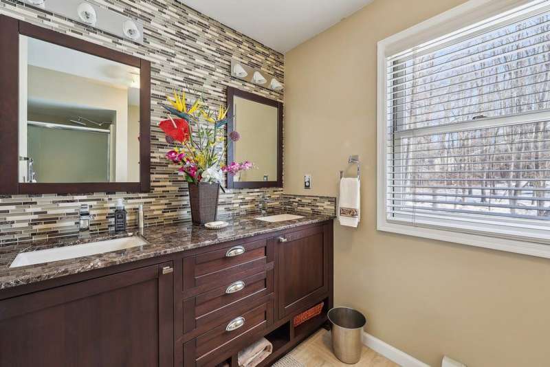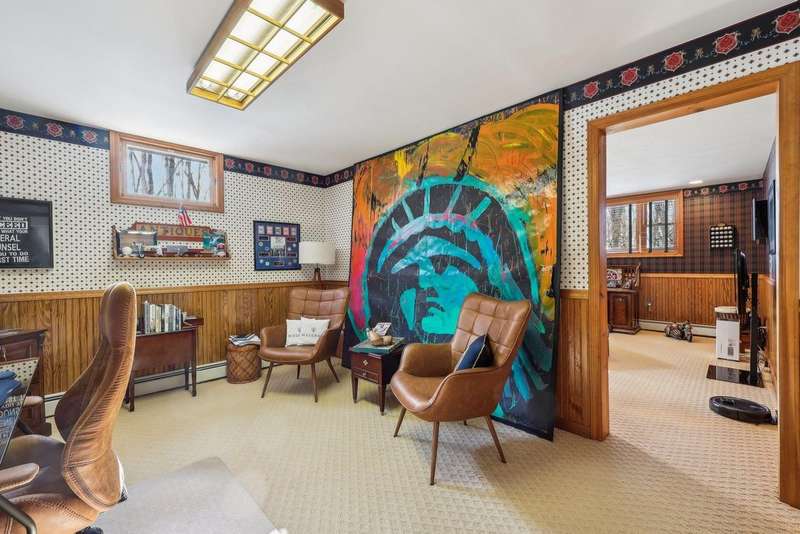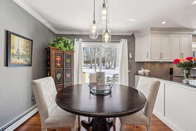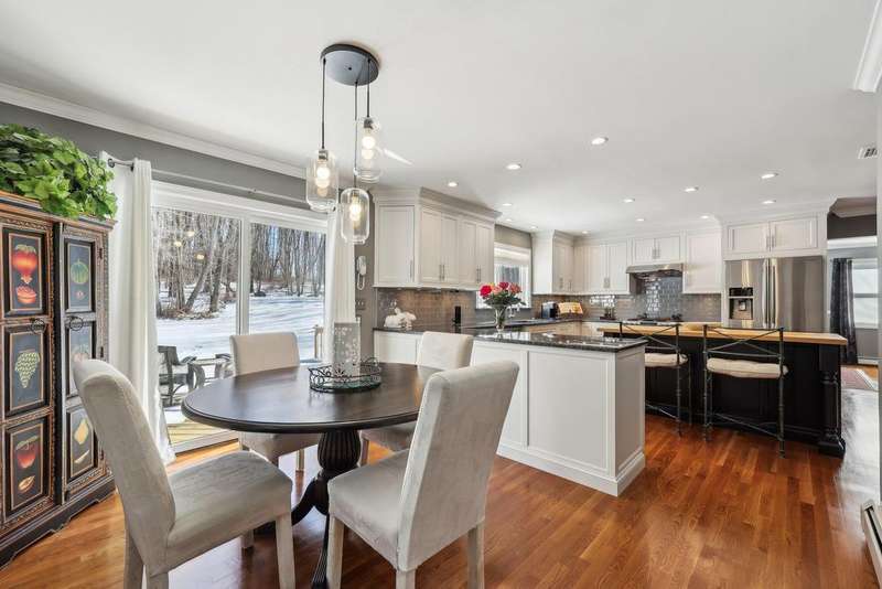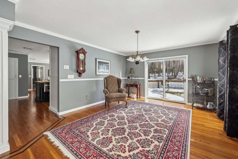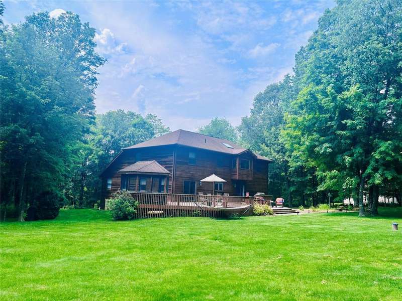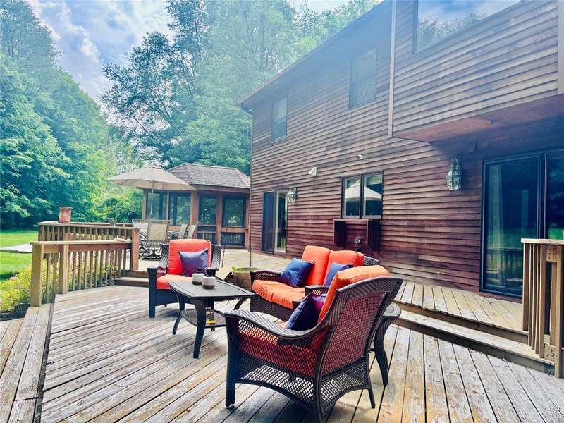 Discover peaceful countryside living in this stunning contemporary colonial, nestled on 2.9 acres in beautiful Warwick. Step inside to a grand two-story foyer that opens into a spacious living room with soaring ceilings, a cozy wood-burning fireplace, and French doors leading to a charming covered porch. The chef-inspired custom kitchen features designer cabinetry, top-of-the-line appliances, and elegant granite countertops, complemented by a large pantry and a cozy breakfast nook. A thoughtfully renovated first-floor bedroom and bathroom, complete with a luxurious walk-in shower, offers convenience and comfort.The vaulted-ceiling family room provides a perfect spot to unwind, while the formal dining room sets the stage for elegant entertaining. The expansive primary suite is a true retreat, showcasing a wood-burning fireplace, a private sitting area, and a custom walk-in closet designed for ultimate organization. The lower level offers additional living space with an office and a fun game room, ideal for relaxation or recreation.Outside, the oversized deck invites you to enjoy serene outdoor living with complete privacy?perfect for wildlife watching or hosting a backyard barbecue. Warwick's vibrant community is just minutes away, offering an array of delightful restaurants, shops, wineries, and breweries. Outdoor enthusiasts will appreciate nearby hiking trails, skiing opportunities, and an abundance of parks and beaches for year-round enjoyment.