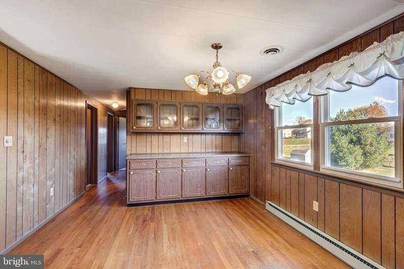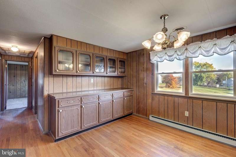 Charming Country Rancher on 0.6 Acres! Welcome home to this inviting 3-bedroom, 2-bath ranch nestled in a peaceful rural setting. Enjoy morning coffee on the covered front porch or relax on the side composite deck. Inside, you'll find a comfortable layout featuring a bright living room with bow window, country kitchen with breakfast bar, dining room offering hardwood floors and built in cabinetry. Generous living spaces perfect for everyday living or entertaining! The full unfinished walkout basement offers endless possibilities-complete with a woodstove flue, storage room with built-in shelving, water treatment system, and access to the rear patio. Whether you're starting out, downsizing, or simply craving quiet country living, this home offers warmth, potential, and plenty of charm!