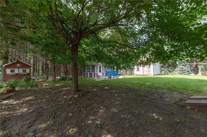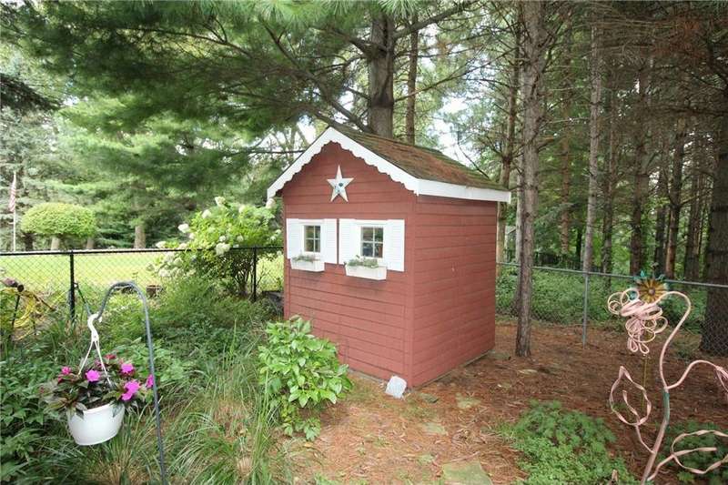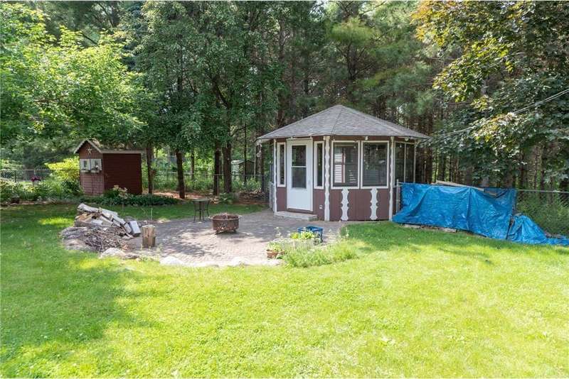 This one-of-a-kind custom home blends timeless cottage charm with classic Craftsman style, offering warmth, character, and thoughtful updates throughout. Nestled on nearly 3/4 of an acre in a peaceful, established neighborhood, the home stands out with striking red siding, stone accents, and a welcoming covered front porch that invites you in. Step inside to find rich Asian walnut hardwood floors, crown molding, and sun-filled spaces that create a refined yet comfortable atmosphere. The updated kitchen is designed for both everyday living and entertaining, featuring granite countertops, stainless steel appliances, and quality cabinetry. A cozy wood stove anchors the main living area, adding warmth and charm. Convenience is built in with main-floor laundry, solid 6-panel doors, and oversized windows that bring the outdoors in. The lower level expands your possibilities with a kitchenette, music and exercise rooms, and a third bathroom already roughed in with fixtures included. With its own exterior entrance, this level is perfectly suited for a private guest suite, in-law apartment, or rental opportunity. Outside, the property shines with a fenced yard, brand-new storage shed, charming garden shed, a beautiful gazebo, and a private wooded area ideal for relaxation or entertaining. Adding to its story, this home was built with care and vision: the original owner grew the trees and hand-milled the lumber used in its construction. Truly a labor of love, this is a home unlike any other, ready to welcome its next chapter.