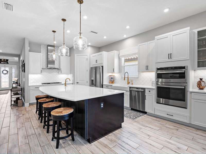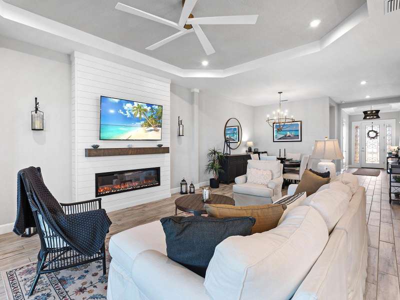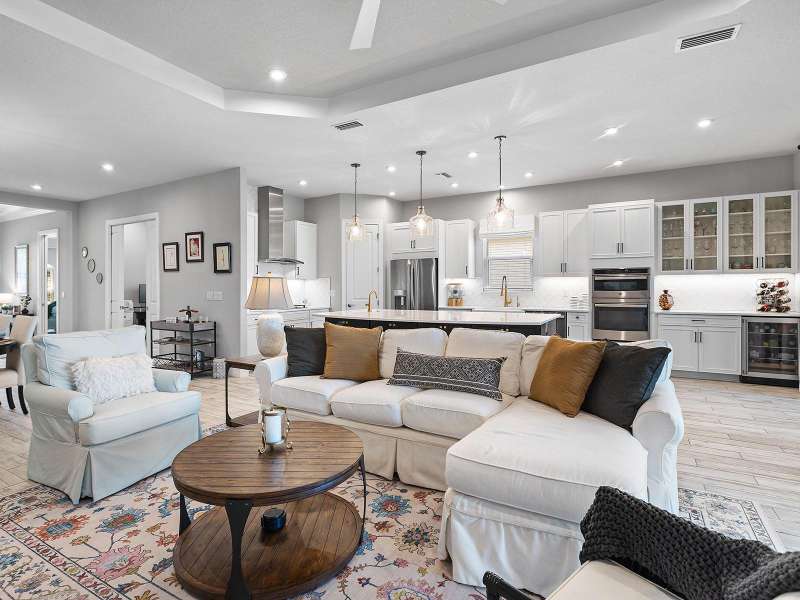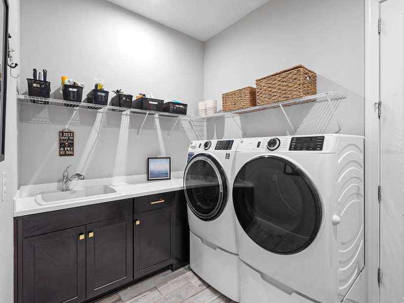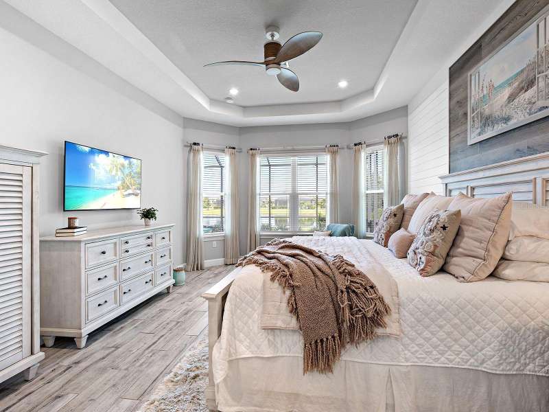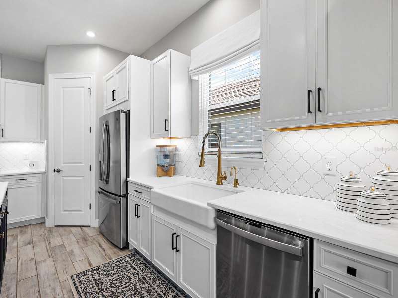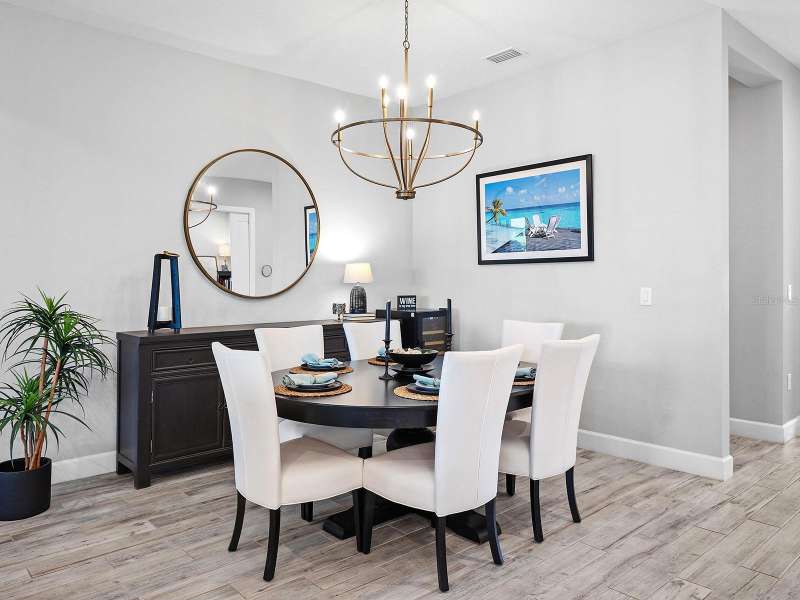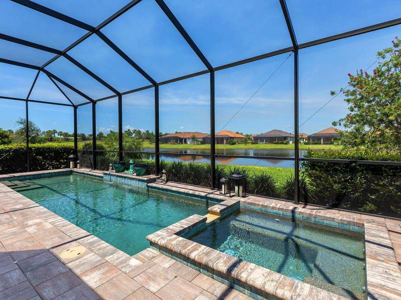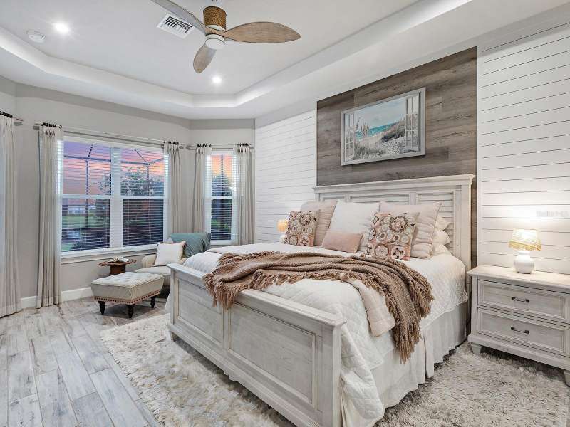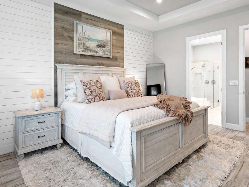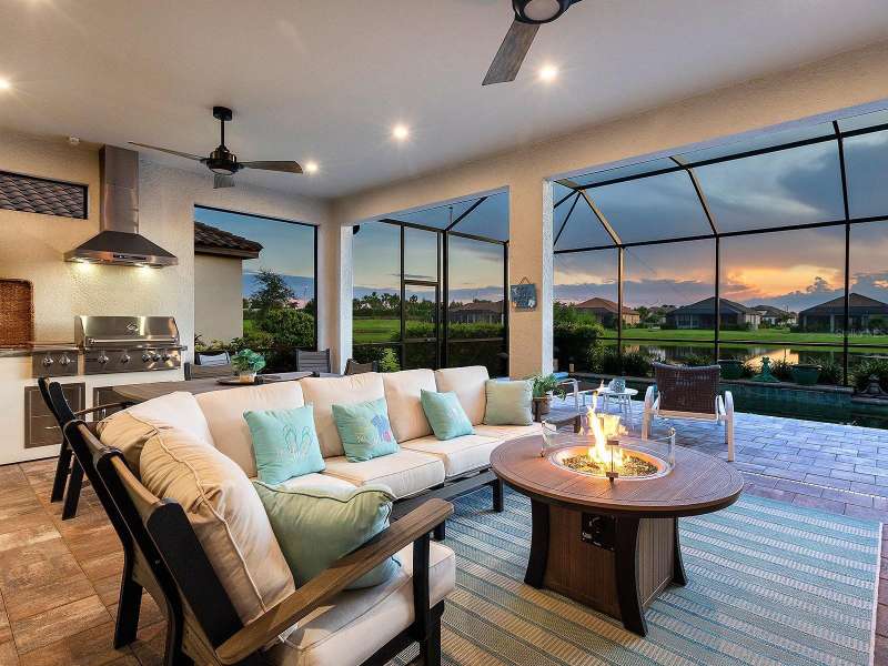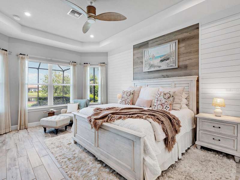 This GOLF DEEDED HOME has a full GOLF MEMBERSHIP INCLUDED! You will love this extended Lazio floor plan with upgraded lakeside living in amenity-rich Esplanade at Azario in Lakewood Ranch. With a spacious corner lot, extremely private landscaping, a desirable western exposure with picturesque sunsets over the lake every evening, and resort-style amenities at your fingertips, you will never want to leave this beautiful home. Recently constructed in 2022, this Taylor Morrison home offers exceptional upgrades beyond the builder basics in an extended floor plan with 2,375 SF of living space in an open and modern floor plan, and is also outfitted with impact windows and doors throughout. The interior boasts a modern and comforting ambiance with wood-look porcelain tile plank flooring, cool and inviting color palette, designer light fixtures, and wood and metal embellishments. The central entertaining area has a flexible great room and dining room space, ideal for family gatherings, entertaining, and daily living. The great room includes a custom shiplap feature wall, wood mantle, electric fireplace, contemporary ceiling fan, and impact sliding doors to the lanai. Chef’s will delight in the executive kitchen equipped with two-tone cabinetry with modern pulls, Quartz counters, farmhouse sink and prep sink both with brushed gold faucets, tile backsplash, walk-in pantry, and high-end stainless steel appliance suite. The kitchen space also features a custom-built wine bar with display cabinets and wine refrigerator. There is also enough space to add a bistro or café table with lake view for more dining and entertaining options. Additional impact sliders lead out to the paver lanai where a spacious covered entertaining space offers room for relaxing and dining next to the outdoor kitchen with stainless steel grill, separate burner, and bar fridge. The lap-style saltwater pool and spa has a waterfall feature and is gas heated so it can be enjoyed year-round. The immaculate details and comforting spaces continue into the primary suite with a feature wall of white shiplap and warm wood, geometric tray ceiling, and seating area overlooking the lake. The en-suite bathroom includes marble-look tile, a jetted soaking tub, walk-in shower with multiple shower heads and bench, dual sinks on a long vanity, and walk-in closet. Guests will enjoy two spacious guest bedrooms, one of which has an en-suite bathroom. Complementing the other fine features, you’ll find a private study with double pocketing doors, functional laundry room, and 2-car garage. Located just a 5-minute walk from the second amenity center, you are steps away from a lakeside resort-style pool, dog park, clubhouse, and community garden. The main amenities campus is just over 1 mile away featuring the main clubhouse, 18-hole golf course, restaurants, resort-style pool with Bahama Bar, tennis and pickleball courts, aqua driving range, golf pro shop, wellness center with spa service, robust calendar of social events and more. Lakewood Ranch is the top multi-generational community in the country for seven years in a row with plentiful shopping, dining, A-rated schools, parks, and nearby beaches