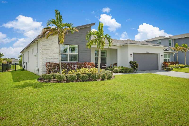 Motivated sellers! Mattamy quality-built home offers 3 bedrooms, 2.5 baths, and 2,100 sq. ft. of modern living. The open-concept design showcases soaring ceilings, natural light, and a stylish kitchen with quartz countertops, stainless steel appliances, gas range, & large island. The spacious primary suite is a true retreat with an expansive custom closet, large walk-in shower, and dual vanities. A versatile flex space and 2-car garage with OX flooring and Craftsman storage system add to the home's appeal. Enjoy the covered patio, lakefront view, and fenced yard. Community amenities include a resort-style pool, clubhouse, fitness center, and pet-friendly paw park. HOA covers lawncare, irrigation, internet, cable. Minutes from Tradition Square, Cleveland Clinic, & I-95 for easy commutes.