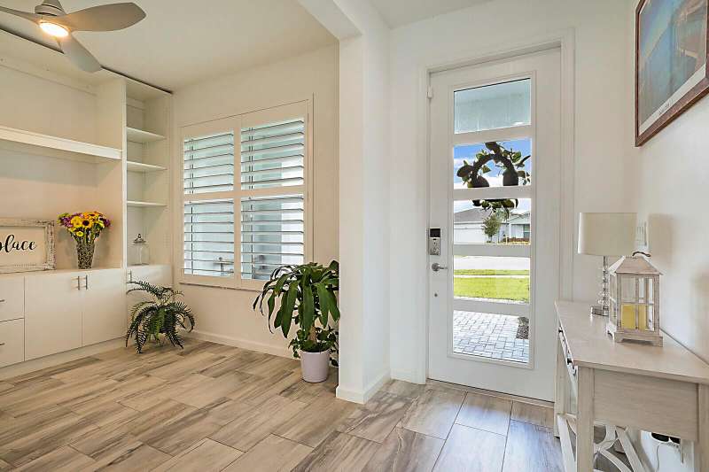 Beautiful Mattamy-built home offering 3BR, 2.5BA, and 2,100 sq ft of modern living. Features include impact windows, a gas-powered whole house generator, and an open layout with soaring ceilings. The kitchen shines with quartz counters, stainless appliances, and a gas range. Enjoy a spacious primary suite, custom closet, and lake views from the covered patio and fenced yard. Community amenities include a resort-style pool, fitness center, and dog park. HOA covers lawn, irrigation, internet & cable.