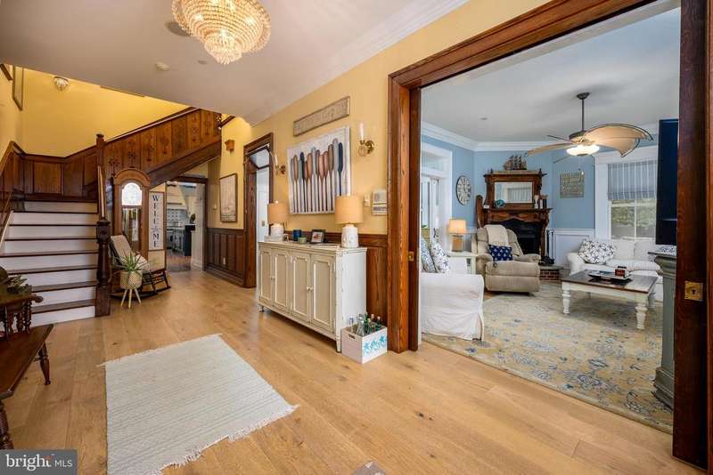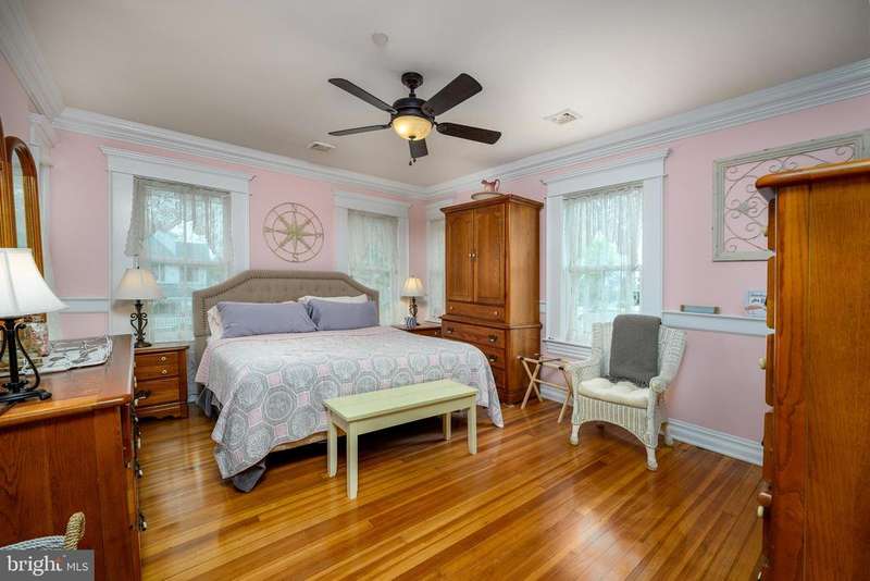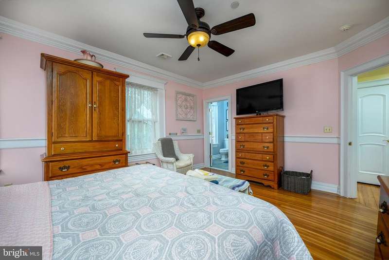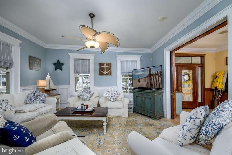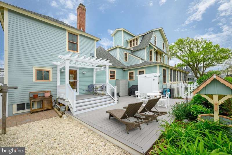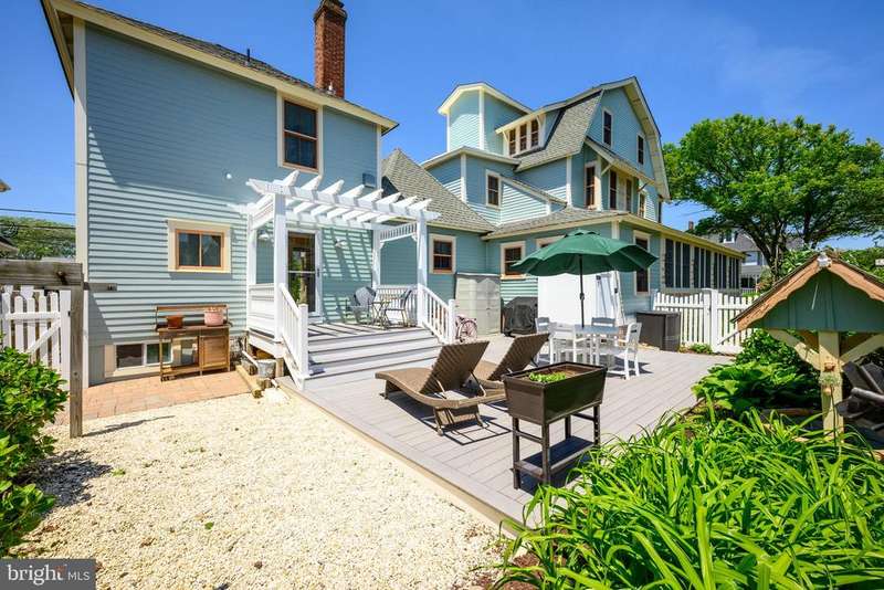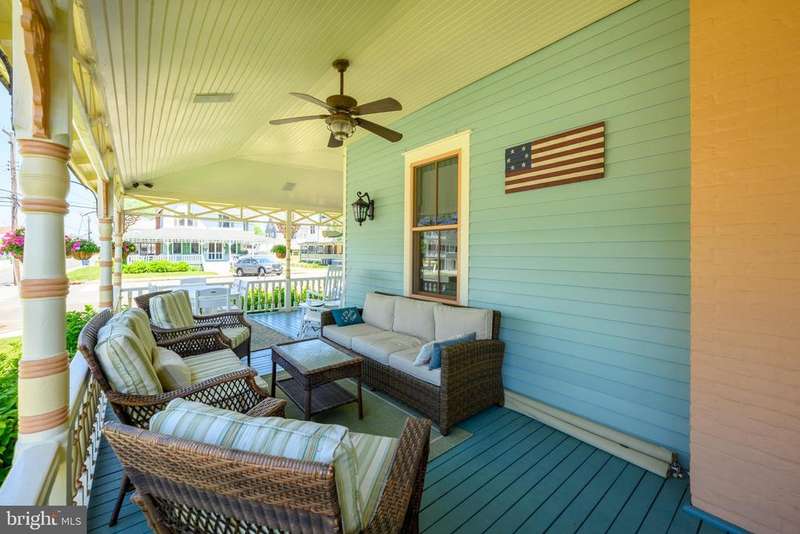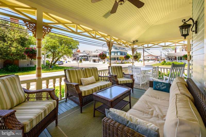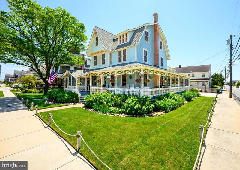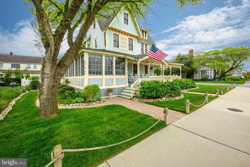 Nestled in the coveted B and B district of Beach Haven, this meticulously restored Victorian home offers a perfect blend of historic charm and modern convenience. Boasting 3541 sq ft of living space on a spacious 7500 sq ft lot, this residence showcases original architectural details alongside thoughtful updates. Step inside to discover a welcoming interior featuring intricate woodwork, high ceilings, and elegant finishes throughout. The main level boasts expansive living areas, ideal for entertaining guests or relaxing with family. The gourmet kitchen is a chef's dream, equipped with top-of-the-line appliances and ample counter space. Ascend the grand staircase or take the convenient elevator to the upper levels, where you'll find comfortable bedrooms with luxurious bathrooms. The top floor master suite is a serene retreat, complete with a spa-like ensuite and laundry room. This home is not only steeped in history but also equipped with modern amenities for comfort and safety. An alarm monitors the fire sprinkler system and generator ensures peace of mind, while the elevator offers convenience for residents of all ages. Outside, the landscaped yard provides the perfect setting for outdoor gatherings or quiet relaxation. Enjoy the coastal breeze from the charming front porch or host a barbecue on the spacious patio. Located just steps from the beach and all the attractions of Beach Haven, including shops, restaurants, and entertainment options, this property offers the quintessential Long Beach Island lifestyle. Don't miss this opportunity to own a piece of history in one of the island's most desirable neighborhoods.