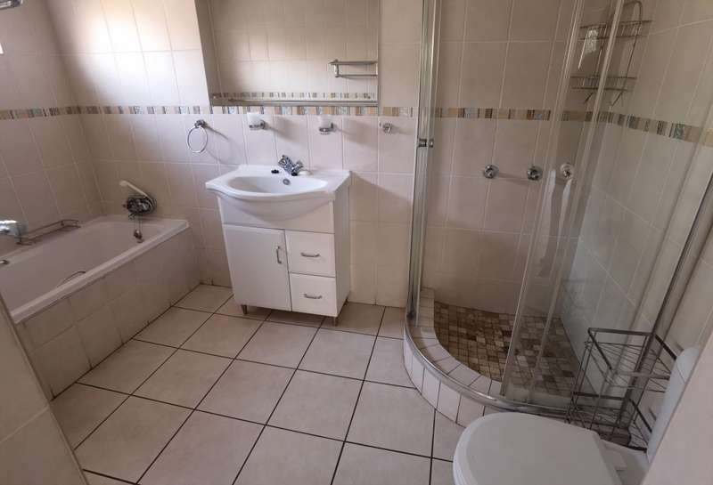 The main house features three generously sized bedrooms with built-in cupboards, a master suite with an en-suite bathroom, and a spacious open-plan living area perfect for relaxation and entertaining. The modern kitchen, complete with granite countertops, overlooks the indoor entertainment area, which seamlessly flows to the sparkling pool and inviting braai area.