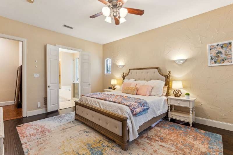 Situated on a spacious corner lot in the highly sought-after Suncreek neighborhood, this beautifully maintained 5 bedroom home offers room to spread out just steps from the neighborhood park and playground. Gorgeous hardwood floors greet you at the entry and flow into the inviting family room. Flanked by formal living and dining rooms with elegant plantation shutters, the entry also leads to a private office with French doors that can double as a guest suite. The expansive primary suite is tucked away for privacy and features a cozy sitting area, stylish sconces, and views of the backyard. The ensuite primary bath includes white cabinetry, dual sinks, a jetted tub, separate shower, and dual oversized walk-in closets. The open-concept kitchen is designed for both function and style, offering granite countertops, rich stained cabinetry, stainless steel appliances, a large island with seating, butlers pantry, and a walk-in pantry. Just off the kitchen is a half bath and space for a mud bench. Upstairs, you'll find four generously sized bedroomseach with walk-in closetstwo full baths, a large game room, and a private media room. The home also features dual staircases, a well-equipped laundry room with sink and storage, and a massive under-stair closet. Enjoy outdoor living on the flagstone-covered patio, with a wrought iron fence enclosing the spacious yard. A 3-car garage completes the package. Zoned to acclaimed Beverly Elementary and just minutes from hike-and-bike trails, shopping, and Watters Creek, this Suncreek gem blends comfort, convenience, and top-tier amenities.