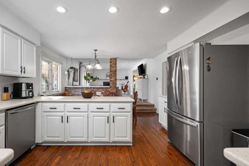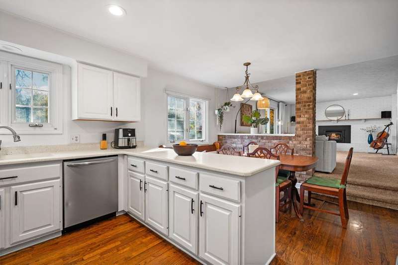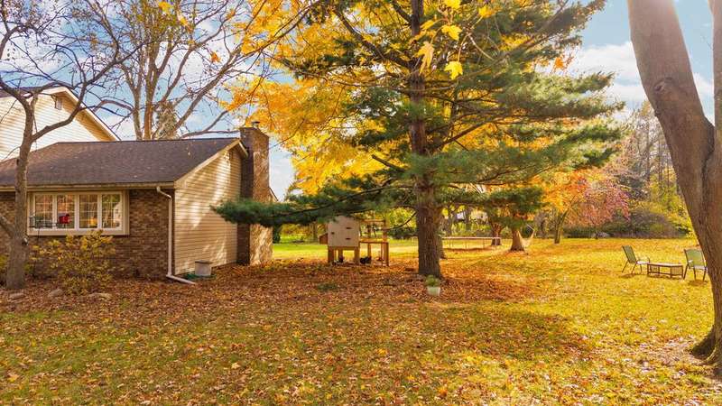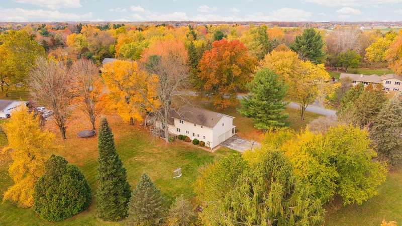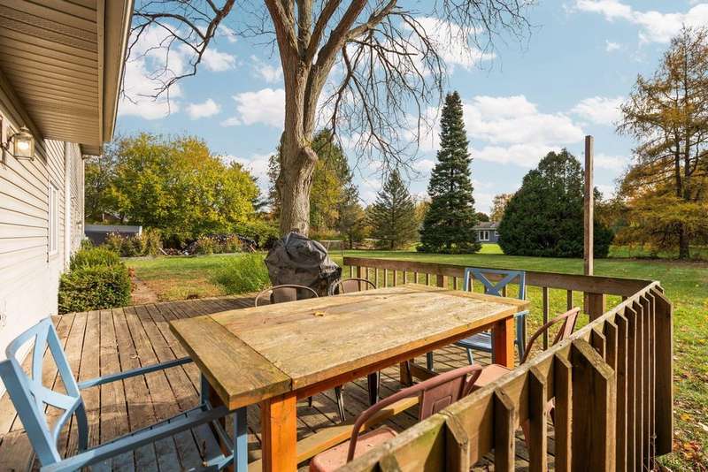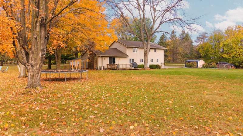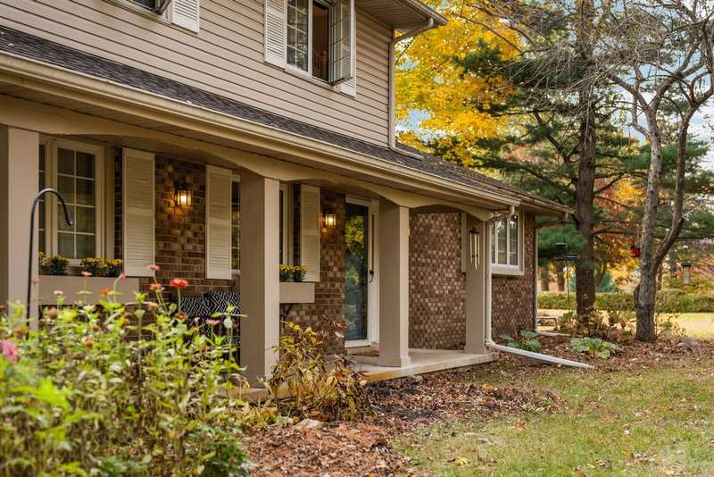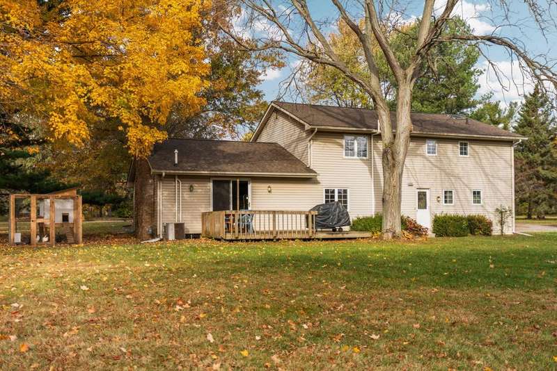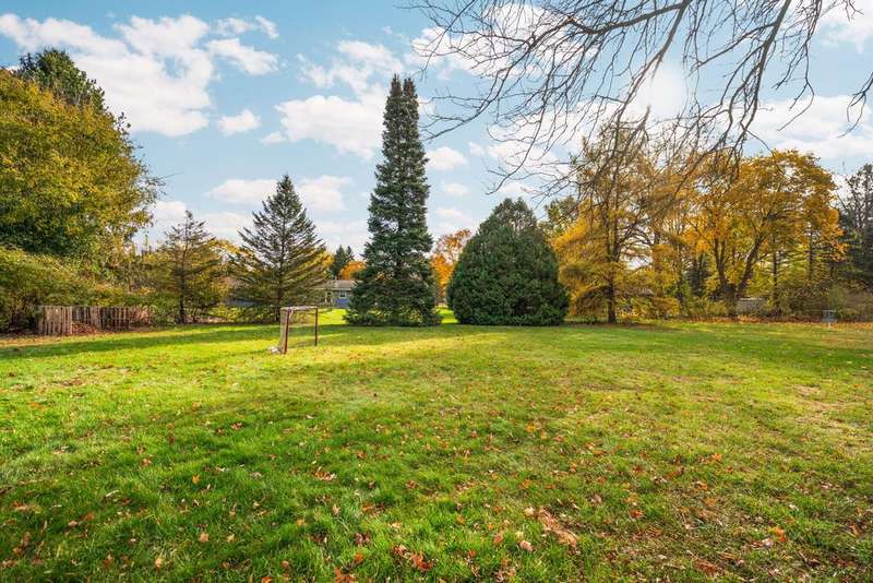 Welcome home to this spacious 4-bedroom brick home nestled on an acre in a popular, established neighborhood, minutes from the heart of Saline. Light-filled living spaces offer room for everyone, a fireplace for cozy evenings, and flex space for office or formal dining. Well-appointed eat-in kitchen and main level laundry add convenience, while outdoor spaces include a covered front porch and private backyard deck. Primary suite offers en suite full bath, two WICs, and windows on 3 sides. Three other spacious bedrooms, full hall bath, and generous storage complete the upper level. Quality is evident in the hardwood floors, brick fireplace with newer insert and liner, construction, and finishes. Seller offering credit to offset new carpet & counters. Oversize 2.5-car garage includes storage bay. Basement offers space for your ideas and finishing touches. Four bedrooms, 2.1 baths, 2,414 s.f., 1.0-acre lot with mature trees and landscaping, including perennials for season-long interest