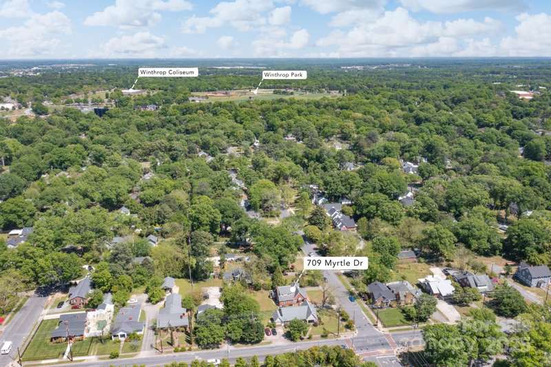 This is an amazing opportunity with so much potential in this brick home! The main floor features three bedrooms, one bath with tiled shower/tub combo, family room, dining room, and kitchen. Beautiful hardwood floors are throughout the majority of this space. Enjoy the "rocking chair" front porch with brick arches. An exterior private entrance takes you to a second floor with a completely furnished apartment including a bedroom, den, kitchen, and bathroom. There is an additional small bedroom that is not furnished. The apartment space is currently rented on a month-to-month basis. The crawlspace has been encapsulated and HVAC on main level was updated three years ago. Although this property is one parcel, there are two separate electrical meters and two different addresses (709 and 709 1/2 Myrtle Drive.) Come see the opportunities this home provides for you on the prestigious Myrtle Drive, within walking distance to Winthrop University and close proximity to downtown Rock Hill.
