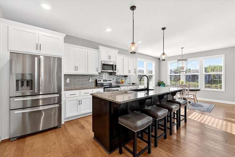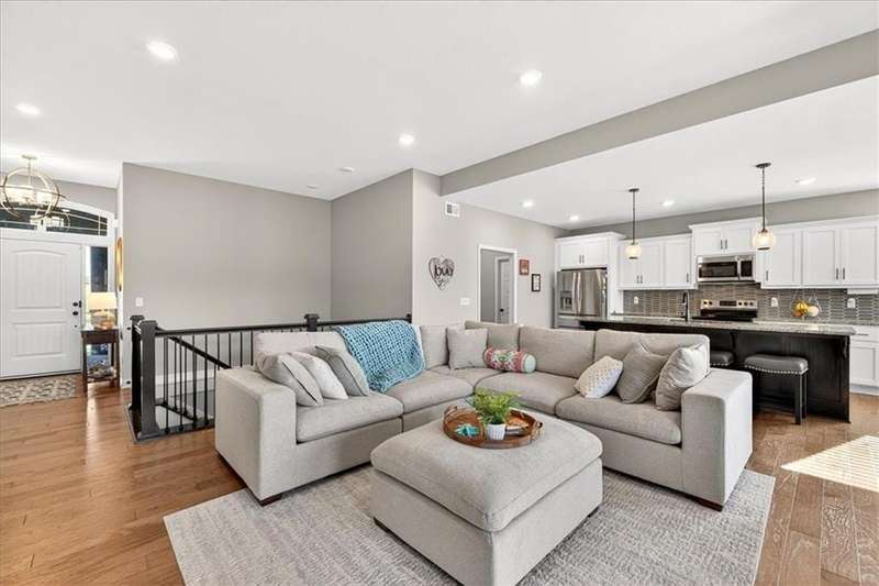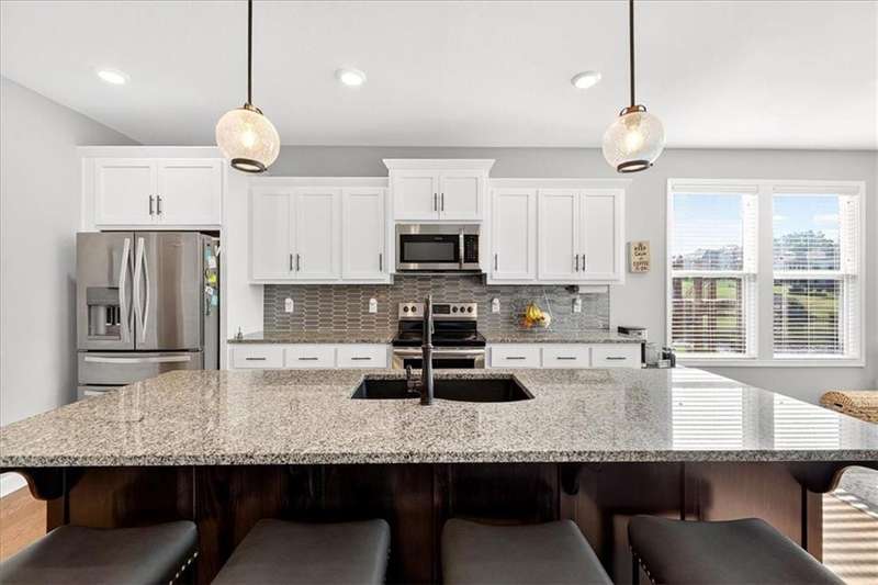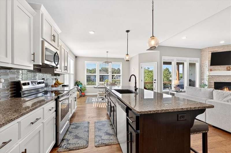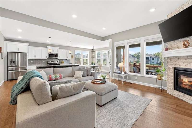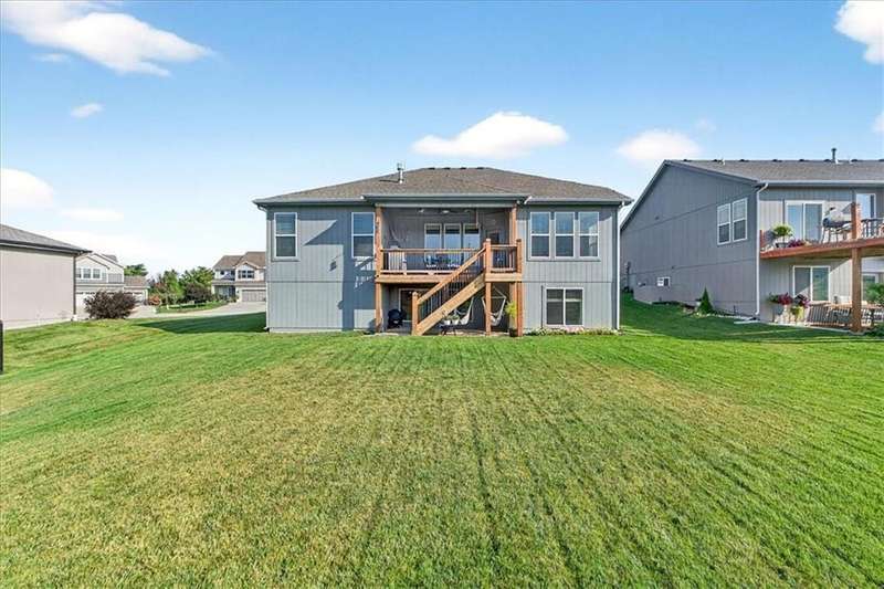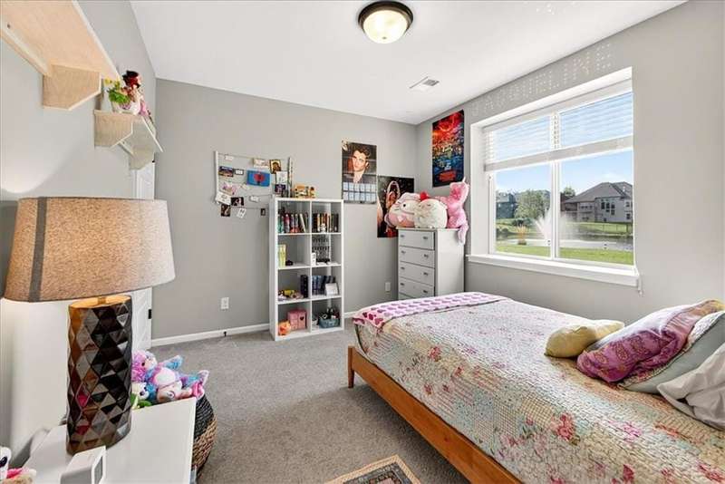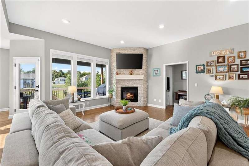 This better than new SPOTLESS 4 bed 3 bath reverse plan will WOW you! Backing to beautiful pond, you will enjoy fall evenings on the spacious covered deck! Views from every window!! Living area boasts an open floor plan w/ stone to ceiling fireplace, wood floors and vaulted ceilings! Kitchen has granite countertops, stainless appliances and tons of custom cabinetry and walk in pantry! Roomy primary on the main with walk in shower and big walk in closet! 2nd bedroom on main perfect for home office. Head downstairs to find large rec room and 2 additional roomy bedrooms and bath. HUGE storage or room to expand! Do not miss this one! Impeccably maintained and ready for its new owner! Photos coming soon!!!