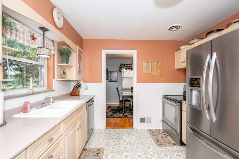 Charming Cape Cod on a quiet no-outlet street! Fall in love with this darling home nestled in a peaceful street. Enjoy the warmth of hardwood floors and a beautiful stone gas fireplace with custom built ins. The inviting floor plan features a cozy living area, nice kitchen with stainless-steel appliances, and a welcoming front porch perfect for relaxing. Step outside to a spacious deck overlooking the backyard. Add'tl highlights include a 1 car garage, glass block windows, and added bathroom in the basement. A perfect blend of comfort in a quiet conveniennt location!