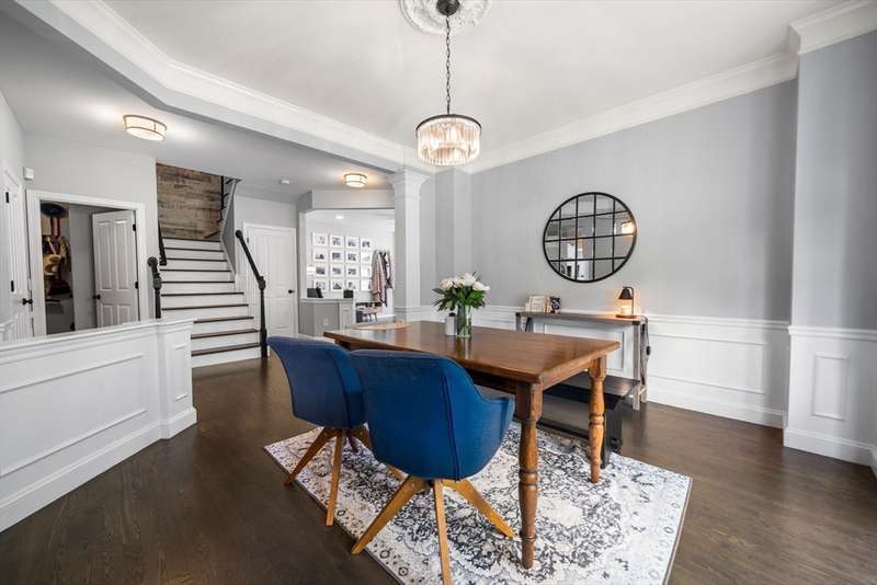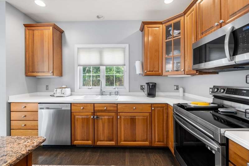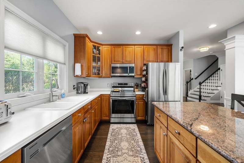 SEE DISCLOSURE FOR CLOSING COST CREDIT. Beautifully updated end unit townhome w/ 3 finished levels and lots of space to fit the family (almost 3,200 sq ft). Wonderful open floor plan (w/ high ceilings) features a dining room open to living room w/ gas fireplace and kitchen w/ center island and newer appliances. This unit also has a rear extension for an eat in kitchen. First floor laundry room/mudroom, 2 car garage, freshly painted interior (w/ lots of wainscoting) and newer HW floors throughout the 1st floor. There is a wood feature wall in the stairway for an upgraded look. Oversized primary suite has room for an exercise/sitting area or office and his and hers closets! There is a second bedroom and bath on the 2nd floor as well. The finished lower level offers 2-3 additional flex rooms- could be used as a a bedroom/media room/office, etc PLUS loads of storage! Other updates include: furnace, AC compressor, rear slider door (Pella), black hardware on doors/hinges.