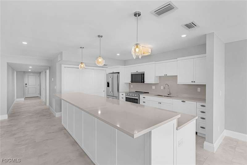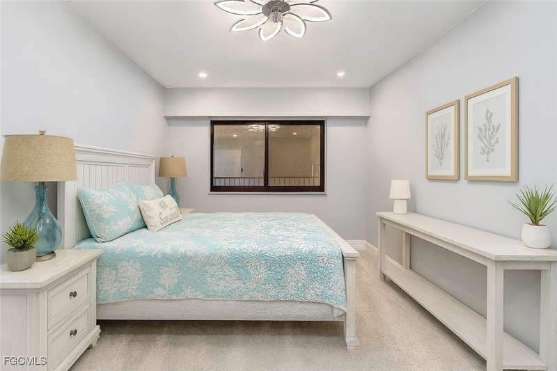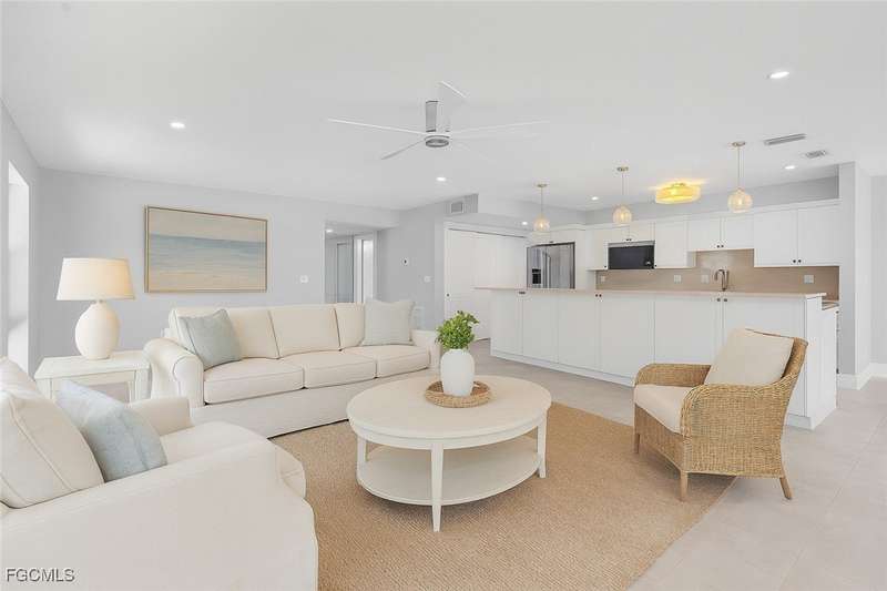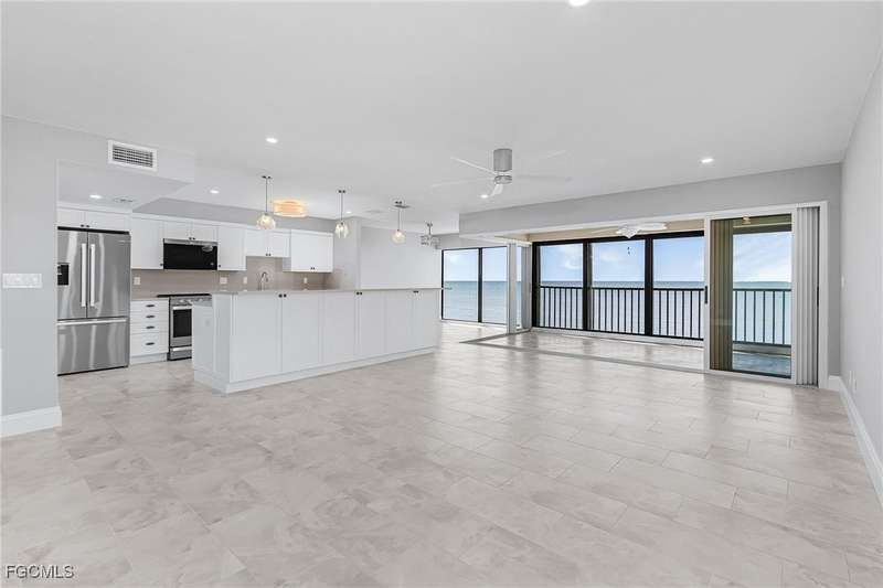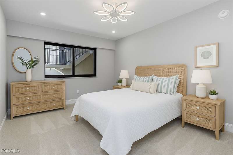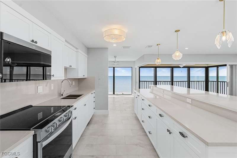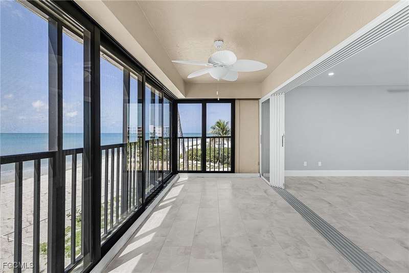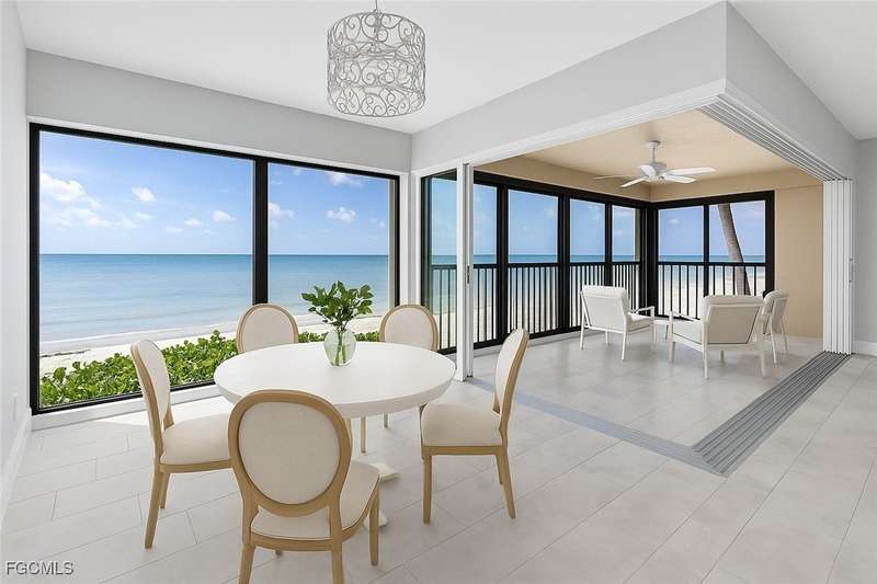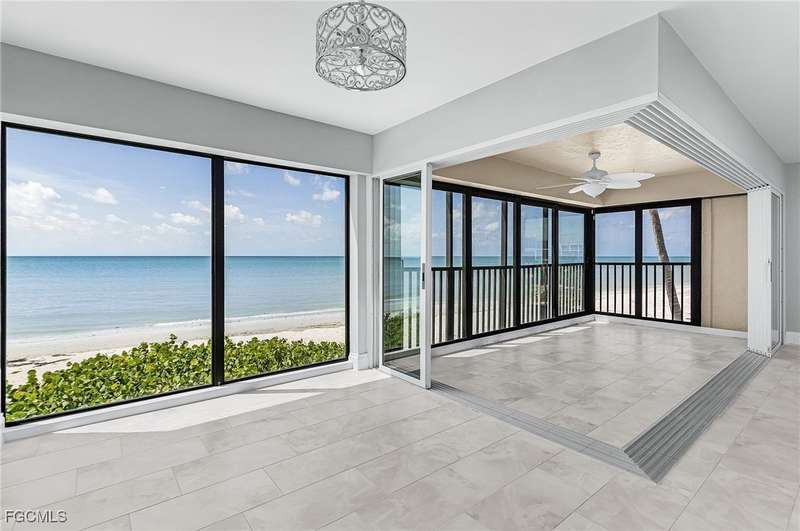 Experience the very best of Sanibel Island in this direct Gulf front, 2 bedroom, 2 bath west corner residence at Kings Crown, ideally located in the southernmost building with unobstructed, panoramic Gulf views. Rarely available, this condominium combines location, luxury, and lifestyle in one of Sanibel's most desirable beachfront communities. Completely remodeled by Seagate Development Group, the home reflects high end design and superior craftsmanship. The kitchen features Craftsman "Salem" maple cabinetry, Quartz "Soapstone Mist Polished" counters, and upgraded appliances. Flooring throughout is Tesoro "Madras Grigio Matte" 12x24 porcelain tile, delivering a seamless and sophisticated finish. The kitchen, dining, living room, and lanai all face the Gulf, offering a wide open design that maximizes natural light and water views. Expansive corner windows provide front row seats to spectacular sunsets, while the lanai offers the perfect setting to relax, entertain, or watch dolphins and the island's many bird species glide by. Both bedrooms are positioned privately away from the shoreline, creating peaceful retreats while the main living spaces remain fully focused on the beach and water. Kings Crown Condominiums enhances island living with a tranquil community of just 54 units. Amenities include an assigned large ground level storage unit, covered under building parking, a large heated pool, pickleball and tennis courts, and beautifully landscaped grounds. A dedicated on site maintenance manager, available Monday through Friday, ensures the property is impeccably maintained and provides exceptional service. From this building, you are just steps to the sand, with world class shelling right outside your door. Located on prestigious West Gulf Drive, Kings Crown offers a rare combination of exclusivity and convenience, delivering direct beachfront access in a serene, private setting. Whether enjoying your morning coffee, strolling the beach, or entertaining against the backdrop of a glowing sunset, this residence captures the essence of upscale coastal living. Ideal as a winter retreat or a premium investment property, Kings Crown 201 offers the perfect balance of location, amenities, and high end design. A true Gulf front gem on Sanibel Island.