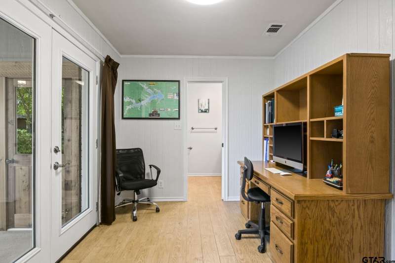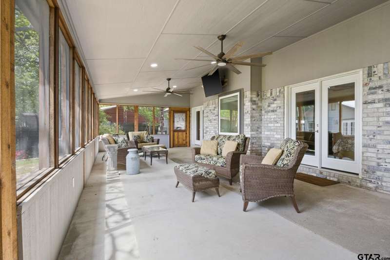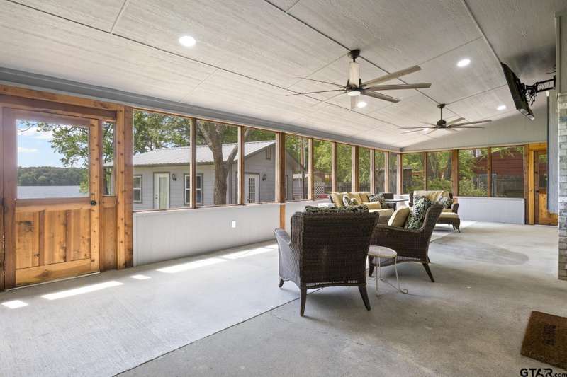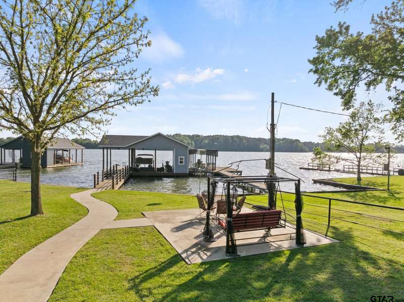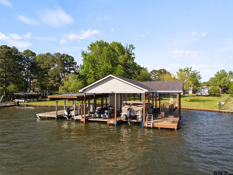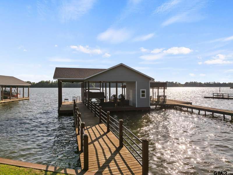 Nestled on the pristine shores of Lake Bob Sandlin, this luxury lake house epitomizes waterfront living at its best. Boasting a total of three expansive living areas, the residence is a sanctuary of comfort and style. The eat-in kitchen is a culinary dream with a breakfast bar and adjoining butler's pantry to keep your kitchen fresh and messes out of sight. The primary suite is a private oasis with direct access to the screened porch and a spa-like ensuite bath for pampering relaxation. A versatile bonus room linked to the primary suite offers a flexible space for either work or relaxation. Two well-appointed guest rooms share a hall bath, ensuring ample accommodation for visitors. The oversized screened porch presents sweeping views of the lake, making it an ideal setting for both social gatherings and peaceful moments of solitude. A newly constructed shop and exterior building provides space for pursuing various hobbies, while the brand-new boathouse offers convenient access to the water. The property's versatility is further enriched by its ability to accommodate an RV and potential for vacation rentals, promising endless possibilities for a luxurious lakeside retreat.