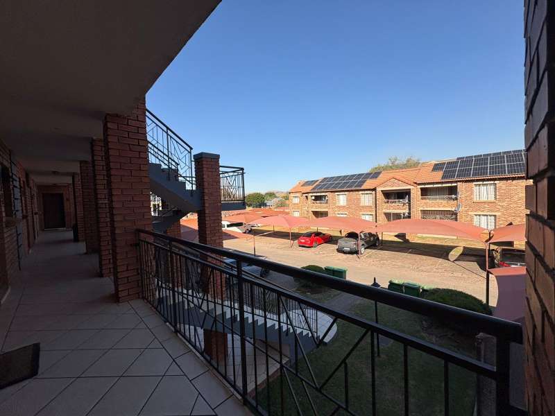 Welcome to your new home! This spacious 2nd-floor bachelor's apartment offers the perfect balance of comfort and style. Featuring an open-plan layout that seamlessly connects the bedroom, lounge, and kitchen., Key Features: Open-Plan Living: Enjoy a bright and airy space where the bedroom, lounge, and kitchen flow together. Fully Equipped Kitchen: Cook and entertain with ease in a contemporary kitchen. Bathroom: A sleek bathroom with a shower provides the perfect place to unwind after a busy day. Private Balcony: Step outside to your private balcony. Communal Garden & Playground: The well-maintained communal garden is perfect for leisurely walks, and the playground offers a safe and fun space for children. Sustainable Living: Equipped with solar panels, this apartment is environmentally friendly and energy-efficient, helping you reduce your carbon footprint while saving on energy bills. 2 Carports: Convenient parking with two dedicated carports for your vehicles. This apartment is ideal for those seeking a contemporary living space in a peaceful, community-focused environment. Make this home yours today!
