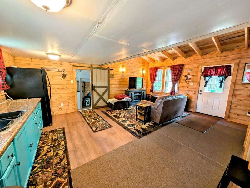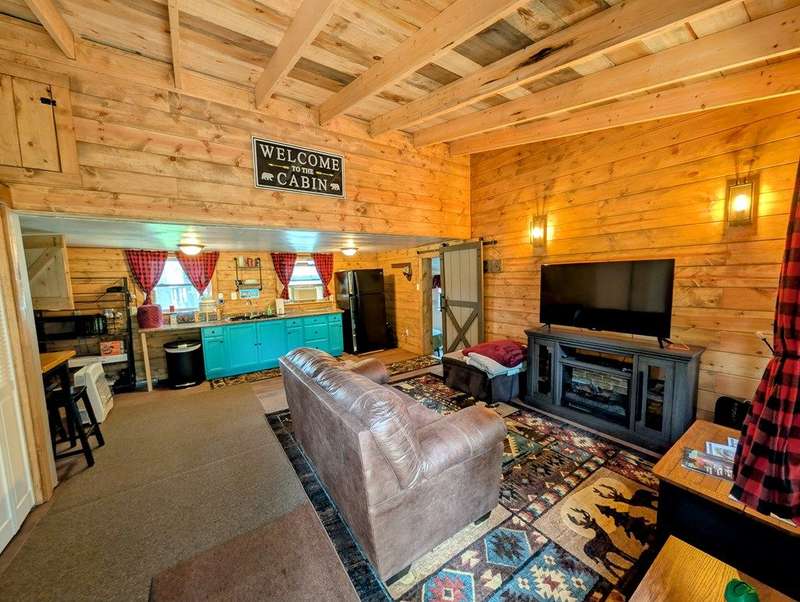 Charming dry cabin, nearly fully renovated in 2023-just the bedroom needs finishing! Featuring beautiful tongue-and-groove pine walls, brand-new roof, siding, and new windows, this cozy retreat offers rustic charm with modern upgrades. Inside, you'll find a convenient mini bathroom with a composting toilet, perfect for off-grid living. Outside, enjoy the unique his-and-hers outhouse, adding a touch of practicality and fun. Whether you're seeking a weekend getaway or a peaceful retreat, this cabin combines comfort and character near Blue Jay Creek. Don't miss this opportunity to own a nearly turnkey cabin with endless potential!