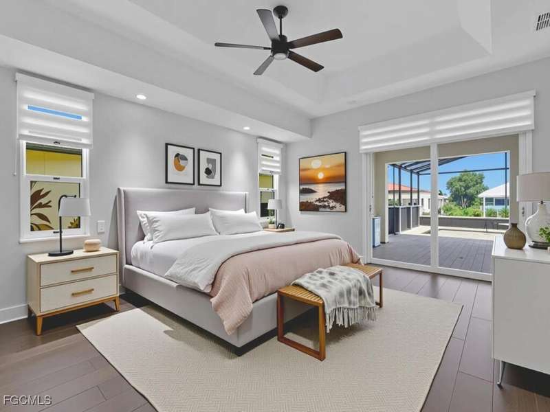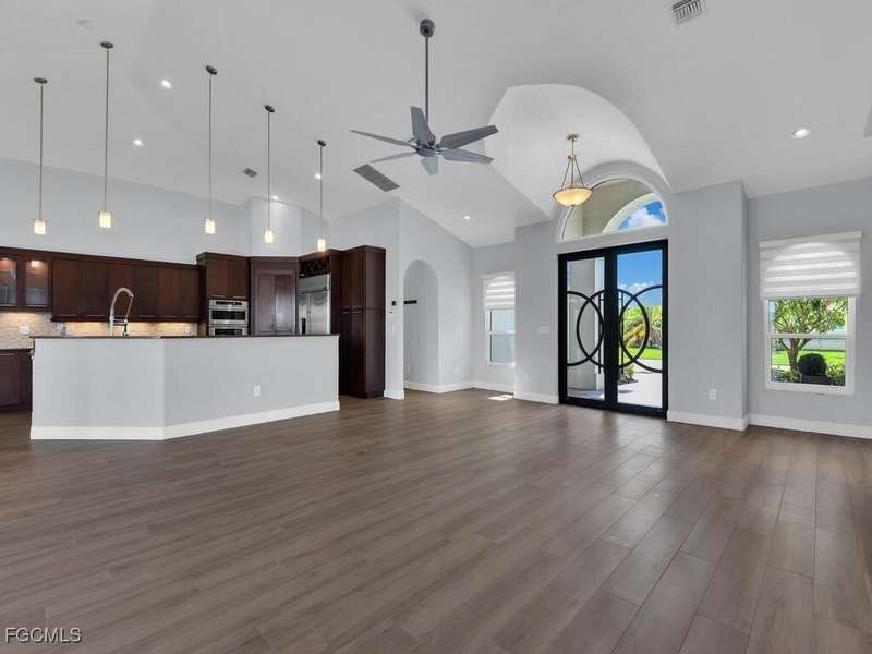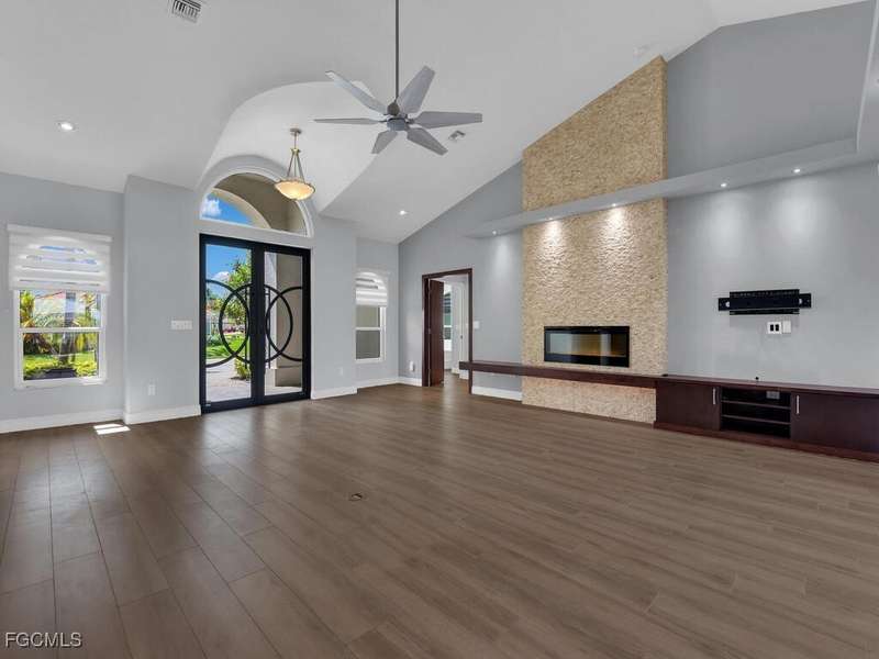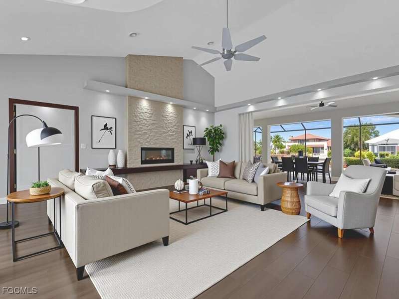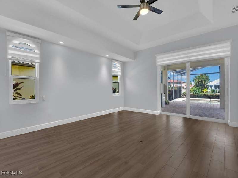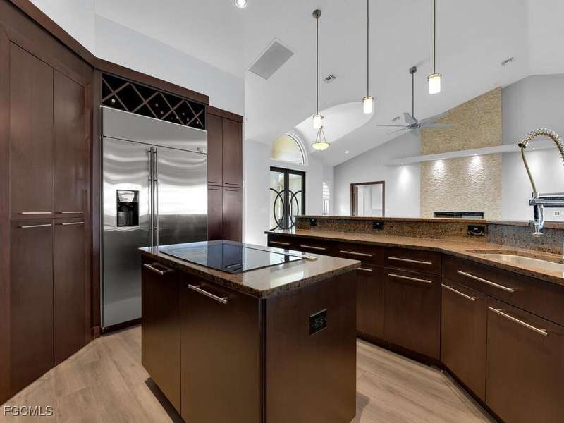 PRICE REDUCED $25,000.00!!!! When you say you Live in the "Rose Garden" everyone knows about this Special Neighborhood! Renowned for its Majestic Royal Palms, Manicured Lawns & Stunning Waterfront Views. Come Explore this Custom Built, Gulf Access Pool Home by Aubuchon Homes. Boasting over 3200+ Sq Ft of Living Space, with 5 Bedrooms & 4 Baths providing Plenty of Room for the Entire Family & Visiting Guest. The Open Design Concept Features Beautiful, Double Entry Glass Doors, Soaring Ceilings, Large Entertainment Wall w/Electric Fireplace, Plank Tile Floors, Impact Doors & Windows, Custom Window Treatments and so much more! Kitchen Updated with Sleek, Modern Cabinets, Walk-In Pantry, Island, Granite Counters, Upgraded SS GE Monagram Appliances, 48"Refrigerator, Wall Oven, Microwave & "Induction" Cook-Top. There's also a Large Breakfast Bar & Nook for Casual Family Dining. Primary Suite is located Downstairs along with 3 additional Guest Bedrooms, a Hall Bath & Conveniently located Pool Bath too! Upstairs a Generous Size Bonus Room overlooks the Waterfront from every window. The additional 5th Bedroom & Full Bath could Double as a 2nd Master Suite! Step outside & enjoy what Living in SWFL is all about. 90 Degree Pocketing Sliders open to Reveal an Expansive Covered Lanai & Outdoor Area complete w/Heated Pool surrounded by Brick Pavers. Electric Rolldown Shutters provide entire Protection for the Lanai. This Premier Waterfront Location offers Endless Views overlooking the Rose Garden Basin! The Large Composite Dock w/Captain's Walk & 10K Boat Lift also has a Kayak Launch for easy in & out. Boaters will love the Fantastic Gulf Access, only 15mins to River from your Boat Dock! Cruise to nearby Sanibel & Captiva Islands, Fish for the World Famous "Silver King" or watch Playful Dolphin & Manatee right from your back yard! You can also Bike or Walk to Rotary Park, enjoy Nature & Fitness Trails, Nearby Glover's Bight meanders through almost 1 mile of Native Mangroves. Tarpon Point Marina & Westin Resort are also just around the corner, Enjoy Dining & Shopping at Several Restaurants, Shops, & Art Galleries along the Promenade. Additional Upgrades include New Tile Roof 2022', New Impact Windows & Doors 2022', New AC's 2018' & 2023', New Hot Water Heater 2020', Circular Brick Paver Driveway. Transferable Flood Policy only $1470.00 per year!! Call today & schedule your Private Showing before it's gone. ***Please be aware some of these photos in this Listing Presentation have been Virtually Staged to assist you with visualizing the space.