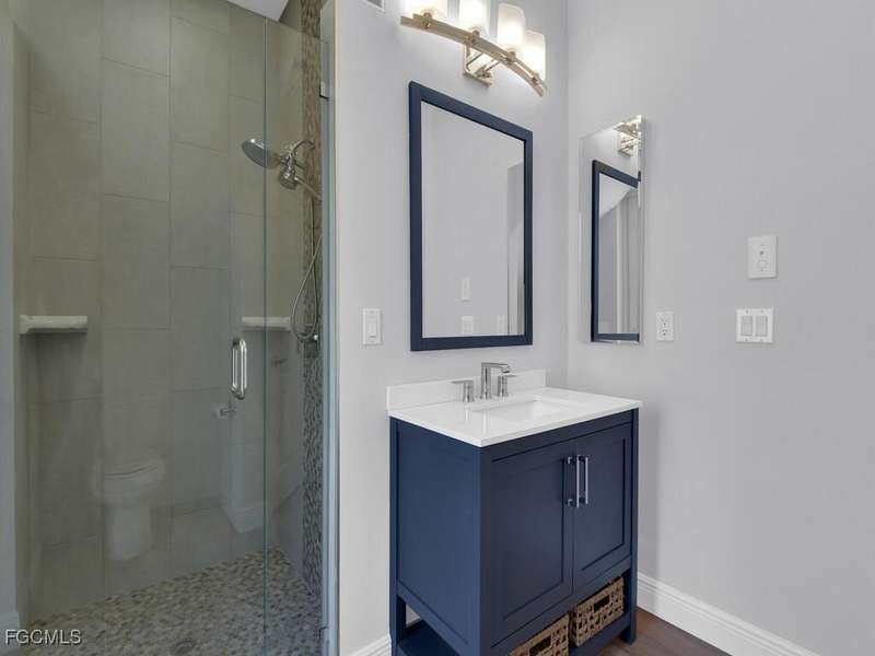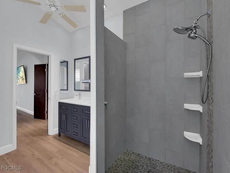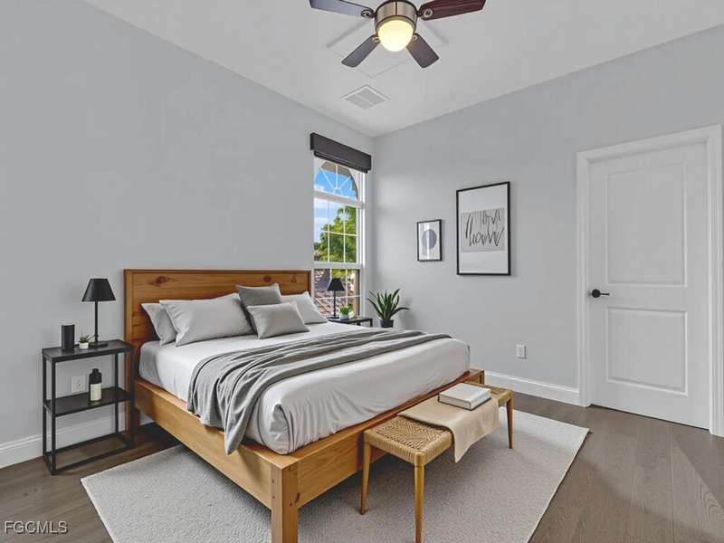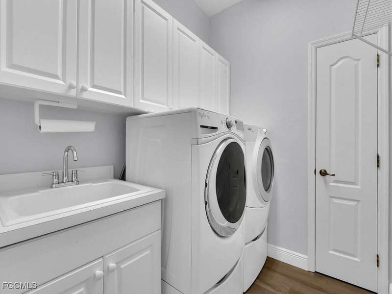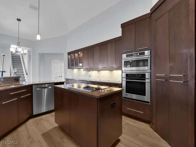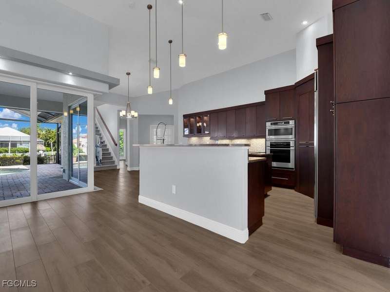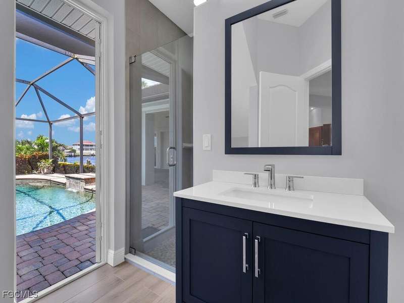 PRICE REDUCED $25,000.00!!!! When you say you Live in the "Rose Garden" everyone knows about this Special Neighborhood! Renowned for its Majestic Royal Palms, Manicured Lawns & Stunning Waterfront Views. Come Explore this Custom Built, Gulf Access Pool Home by Aubuchon Homes. Boasting over 3200+ Sq Ft of Living Space, with 5 Bedrooms & 4 Baths providing Plenty of Room for the Entire Family & Visiting Guest. The Open Design Concept Features Beautiful, Double Entry Glass Doors, Soaring Ceilings, Large Entertainment Wall w/Electric Fireplace, Plank Tile Floors, Impact Doors & Windows, Custom Window Treatments and so much more! Kitchen Updated with Sleek, Modern Cabinets, Walk-In Pantry, Island, Granite Counters, Upgraded SS GE Monagram Appliances, 48"Refrigerator, Wall Oven, Microwave & "Induction" Cook-Top. There's also a Large Breakfast Bar & Nook for Casual Family Dining. Primary Suite is located Downstairs along with 3 additional Guest Bedrooms, a Hall Bath & Conveniently located Pool Bath too! Upstairs a Generous Size Bonus Room overlooks the Waterfront from every window. The additional 5th Bedroom & Full Bath could Double as a 2nd Master Suite! Step outside & enjoy what Living in SWFL is all about. 90 Degree Pocketing Sliders open to Reveal an Expansive Covered Lanai & Outdoor Area complete w/Heated Pool surrounded by Brick Pavers. Electric Rolldown Shutters provide entire Protection for the Lanai. This Premier Waterfront Location offers Endless Views overlooking the Rose Garden Basin! The Large Composite Dock w/Captain's Walk & 10K Boat Lift also has a Kayak Launch for easy in & out. Boaters will love the Fantastic Gulf Access, only 15mins to River from your Boat Dock! Cruise to nearby Sanibel & Captiva Islands, Fish for the World Famous "Silver King" or watch Playful Dolphin & Manatee right from your back yard! You can also Bike or Walk to Rotary Park, enjoy Nature & Fitness Trails, Nearby Glover's Bight meanders through almost 1 mile of Native Mangroves. Tarpon Point Marina & Westin Resort are also just around the corner, Enjoy Dining & Shopping at Several Restaurants, Shops, & Art Galleries along the Promenade. Additional Upgrades include New Tile Roof 2022', New Impact Windows & Doors 2022', New AC's 2018' & 2023', New Hot Water Heater 2020', Circular Brick Paver Driveway. Transferable Flood Policy only $1470.00 per year!! Call today & schedule your Private Showing before it's gone. ***Please be aware some of these photos in this Listing Presentation have been Virtually Staged to assist you with visualizing the space.
