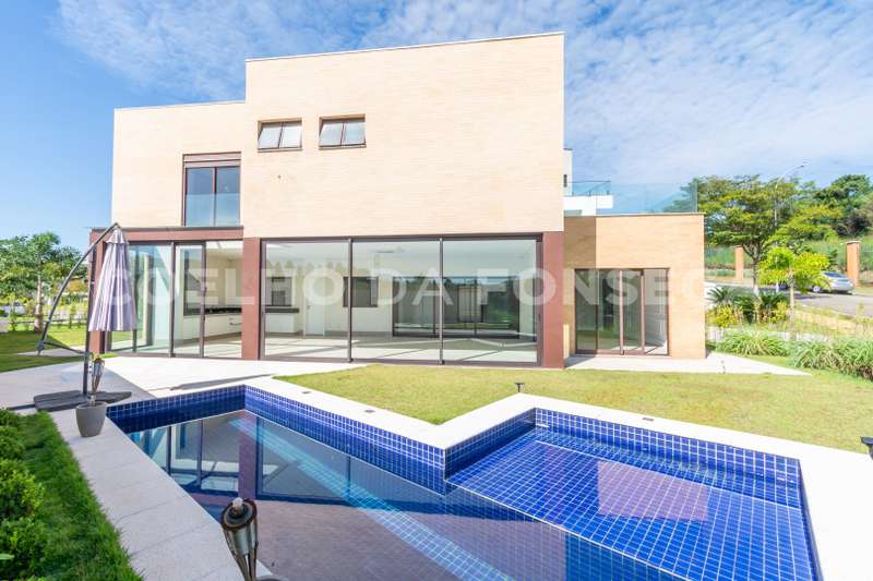 Casa no condomínio BURLE MARX, com 500m² área construída, 5 dormitório(s), 5 suíte(s), 4 vaga(s), 5 banheiro(s), piscina, escritório, depósito, ar condicionado, dep. de empregados, varanda, aquecedor solar, pé direito duplo.
