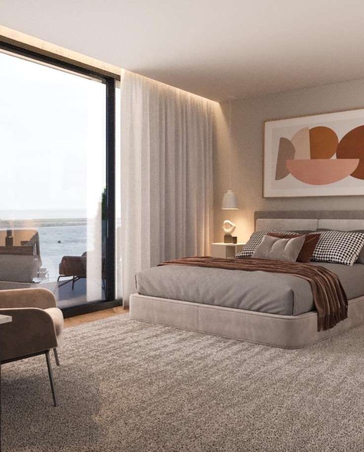 This Bow 136 development, situated in a privileged region of Foz do Douro and offering unobstructed views of the River Douro and Foz, comprises eight self-contained units featuring studio, one-bedroom, and two-bedroom floor plans, each measuring ample in size. The development's founding concepts are modernity, comfort and design and it is located in a prime area of the city of Porto, essentially residential and with several points of interest, including the streetcar network that has existed since 1895, with an extension of almost 9 km. Other nearby attractions include the Cantareira lighthouse, the blue flag beaches and the Passeio Alegre garden, from where you can watch a magnificent sunset. This apartment, with a front and river views, comprises a suite, living room with open-plan kitchen that opens onto a precious balcony and a huge lounge in the roof space with a further toilet. It is 18 kilometres to Francisco Sá Carneiro Airport and 4.9 kilometres to downtown Porto. CHARACTERISTICS:Area: 90 m2 | 973 sq ft Bedrooms: 1 Bathrooms: 2 Energy efficiency: A FEATURES: 12.20 m² balcony.