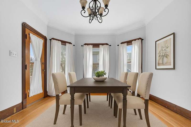 Step into timeless elegance with this beautifully maintained home that perfectly blends historic charm and modern updates. From the moment you enter, you'll be greeted by original woodwork, charming hardwood floors, and elegant pocket doors that showcase the craftsmanship of a bygone era. The high ceilings and abundance of windows fill the home with natural light, creating a warm and welcoming atmosphere throughout. The updated kitchen offers the best of both worlds ? thoughtfully modernized with stylish finishes, newer appliances, and ample workspace, yet designed to complement the home's classic character. First floor laundry room for added convenience. Outside, enjoy your private backyard with hot tub, perfect for relaxing evenings. The porch offers a place to unwind as well and the screened porch gives you additional entertaining space. A detached garage provides extra convenience and storage. This home is a true gem ? where timeless character meets modern living. Short distance to shopping, restaurants, parks and playgrounds.