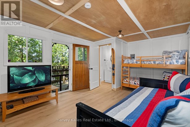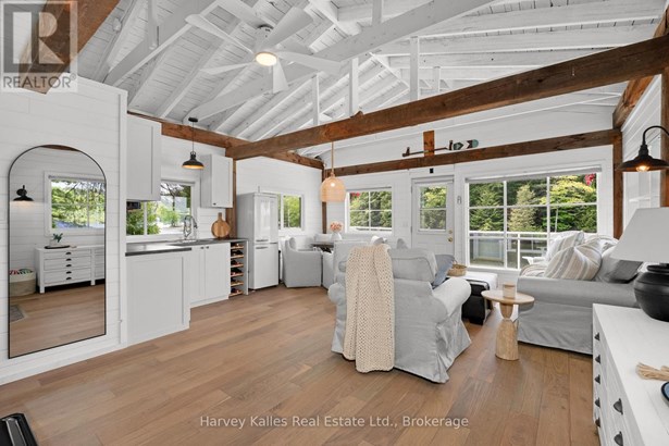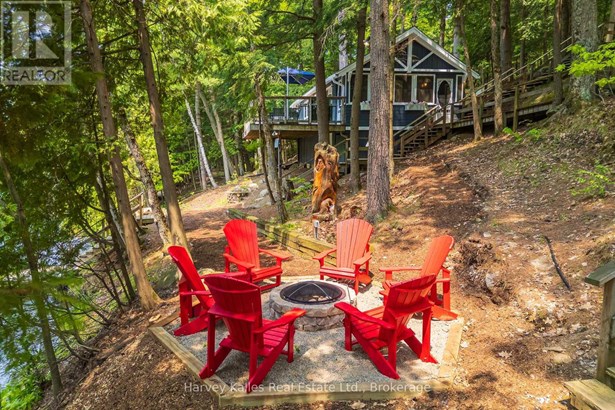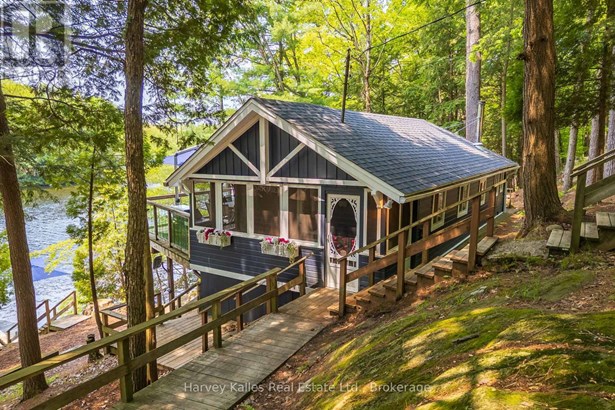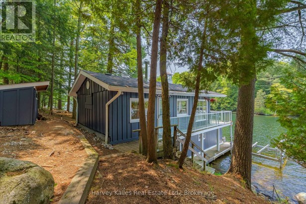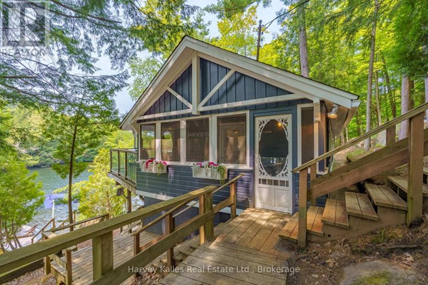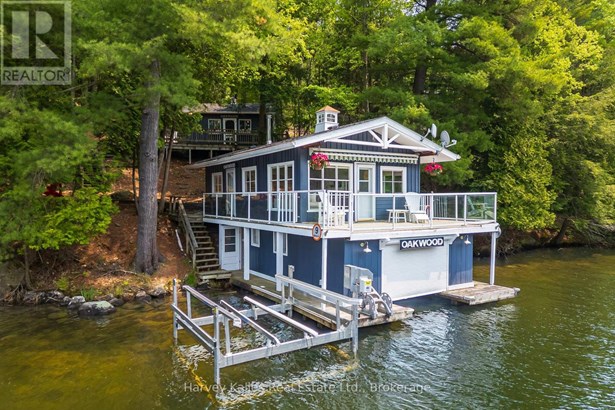 Updated cottage retreat situated at the mouth of Lake Muskoka and minutes from Port Carling! Enjoy long sun-filled days on this the south-west facing enchanting property, ideally located on the Lake Muskoka side of the Indian River with 185' of frontage (assessed), providing easy access to the sparkling waters of Lake Muskoka, Lake Rosseau and Lake Joseph. The main cottage features 2 bedrooms and a full bathroom, recently updated to provide a fresh, contemporary feel. Ready for immediate enjoyment the cottage has new flooring throughout, an upgraded kitchen, complemented by stylish Emtek hardware and new laundry area. Every detail has been meticulously attended to, including winterizing for use throughout the seasons. Just steps away, the charming bunkie offers extra sleeping quarters for 6 with a 2pc bath, perfect for guests, teens or family gatherings. The bunkie boasts new flooring and lighting and private deck space. The impressive 2-storey boathouse not only houses your watercraft but also features comfortable accommodations above, complete with 2 bedrooms, a 3pc bath, and a refreshed kitchen. The boathouse has been thoughtfully updated with new flooring, lighting, and hardware, and freshly painted interiors create a warm and welcoming atmosphere. All three buildings have been freshly painted on the exterior to match, boasting new roofs that enhance the overall appeal. This turn-key opportunity comes lavishly furnished with high-end decor, allowing you to enjoy your new oasis immediately. Picture yourself unwinding on the boathouse deck, or the large lakeside fire pit, taking in the lively surroundings of Port Carling while having direct access to boating adventures across 'The Big 3'. Whether you prefer a leisurely boat ride or a scenic drive, you are perfectly positioned to explore the area. Don't miss your chance to experience this exceptional property where updates and location come together to create the ultimate cottage that you can enjoy right away. (id:16999)