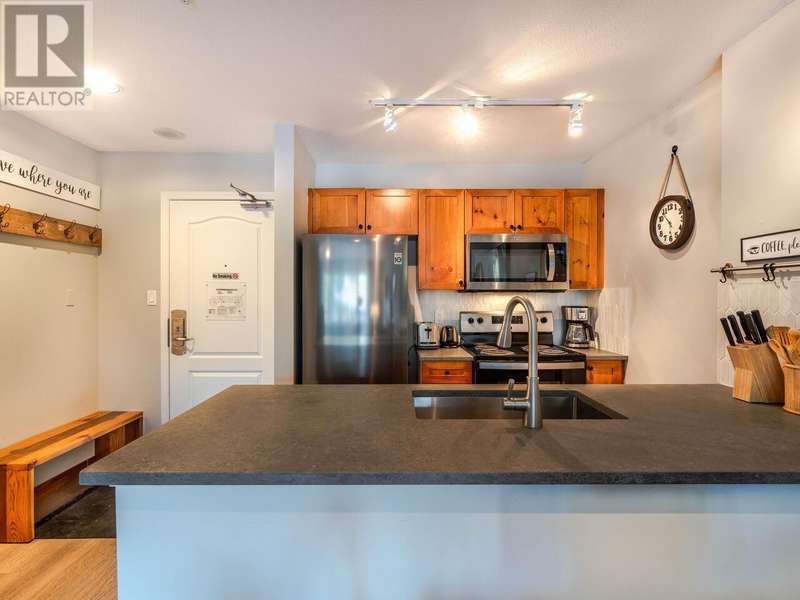 Welcome to Deer Lodge, one of Whistler's most sought-after PHASE 1 buildings for NIGHTLY RENTALS. This elegant & spacious 1 bed, 1 bath home facing the park & library with lots of natural light is SOLD FULLY FURNISHED w/stainless steel appliances, vinyl flooring, AC, gas fireplace & memory foam sofa bed. The strata fee covers ALL utilities, including a year-round front desk concierge service akin to that of a luxury hotel. Residents have the option to generate additional income through yearly parking revenue or secure their own parking stall. With unlimited rental opportunities & flexible owner usage, this property offers both an ideal residence & a lucrative investment opportunity. Experience the perfect blend of comfort and convenience at Deer Lodge. Newly renovated hot tub & fitness area complete soon!! Schedule your private viewing today! (id:58403)