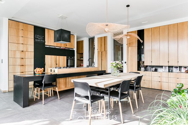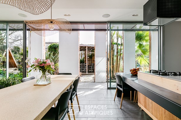 Nestled at the back of the plot, out of sight and a few steps from the popular Minimes district, this 182 sqm architect-designed house is the result of a bold restructuring of two buildings from the early 20th century. Designed in 2007 with an eco-responsible approach, it combines optimal comfort and energy efficiency. From the entrance, the natural light and volumes are striking. The 70 sqm living space is fascinating. It consists of a living-dining room and an open kitchen combining modernity and conviviality.