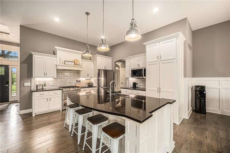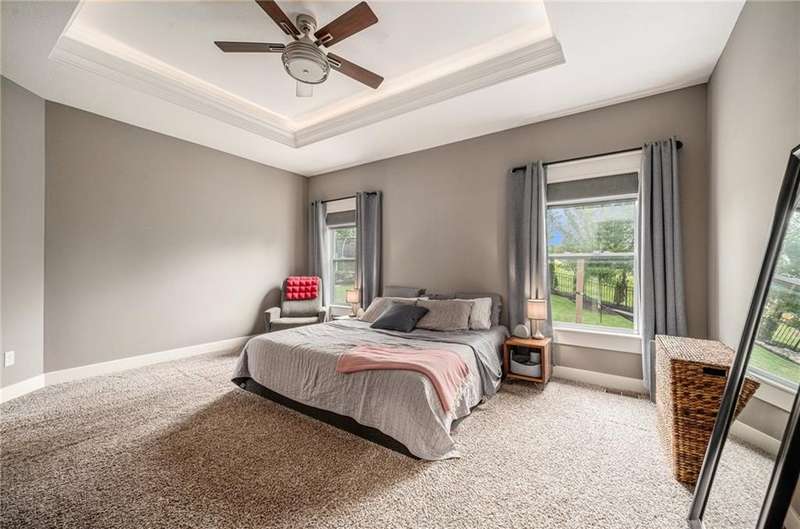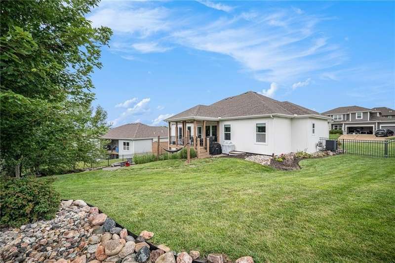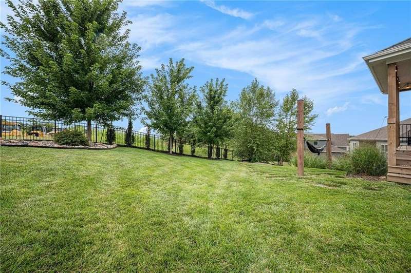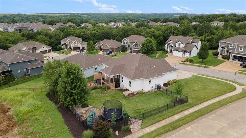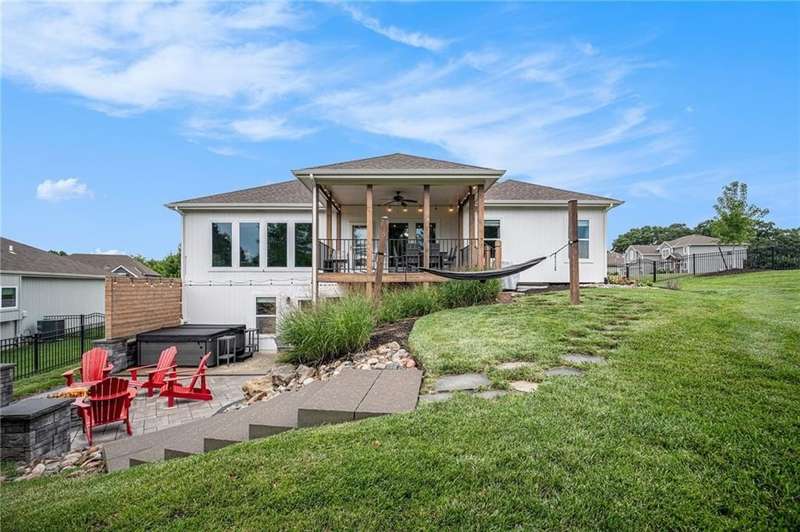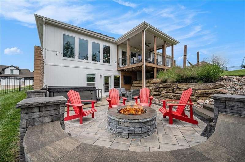 Time to go! Sellers found their new home! Welcome to a beautifully upgraded 5-bedroom home in the heart of Thousand Oaks, one of Parkville’s most desirable communities. From its flowing open floor plan to its resort-style outdoor living space, this home is built for comfort, connection & long-term value. Step inside to an airy, open concept main floor reverse with natural light pouring in from all directions. The layout is designed for modern living - perfect for entertaining or quiet nights in. The upgraded kitchen is both stylish & functional, featuring LG smart appliances, double ovens, a whisper-quiet dishwasher & custom pull-out shelving in nearly every cabinet for effortless organization. A standout feature is the fifth bedroom addition, professionally completed by the original builder to match seamlessly with the home’s design. It’s currently used as a home office, but the flexibility is yours. Fresh paint throughout (May 2024), a new water heater (April 2025), & a whole-home surge protector round out the list of smart, behind-the-scenes upgrades that ensure peace of mind. Outdoor Living That’s a True Extension of the Home The backyard is a private retreat — thoughtfully landscaped over three phases with mature trees (including brilliant Blazing Autumn Maples) & full aluminum fencing for both beauty and security. The 2021 patio addition includes a gas firepit, a hot tub (included), & a mounted outdoor TV setup that transforms this space into your second living room. Every detail has been thoughtfully maintained, from a semi-annual HVAC & plumbing service plan with KB Complete, to quarterly pest control & professional duct cleaning for clean, healthy air. Even the fireplace has been serviced & upgraded. This home runs as smoothly as it lives. Beyond the home, Thousand Oaks offers miles of scenic trails, two community pools, stocked ponds & a true neighborhood spirit. Enjoy rise in values with estate lots being built on to the south of your property!