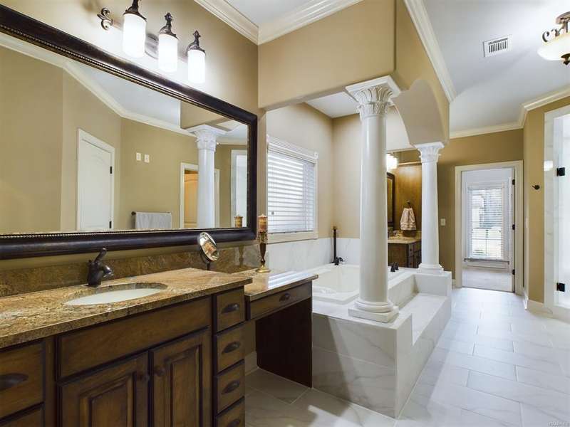 NEW ROOF INSTALLED 7 NOV 2025! Prestigious location in Rockbridge Pod, this home will not disappoint!! Refinished Wood flooring shows like new ~ Lots of custom touches: 10' ceilings pop up to 12' in Foyer and Family room; 14' in the Dining to give a truly expansive feeling! Custom crown molding details at ceiling and around windows...Entertain in style with open concept Kitchen, Family room and Dining ~ Kitchen has huge island and can handle multiple chefs! Gas cook top, pull out trash can and 3 pantry spaces; plus a large Breakfast room with back yard view. A nice bar ledge looks over the Family room featuring a beautiful gas fireplace flanked by wooden book shelves. Large office with cabinet shelving and closet is located by the Foyer, and could make a nice formal living if preferred. Owners' suit has access to back porch; and the Bath has been completely renovated ~ decorative columns, separated vanities, large shower AND 2 walk in closets. The 2 guest rooms are on other side of the home and share a "Jack n Jill" bathroom. Side entry by the stairway has adjacent powder room for guests and is convenient when working out-doors. Wide stairway leads to a large Bonus and/or bedroom with a private bath. Laundry has plenty of storage cabinets, plus a space for a 2nd refrigerator. Plenty of storage in the Garage as well: 5x12 storage inside garage plus a utility closet near the entry into home; and the approx 5x13 storage accessed from driveway for lawn mower and yard tools. HVAC units are 4 years old, 5 years old and upstairs unit is original, but not used as often; serviced regularly by Luquire. Water heater #1 was replaced with a Tankless gas in 2024; WH #2 is electric.