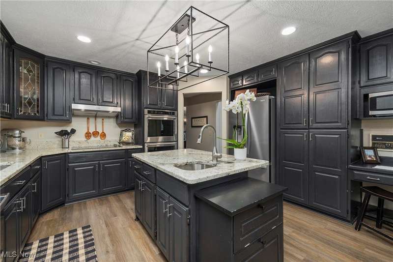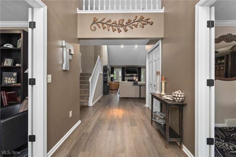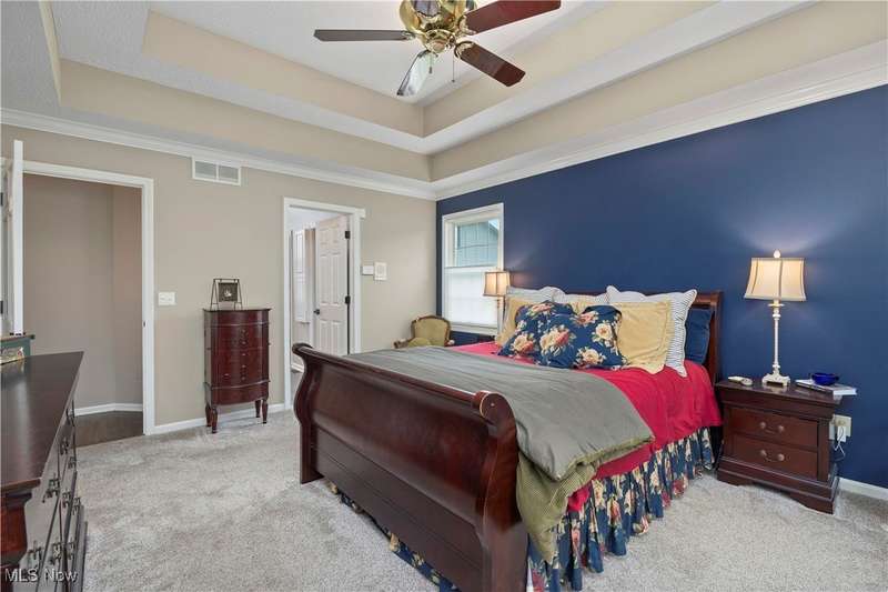 One of a kind custom built home nestled on an exclusive no outlet development consisting of just two culdesacs! A well planned intrerior with extra details throughout! FIRST FLOOR OWNER'S SUITE AND AN ADDITIONAL GUEST/IN-LAW SUITE (on the opposite end of the home from the owners suite)! Perfect for multigenerational housing needs! At arrival, you are greeted with a two story full brick front exterior! Step into a recently refreshed and stylish interior with most all flooring and paint updates since 2021. Two story foyer entry. Spacious home office with full bay window. Formal dining room also has a full bay window. Stunning great room complete with a soaring vaulted ceiling, gas fireplace and double french doors. FIRST FLOOR owners suite with tray ceiling, crown molding. Private full bath with custom ceilings and vanity details, walk in shower and a soaking tub. Dual walk in closets. Cozy lounge with a bar area and custom beamed ceiling. Beautifully apointed kitchen with a charming dining space! The dining area has built in banquette in the bay window space. Kitchen offers granite tops, island with prep sink, stainless steel appliances, double oven and cooktop! First floor laundry space. FANTASTIC additional suite on the main level has it's own ADA compliant full bathroom with shower. There's also a walk in closet. Countertop bar sink could be expanded as a kitchenette if you need a mini kitchen space. Remodeled half bath with added wainscoting detail. Upstairs you'll find three spacious bedrooms, one complete with private full bathroom and the other offers a Jack n Jill bathroom setup! Full basement with BUILT IN PUTTING GREEN and wall mounted TVs remain. Basement offers great storage and is plumbed for a bathroom. Newer rear deck (2023) and fence (2024), *fence does not extend the entire property. Nice sized homesite, over half an acre! Furnace replaced 2022. This home is stunning and cannot be duplicated for the price!