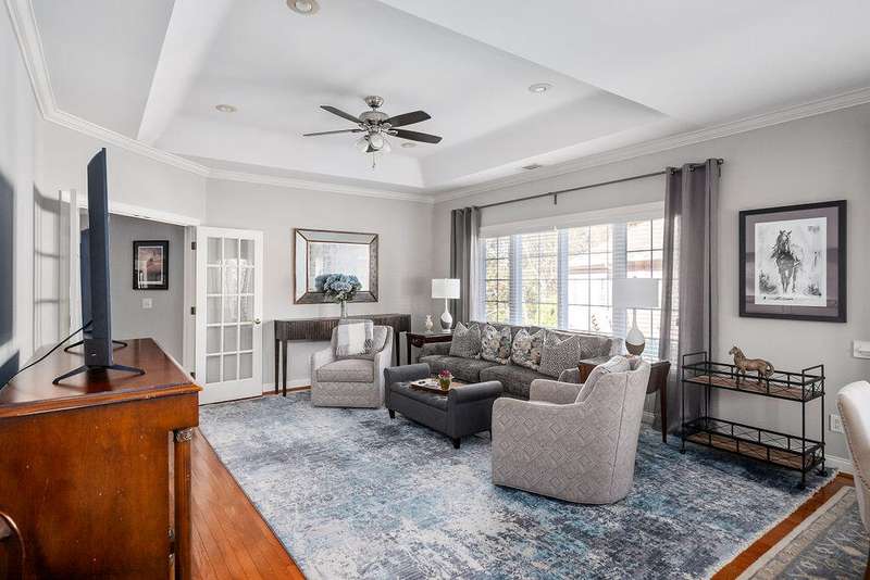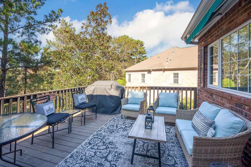 Welcome to 109 Poplar Hill Court, a beautifully maintained single-family home nestled in the desirable gated community of Woodside Plantation in Aiken, S.C. Built in 2002, this elegant residence offers 3 bedrooms, 2.5 bathrooms & approximately 2,743 square feet of thoughtfully designed living space. Step through the front door into a bright, welcoming foyer featuring an arched transom window that fills the space with natural light and sets the tone for the home's warm and refined character. At the heart of the home is a custom chef's kitchen—measuring 17' x 14.9'—designed for both beauty and functionality. It boasts granite countertops, stainless steel appliances including a four-burner gas stove, a convection oven-microwave combo, a second microwave and a pantry. Rich hardwood-stained cabinetry, a skylight, pendant lighting over bar-top seating and a spacious center island complete this inviting space. The kitchen opens seamlessly into a keeping/family room with soaring 12-foot ceilings, hardwood floors, built-in bookcases and a cozy gas fireplace. From here, step out onto a 13.5' x 13' composite deck with a retractable awning and enjoy peaceful views of the surrounding greenspace. The primary suite features a tray ceiling, built-in TV and two closets—including a large walk-in with luxury vinyl plank flooring. The ensuite bathroom is well-appointed with dual vanities (one with a built-in makeup counter), a jetted soaking tub, a separate shower, cultured marble countertops and ample storage including a medicine cabinet. A dedicated home office, located just off the main living area, features glazed French doors for privacy and abundant natural light—perfect for working from home. The formal living and dining rooms are open and elegant, with tray ceilings, half columns, neutral tones, and detailed crown molding that enhance the home's upscale feel. The lower level offers two spacious guest bedrooms, each with generous closet space, a shared full bath and direct access to the outdoor area through a private exterior door. Additional features include a well-equipped laundry room with a utility sink, ample cabinetry, and a coat closet; an oversized two-car garage with pull-down attic access and extra storage; lightning rods; a gas water heater; and neutral paint throughout for easy move-in. Located in one of Aiken's most sought-after communities; Woodside Plantation offers an optional membership to the club and the exceptional amenities including a country club, golf courses, lakes, pool, tennis courts and more.